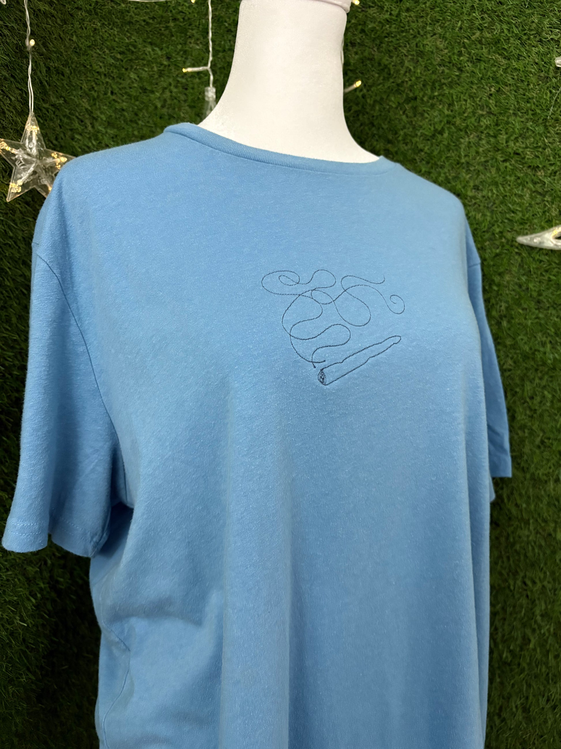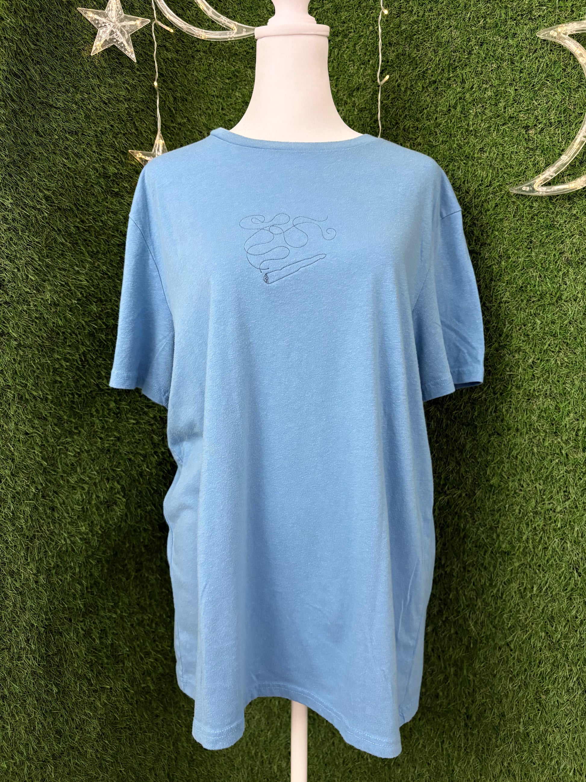 This sustainably made blue tee brings slow fashion to your wardrobe with a playful twist. Soft, comfy, and kind to the planet—perfect for those who love style with a conscience<3