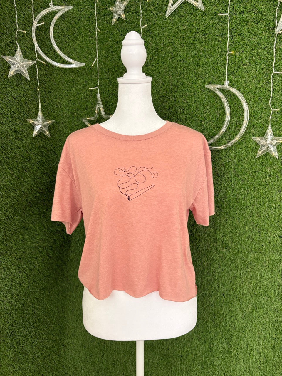 Made with care for the planet, this pink cropped tee brings playful vibes while supporting slow fashion. Soft, sustainable, and perfect for laid-back days!