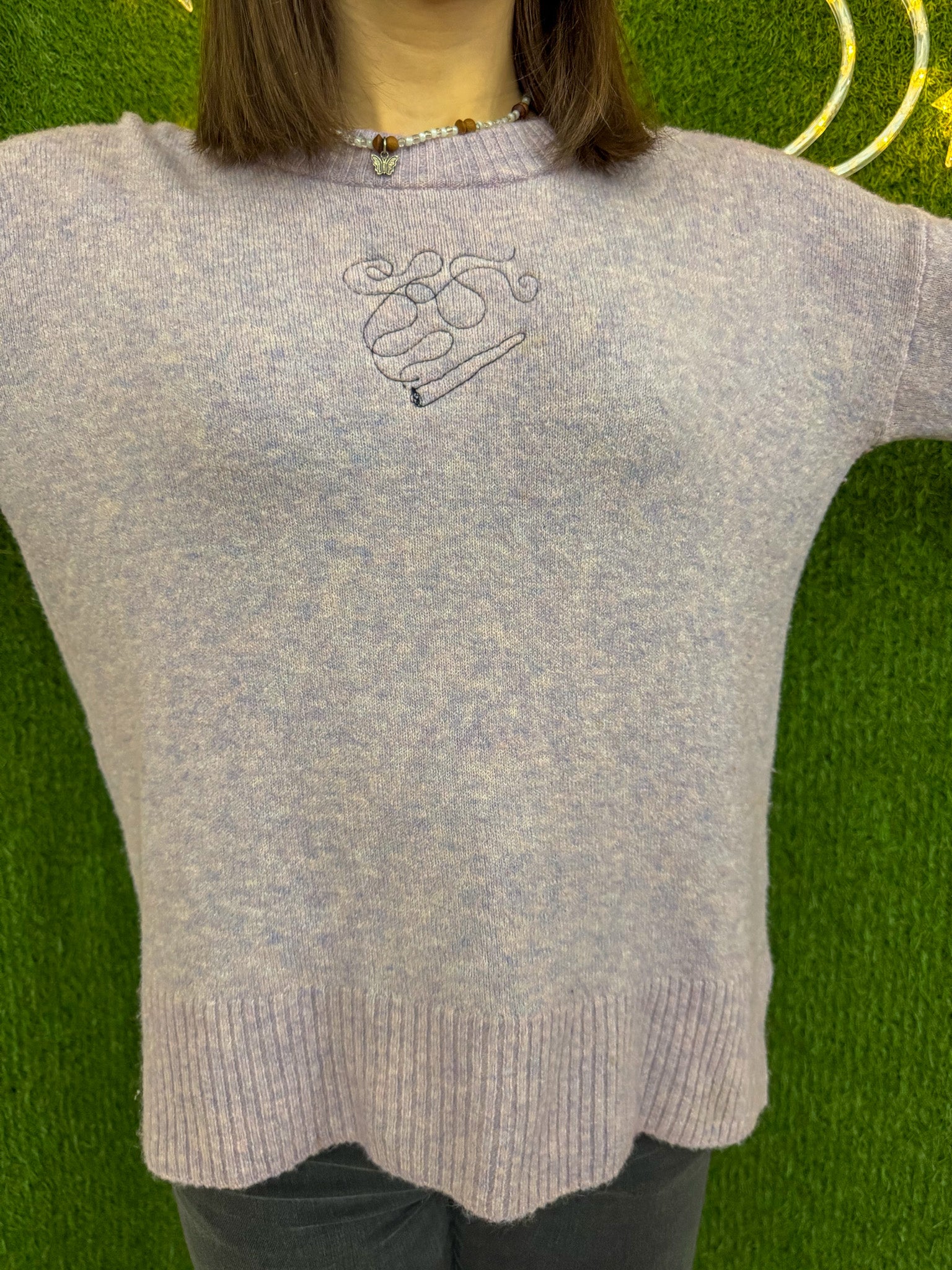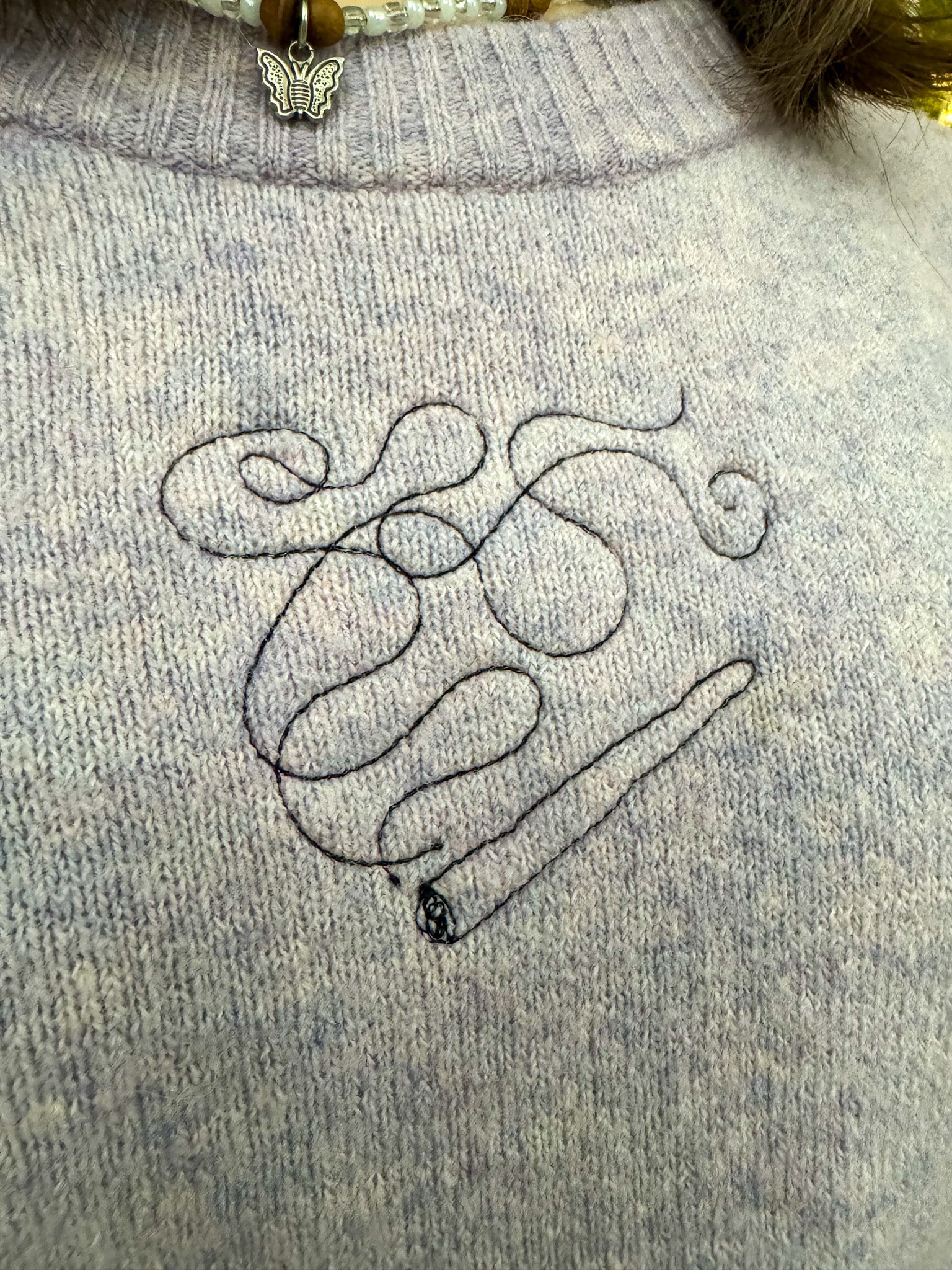 Add some quirk to your wardrobe with our embroidered Joint Sweater. This sustainable, upcycled sweater is made from discarded secondhand garments, supporting our small biz and slow fashion<3