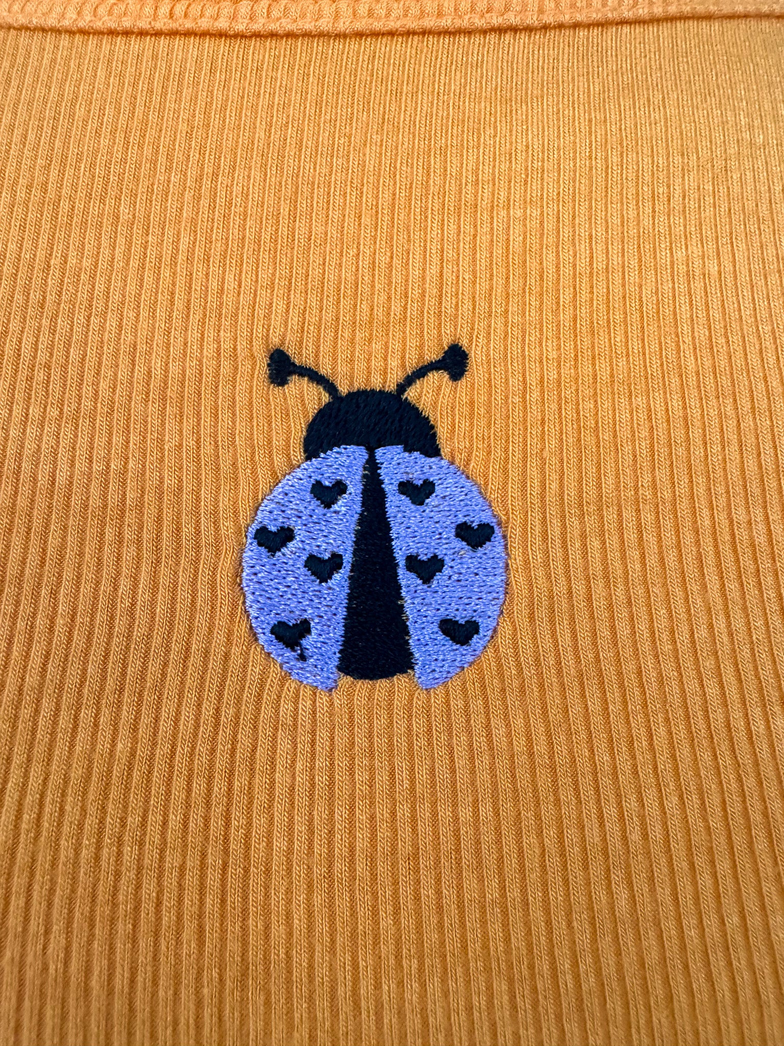 Show off your eco-friendly style with our Ladybug Orange Halter Cropped Tank. This unique top is not only embroidered, but also upcycled from a secondhand garment. By supporting our small biz and choosing sustainable slow fashion, you'll look great and feel great about your impact on the planet!!