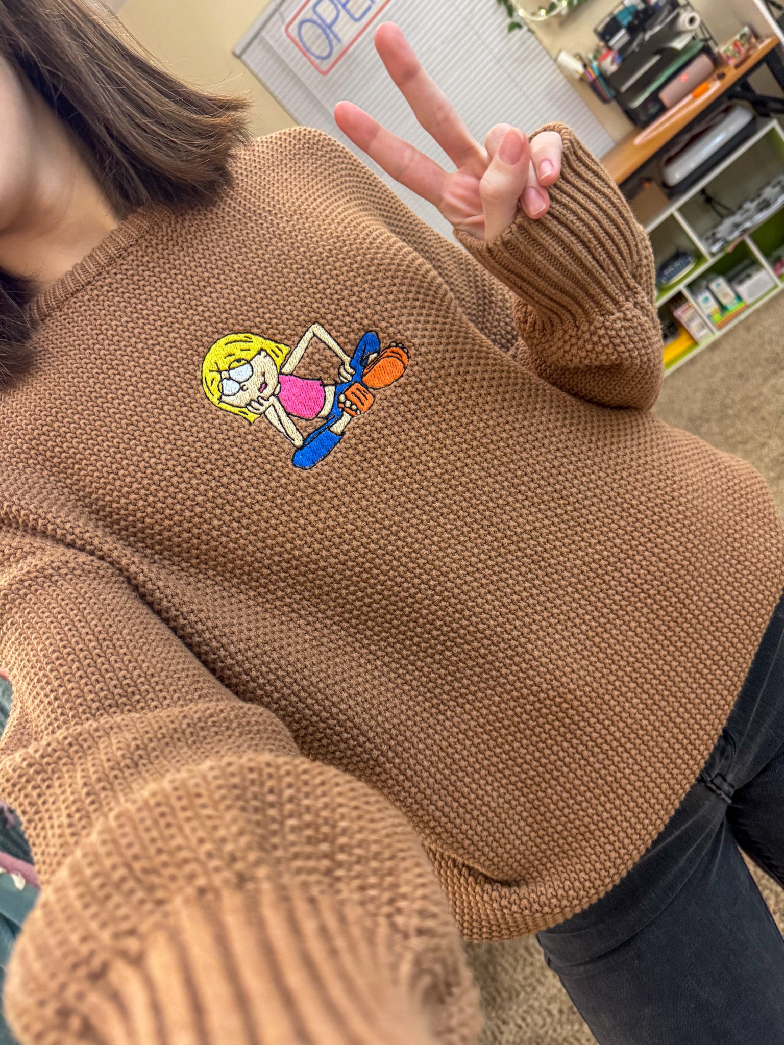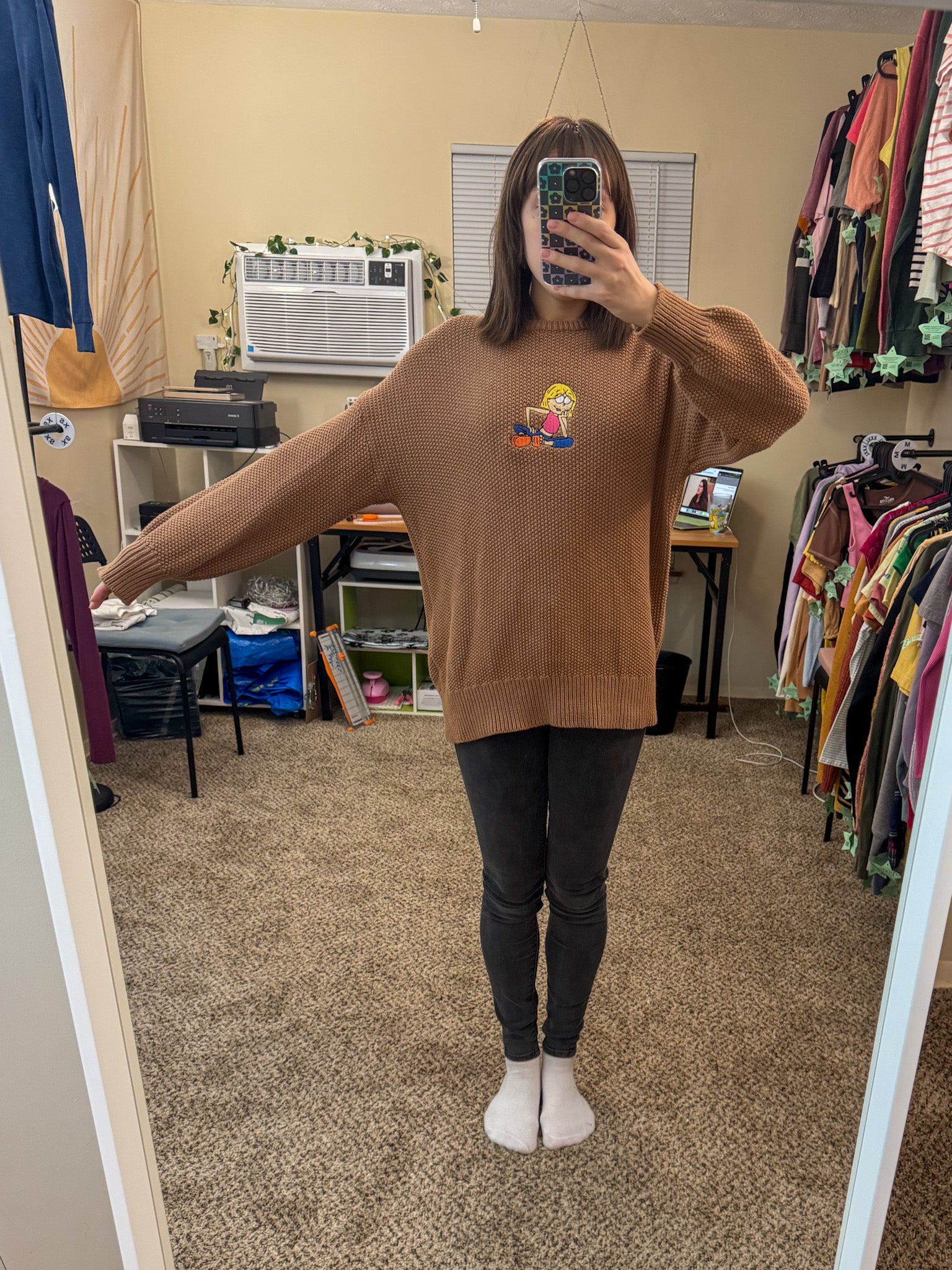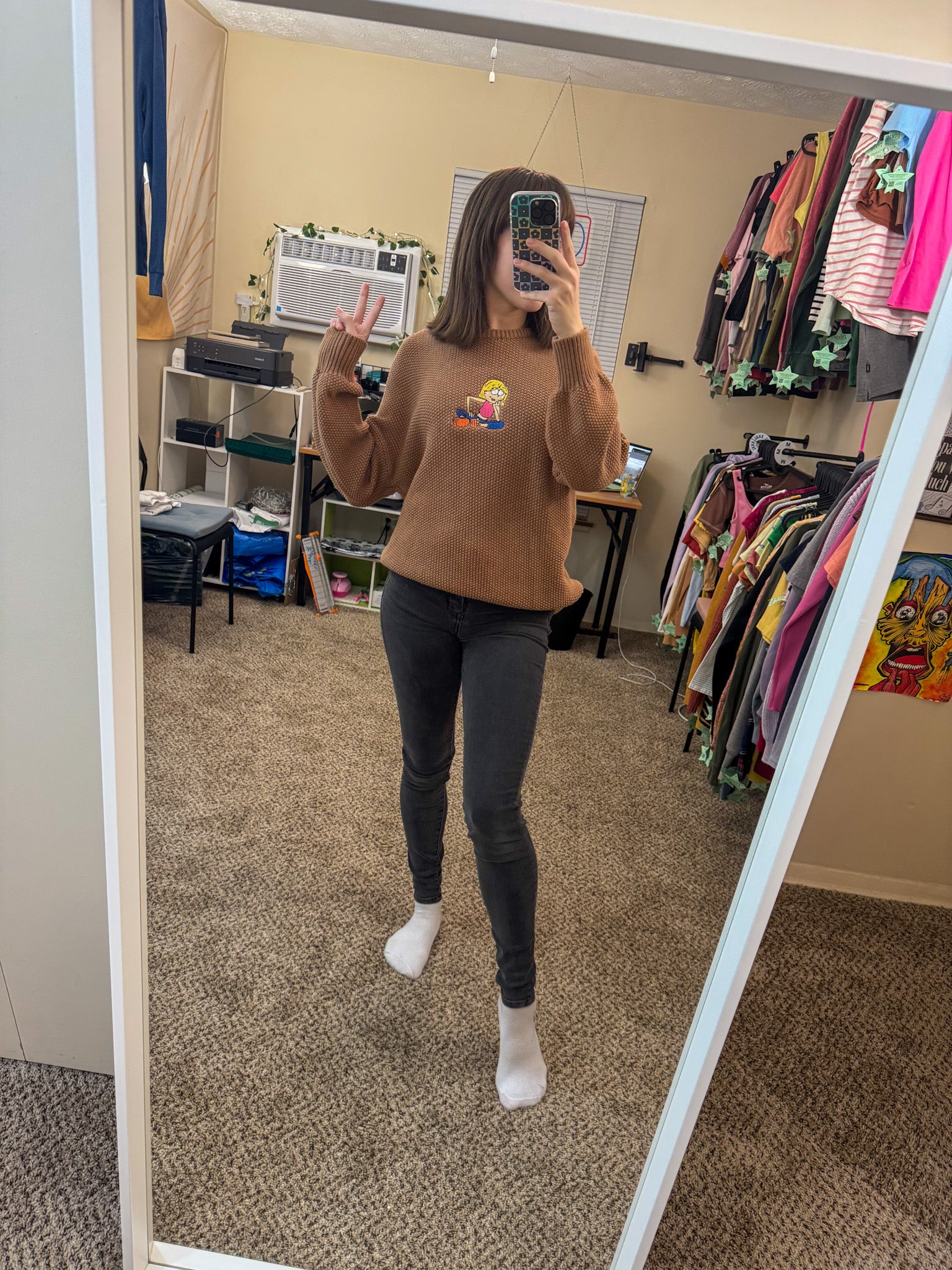Rock this unique sweater, lovingly embroidered by our small biz. Help the planet while looking stylish - this upcycled secondhand garment is sustainable and supports slow fashion!