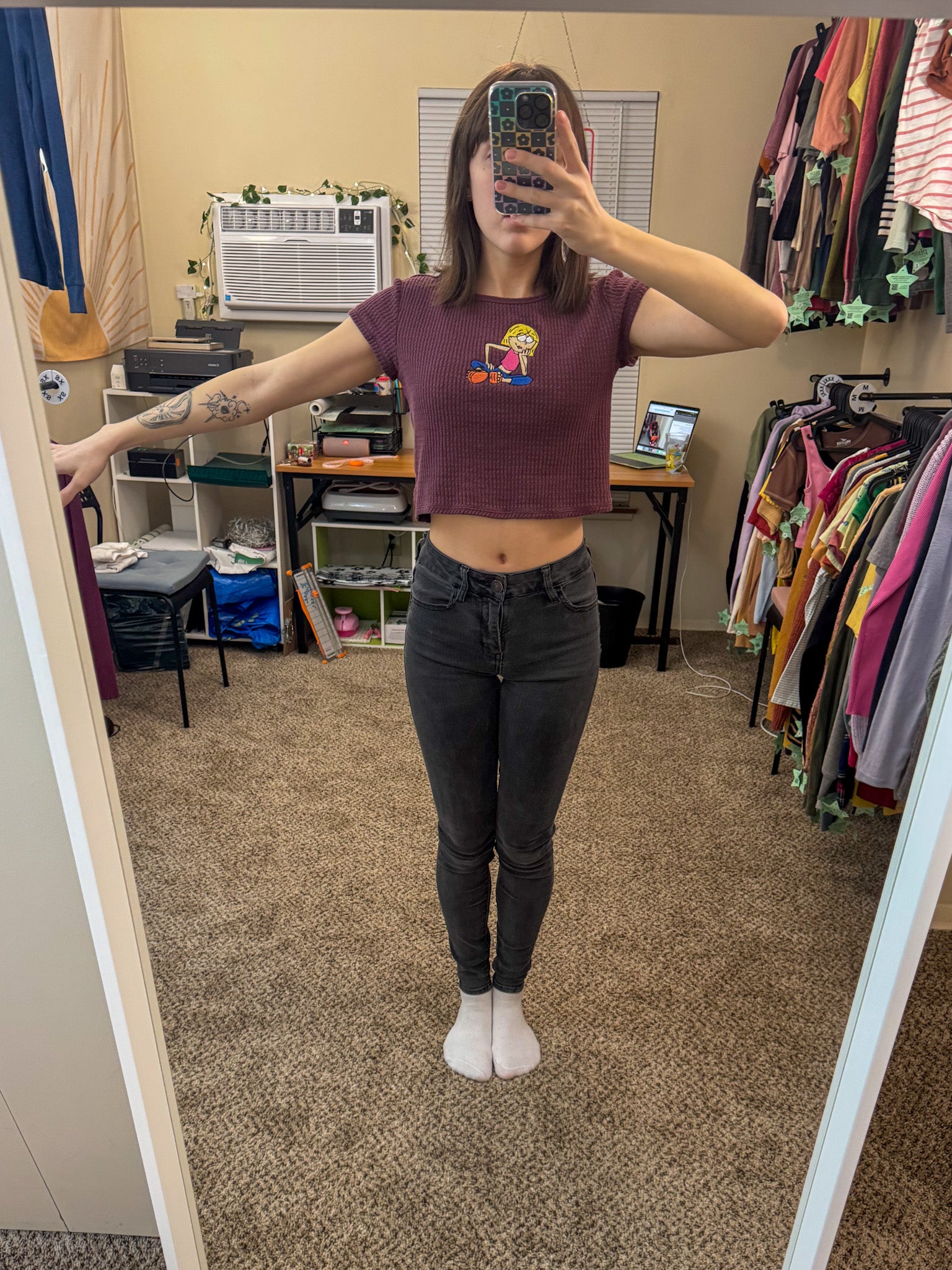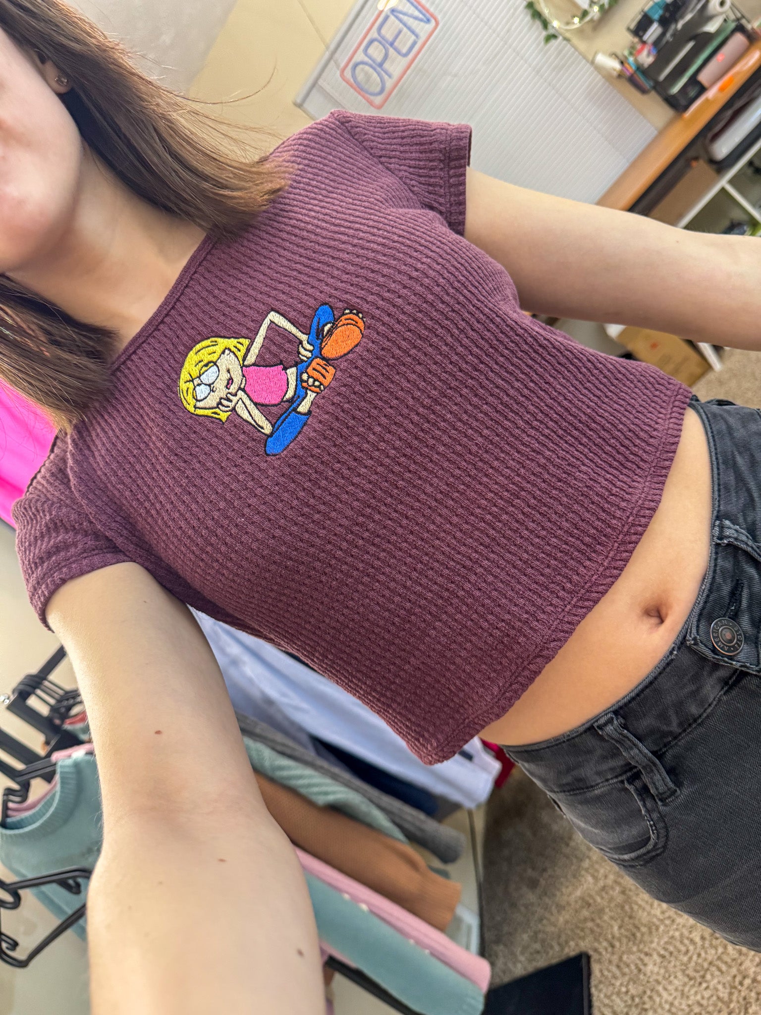 Join the slow fashion movement with our Lizzie McGuire Purple Baby Tee! Embroidered by us, this upcycled secondhand garment supports our small biz and the planet. Sustainable never looked so stylish!