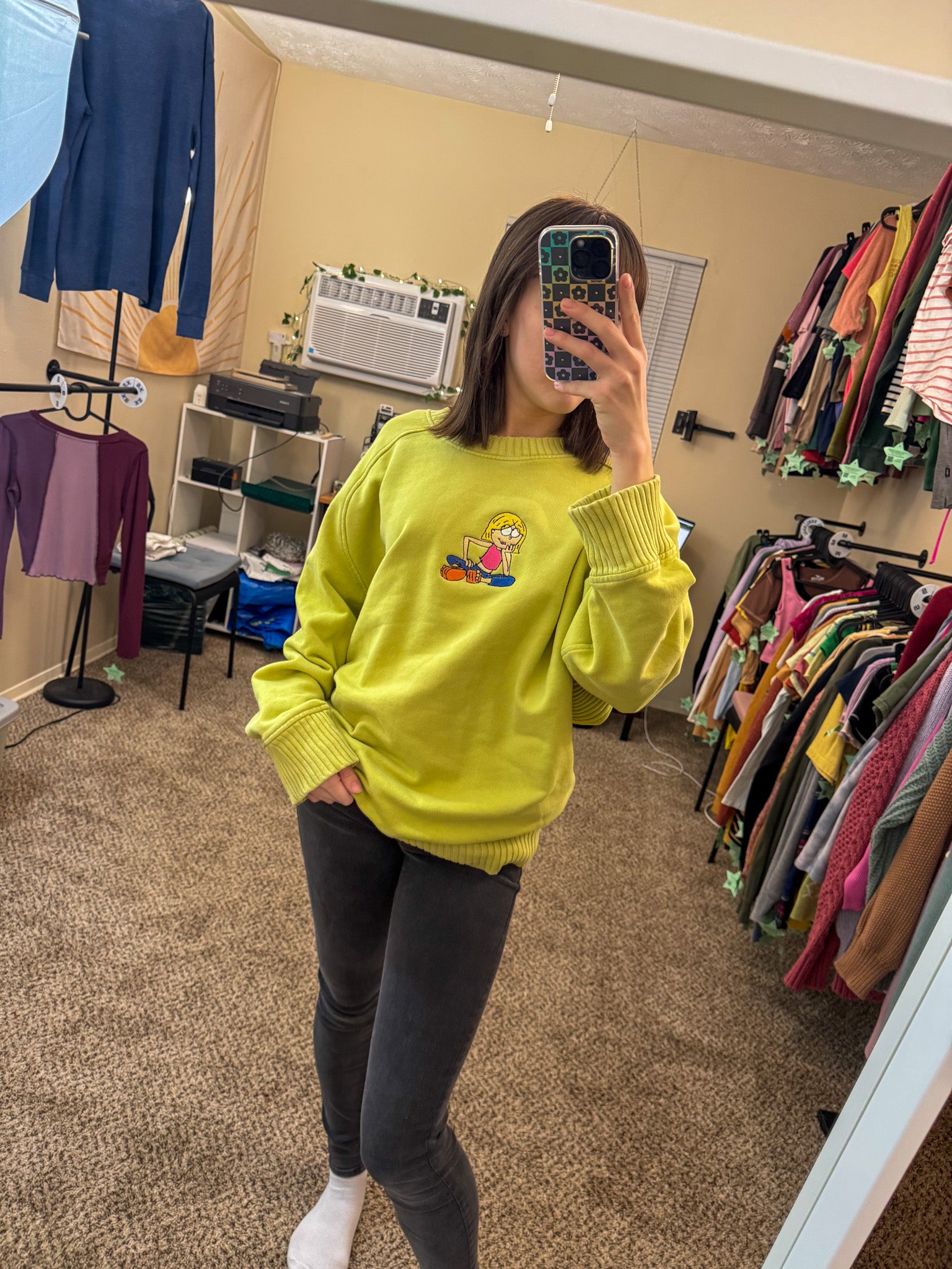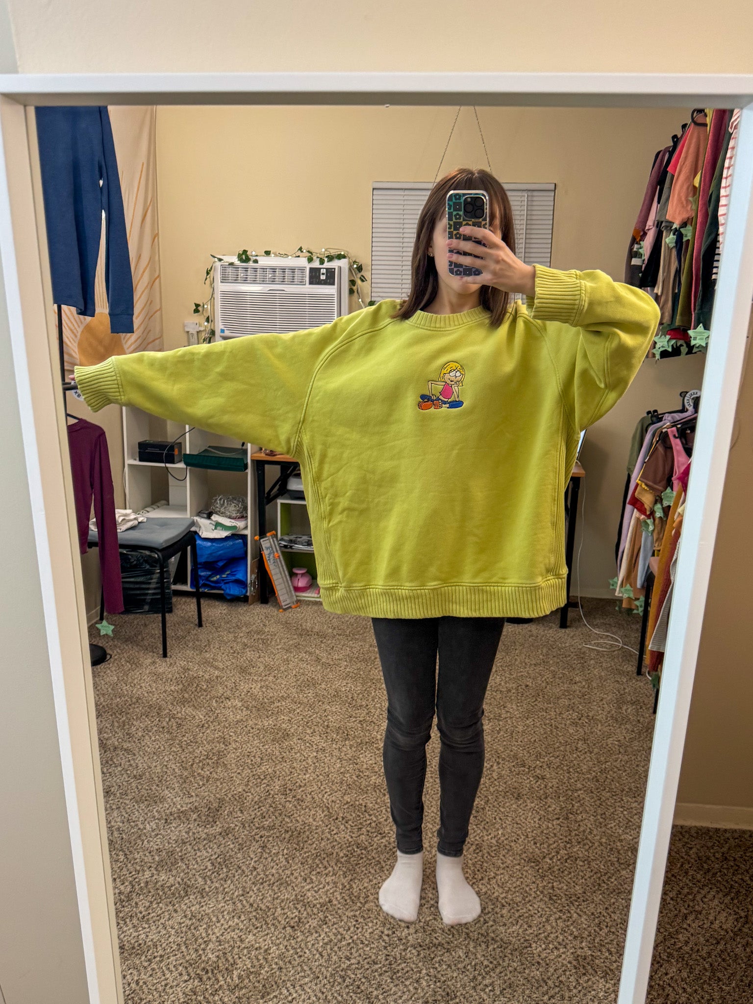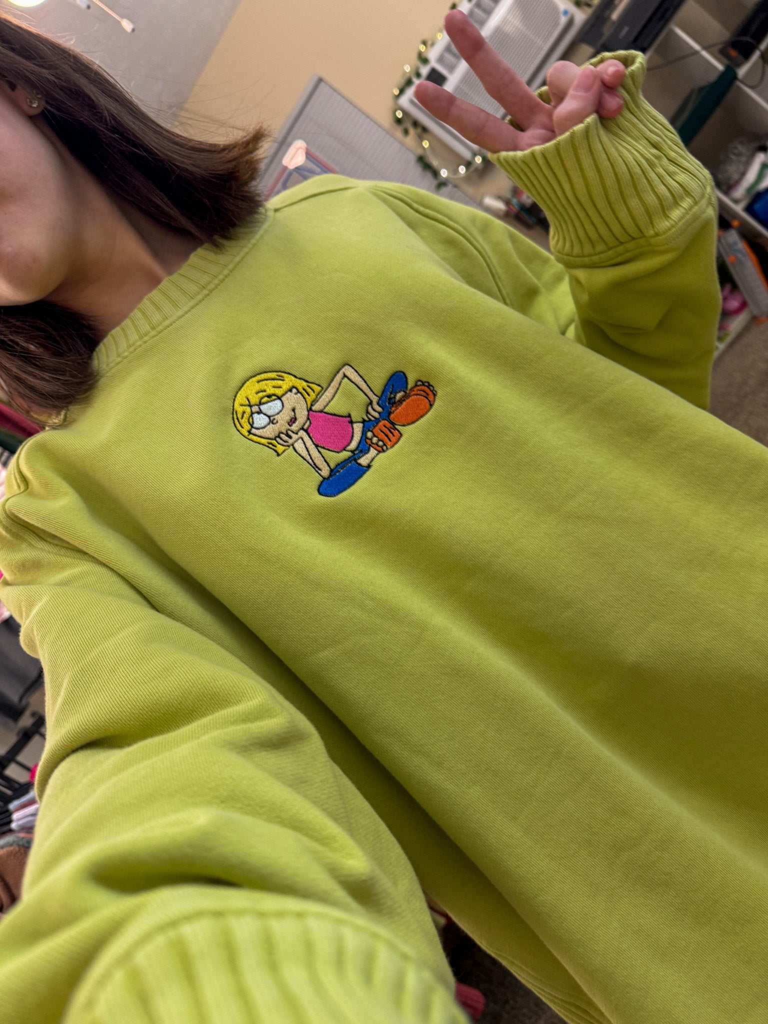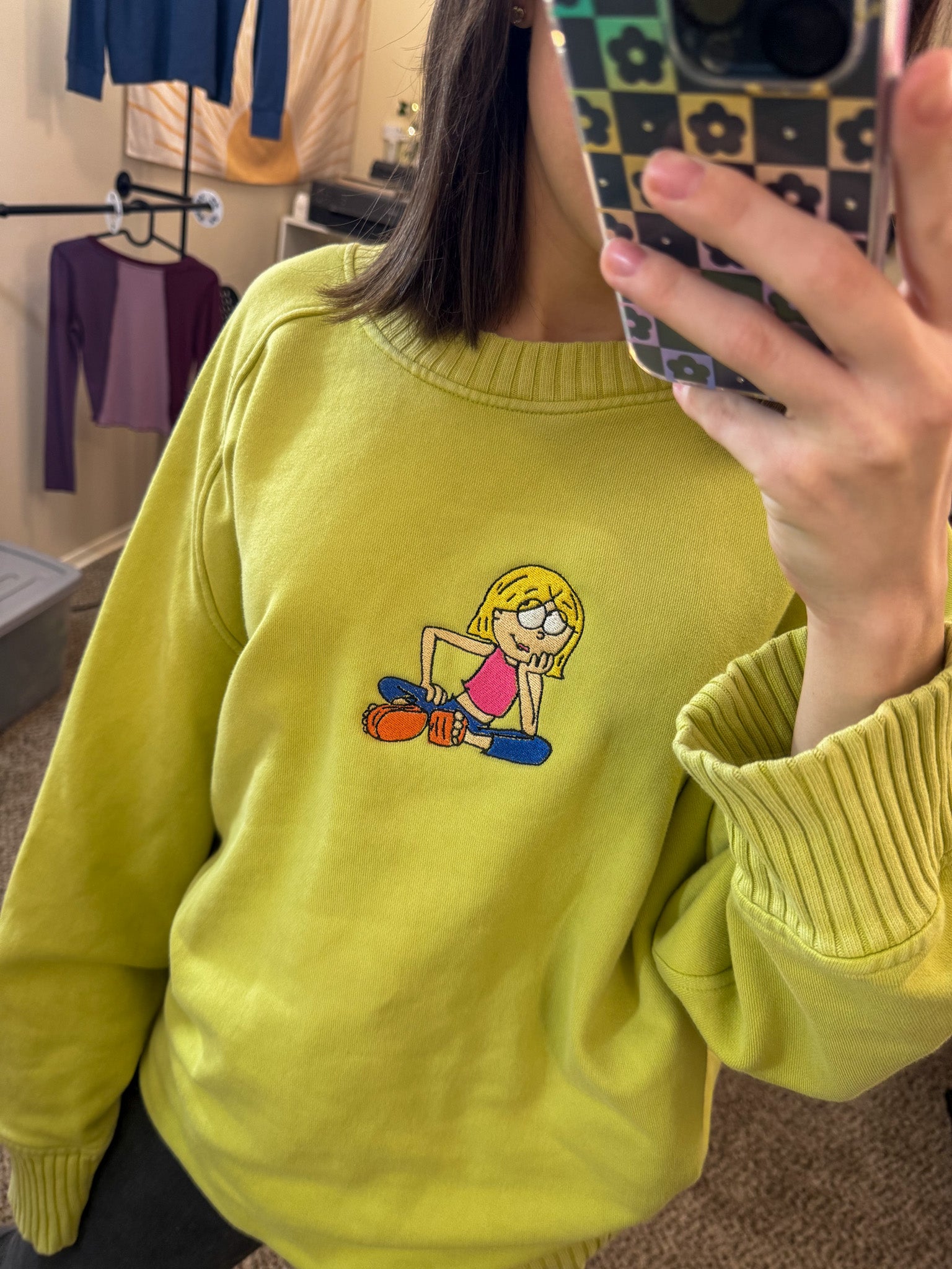 Add some fun to your wardrobe with our Lizzie McGuire Yellow Sweater! Embroidered by us, this upcycled secondhand garment not only supports our small biz but also promotes sustainable and slow fashion. Rock this quirky and playful sweater with pride!