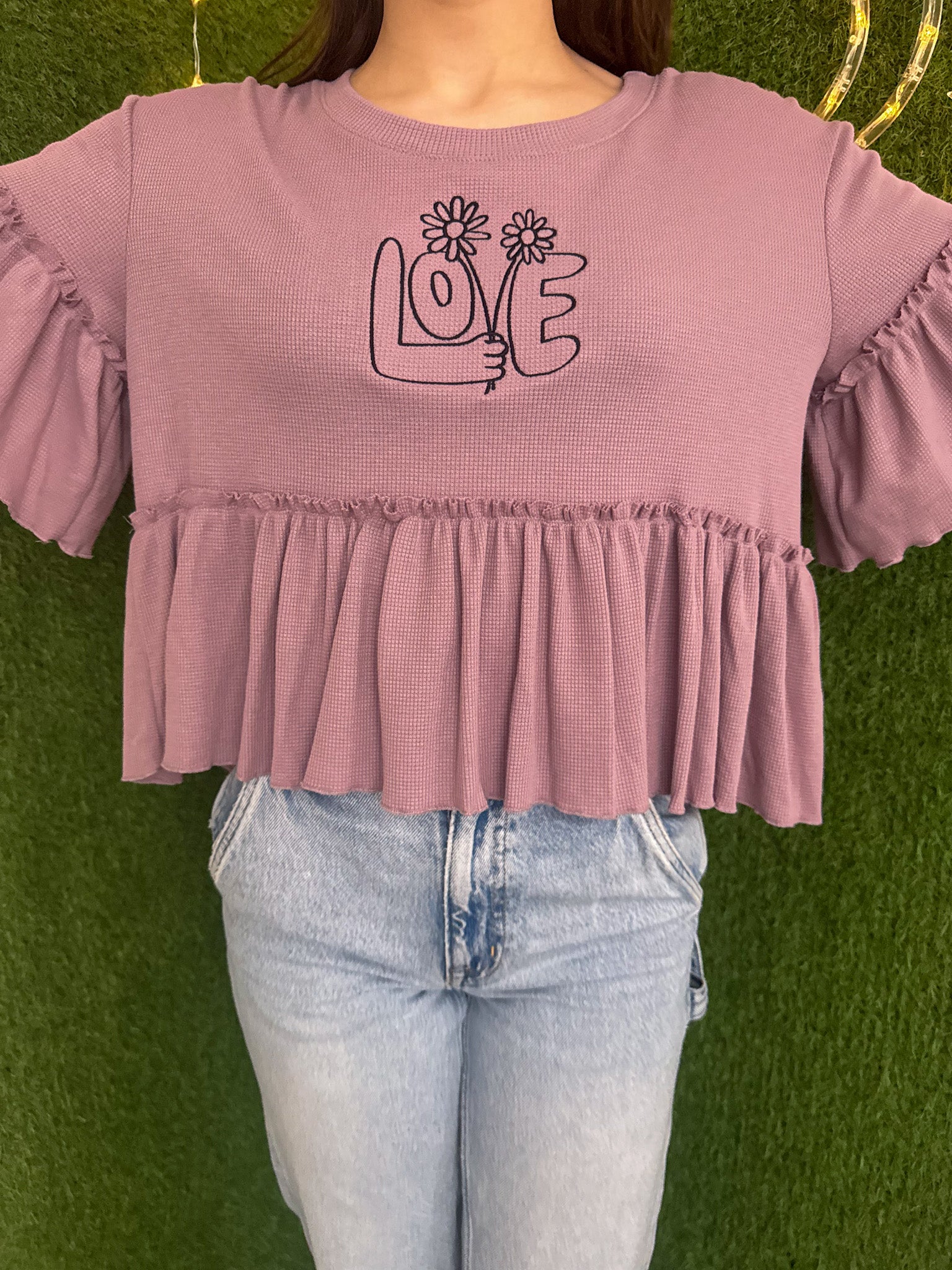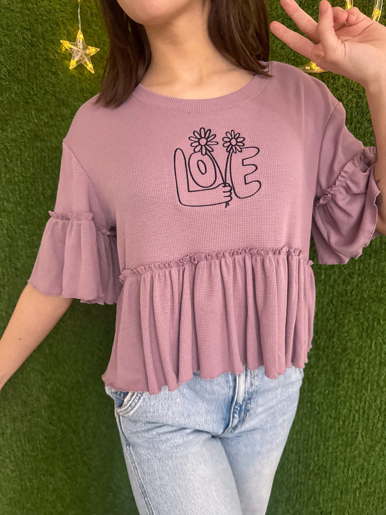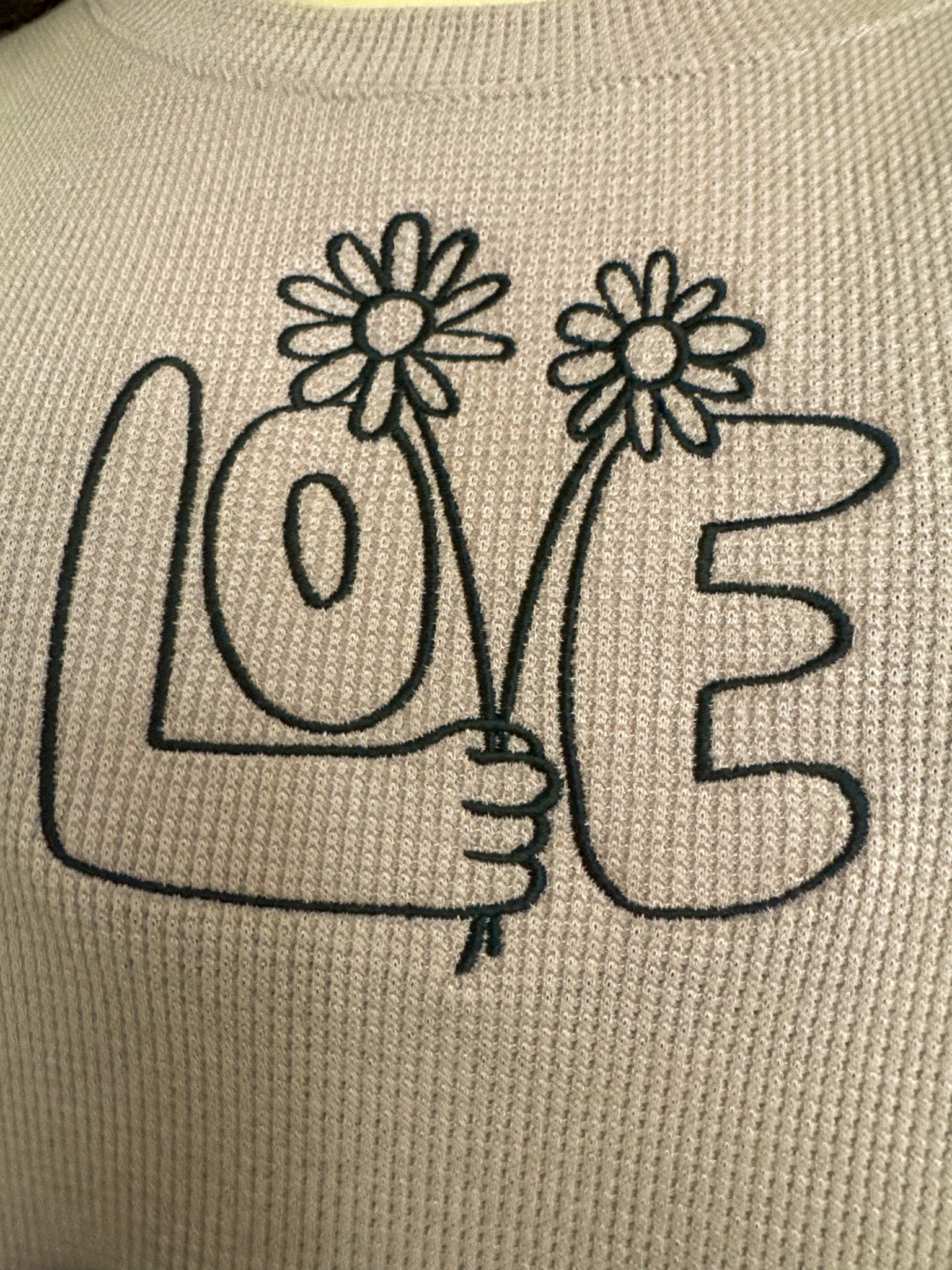 Spread love and sustainability with our Love Flowers Flowy Purple T-Shirt. Embroidered with care, this upcycled secondhand garment supports our small biz and slow fashion movement. Join us in making a positive impact with our eco-friendly and stylish tee!