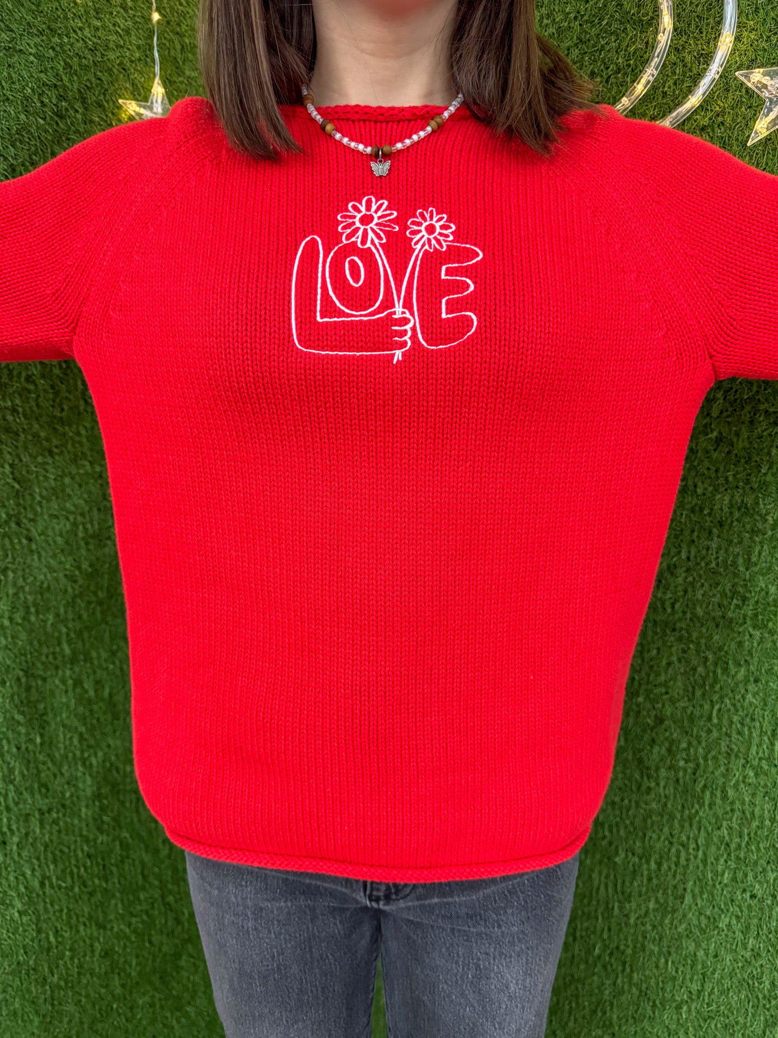 Show your love for the planet and small businesses with our Love Red Sweater! This embroidered, upcycled, and sustainable secondhand garment supports slow fashion. Join the movement and cozy up in style.