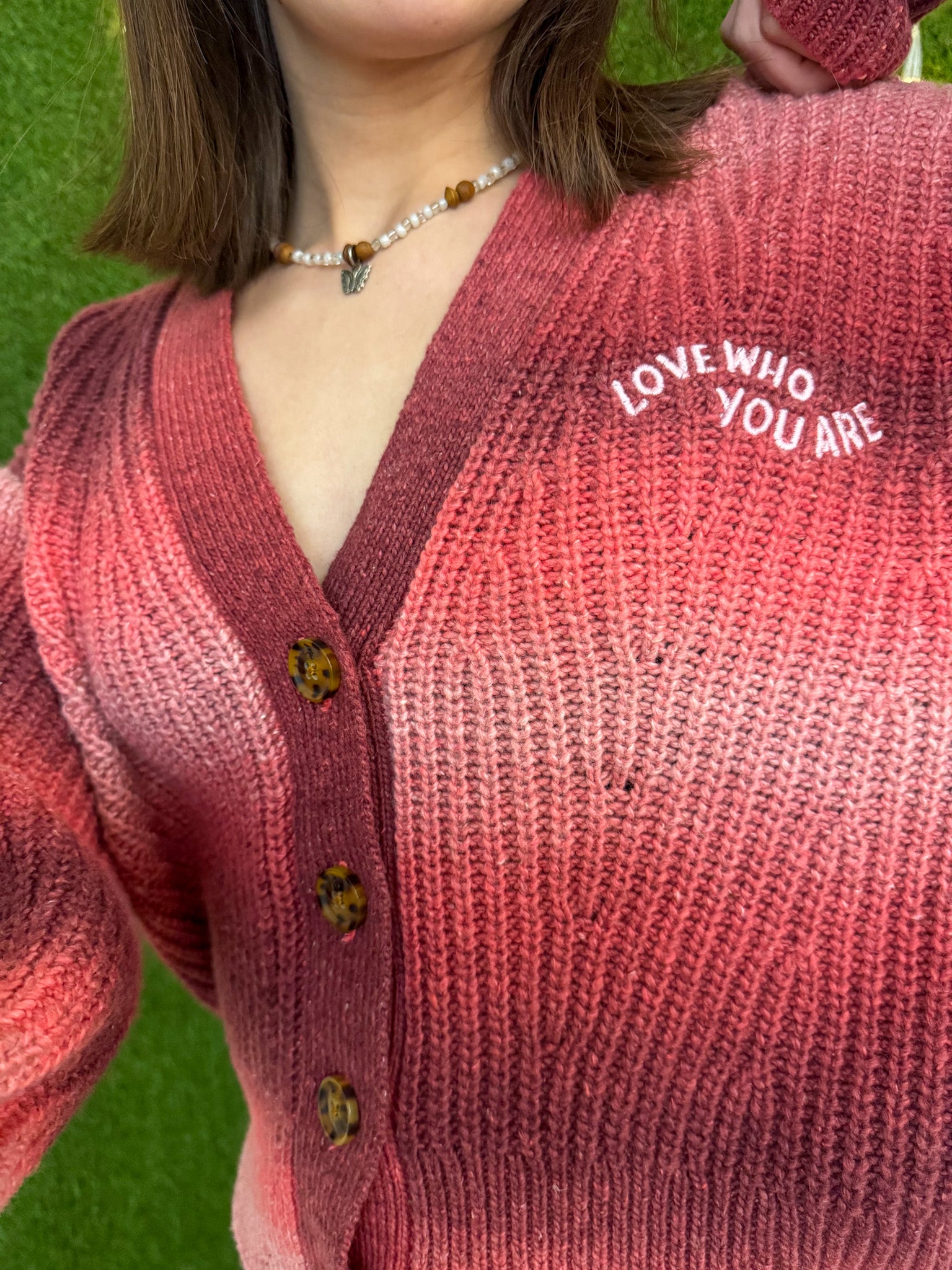 Spread love and embrace sustainability with our Love Who You Are Button Up V-Neck Sweater. This one-of-a-kind secondhand garment features playful embroidered details, all while supporting our small biz and promoting slow fashion. Upcycled and sustainable, it's a perfect addition to your eclectic wardrobe!