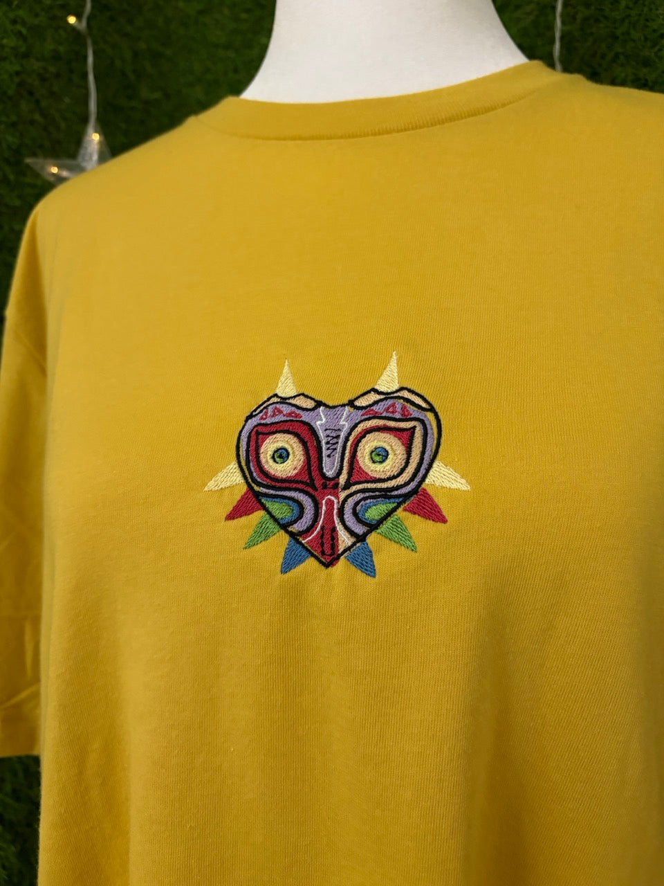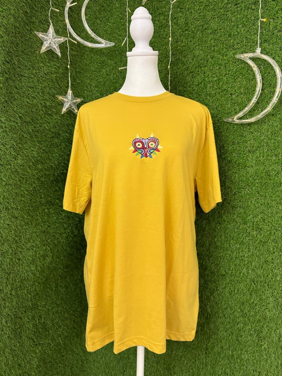 Brighten your day with this cheerful yellow tee featuring a playful Majora’s Mask design. Crafted with care for slow fashion lovers who value sustainability and style that lasts<3