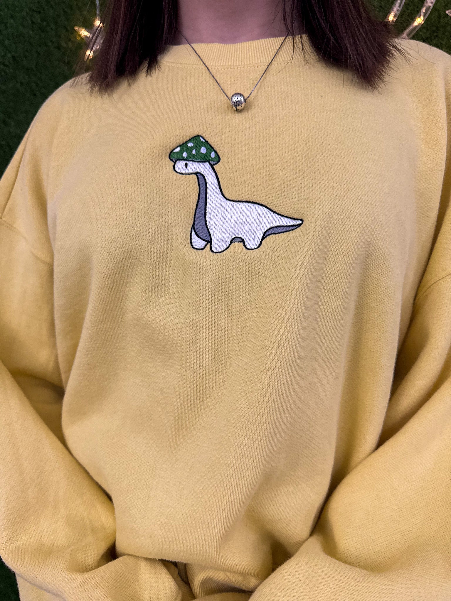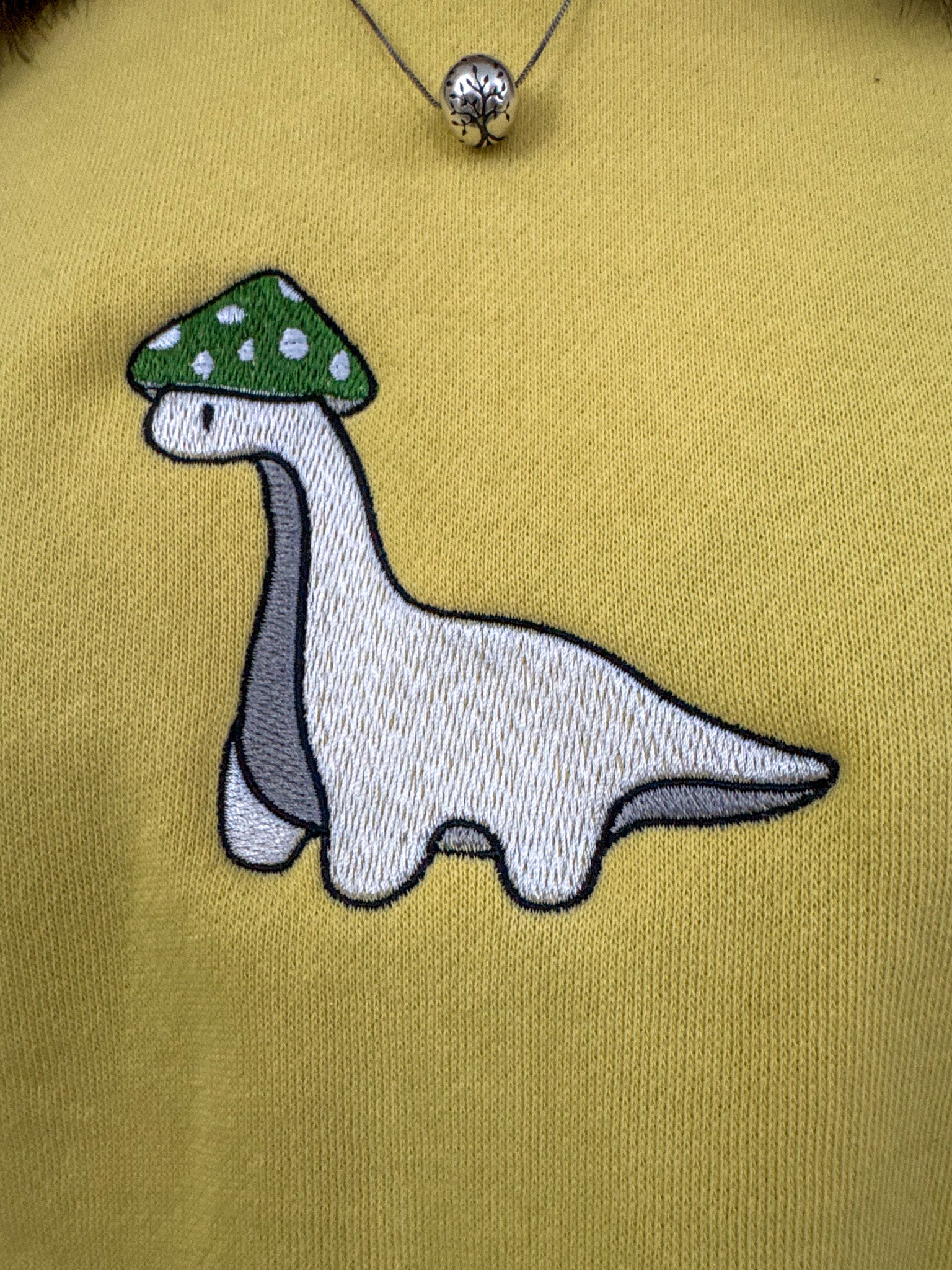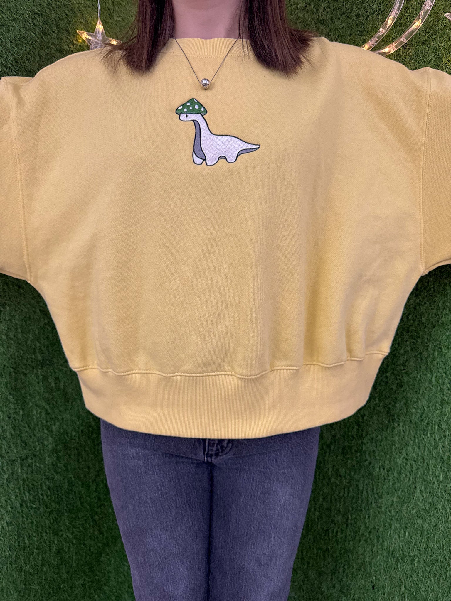 This Mushroom Dino Yellow Crewneck is more than just a cute and playful garment. With its embroidered design, you'll be supporting our small business and sustainable fashion while rocking a unique upcycled secondhand piece. Join us in contributing to slow fashion and making a positive impact<3