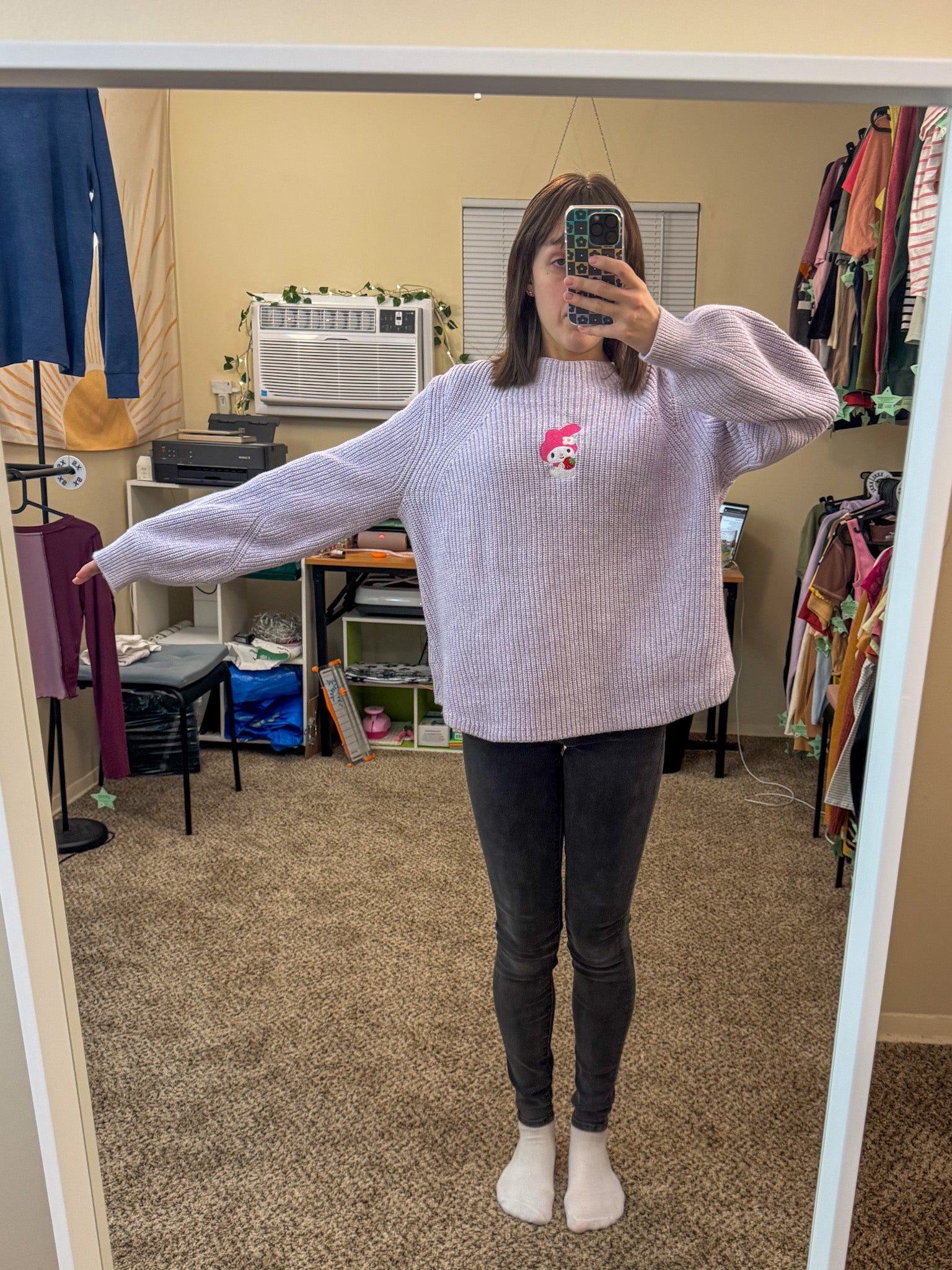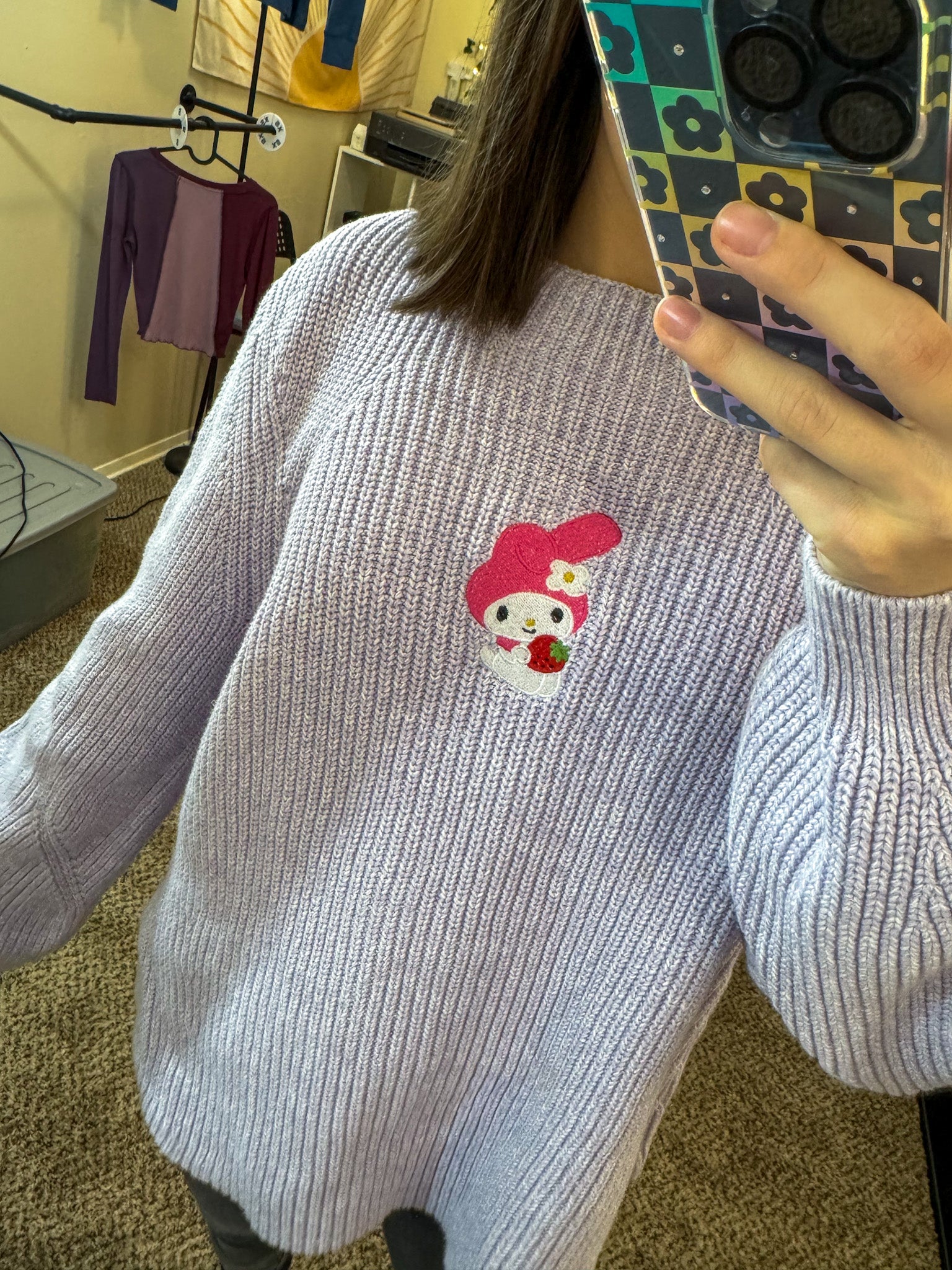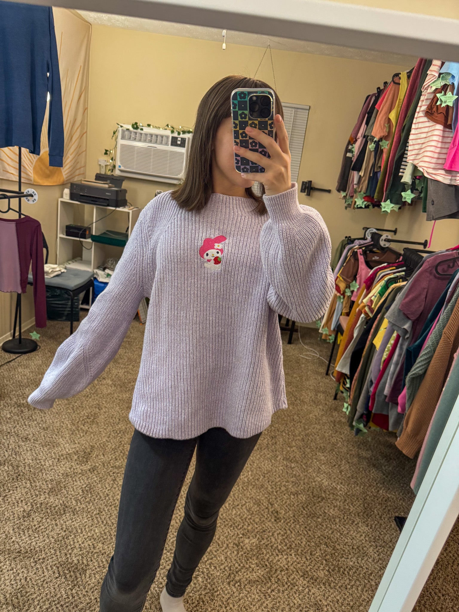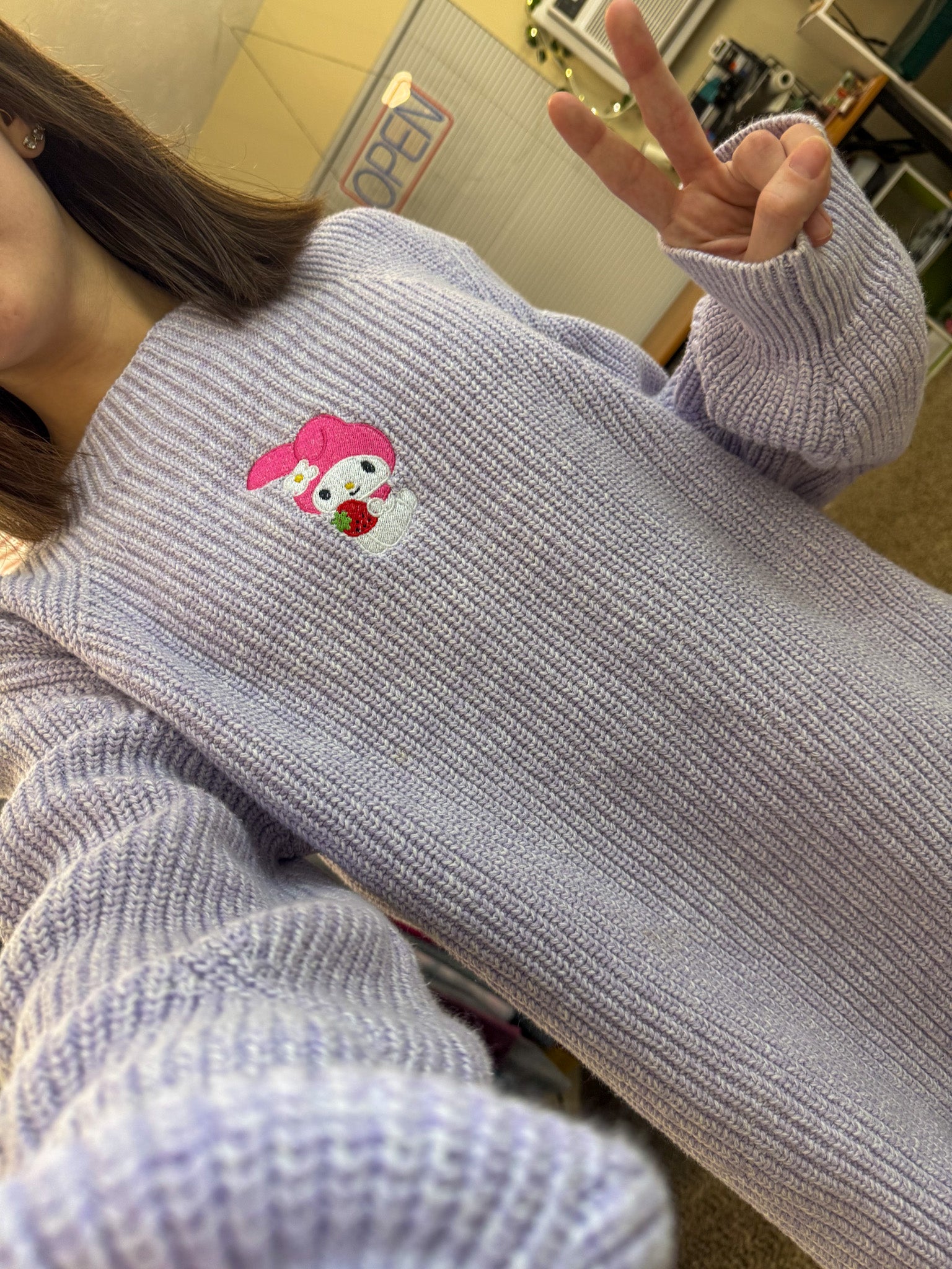 Make a sustainable and stylish statement with our My Melody Lavender Sweater. Upcycled and embroidered by us, this discarded secondhand garment supports our small biz and the planet. Join the slow fashion movement and add a touch of quirkiness to your wardrobe!