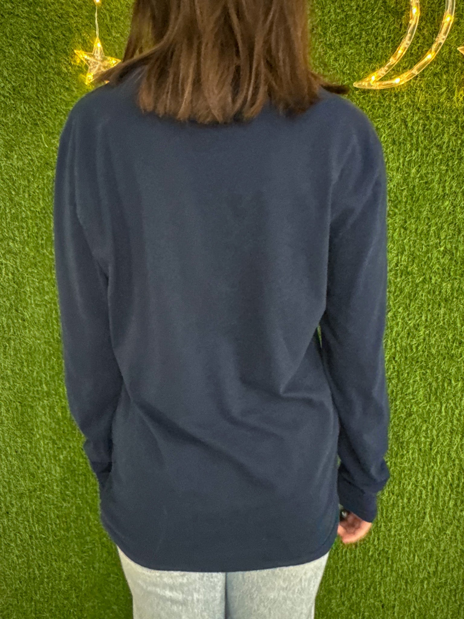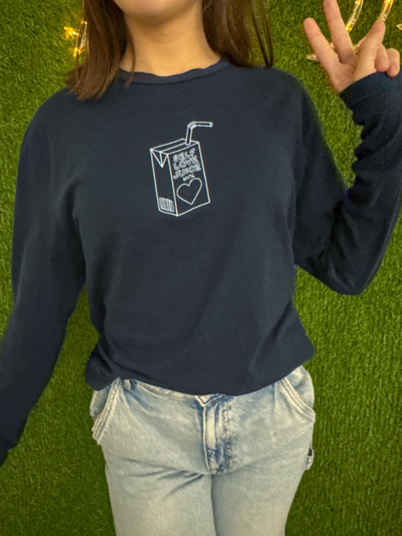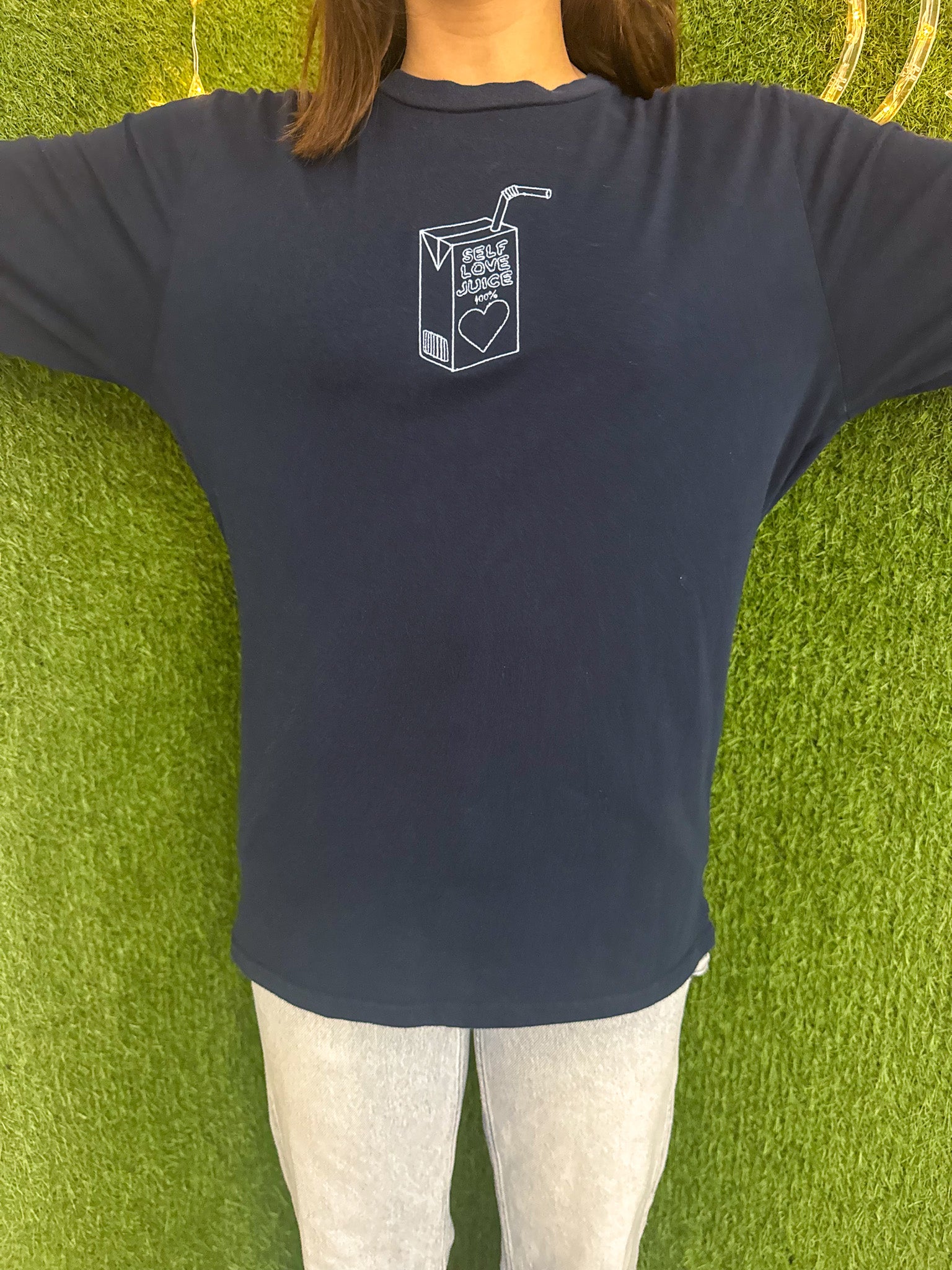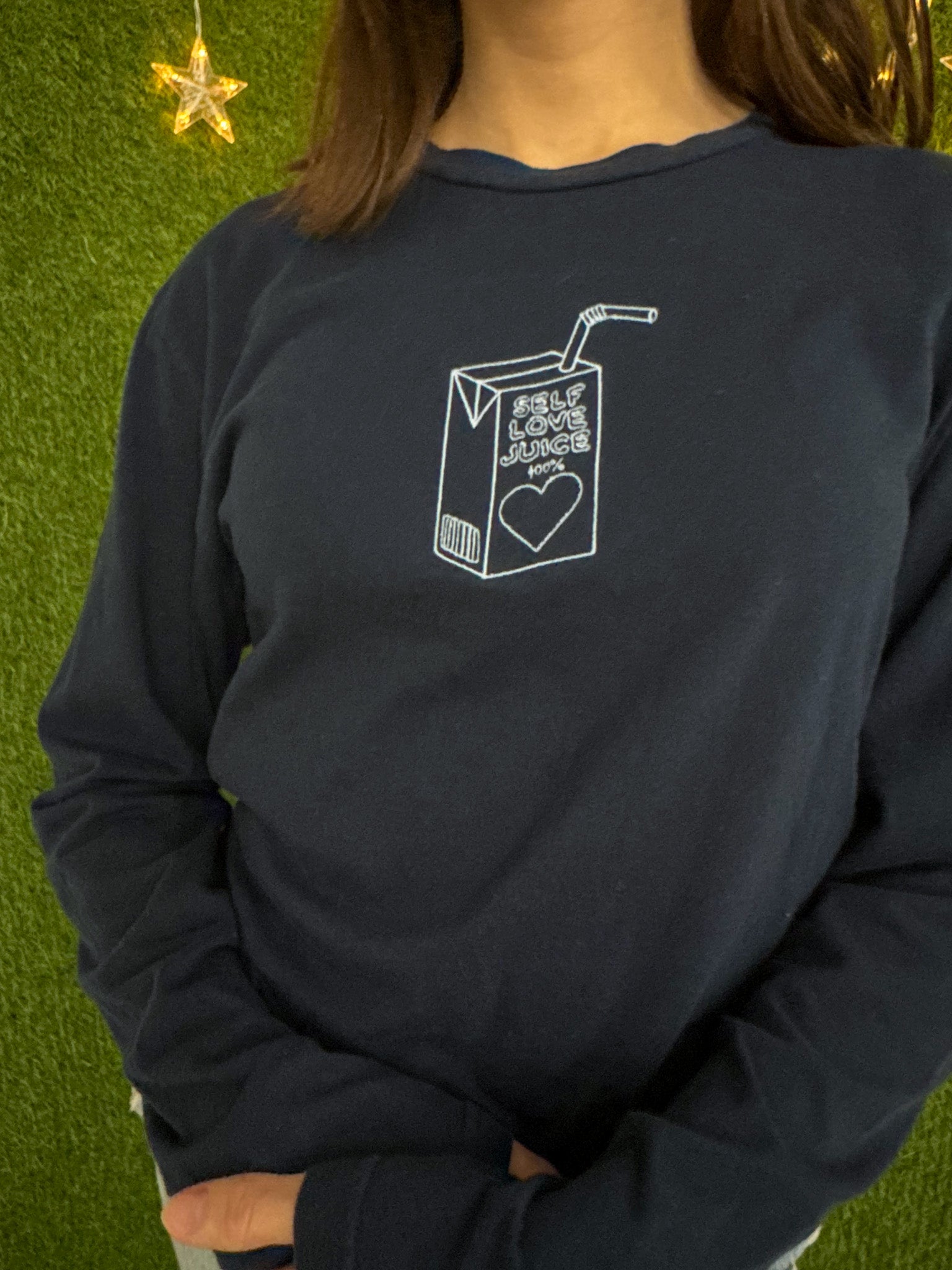 Spread some love and sustainability with our Navy Self Love Juice Long Sleeve. This upcycled and secondhand garment features beautiful embroidery and supports our small biz. Made with sustainable and slow fashion practices, feel good inside and out in this cozy top!