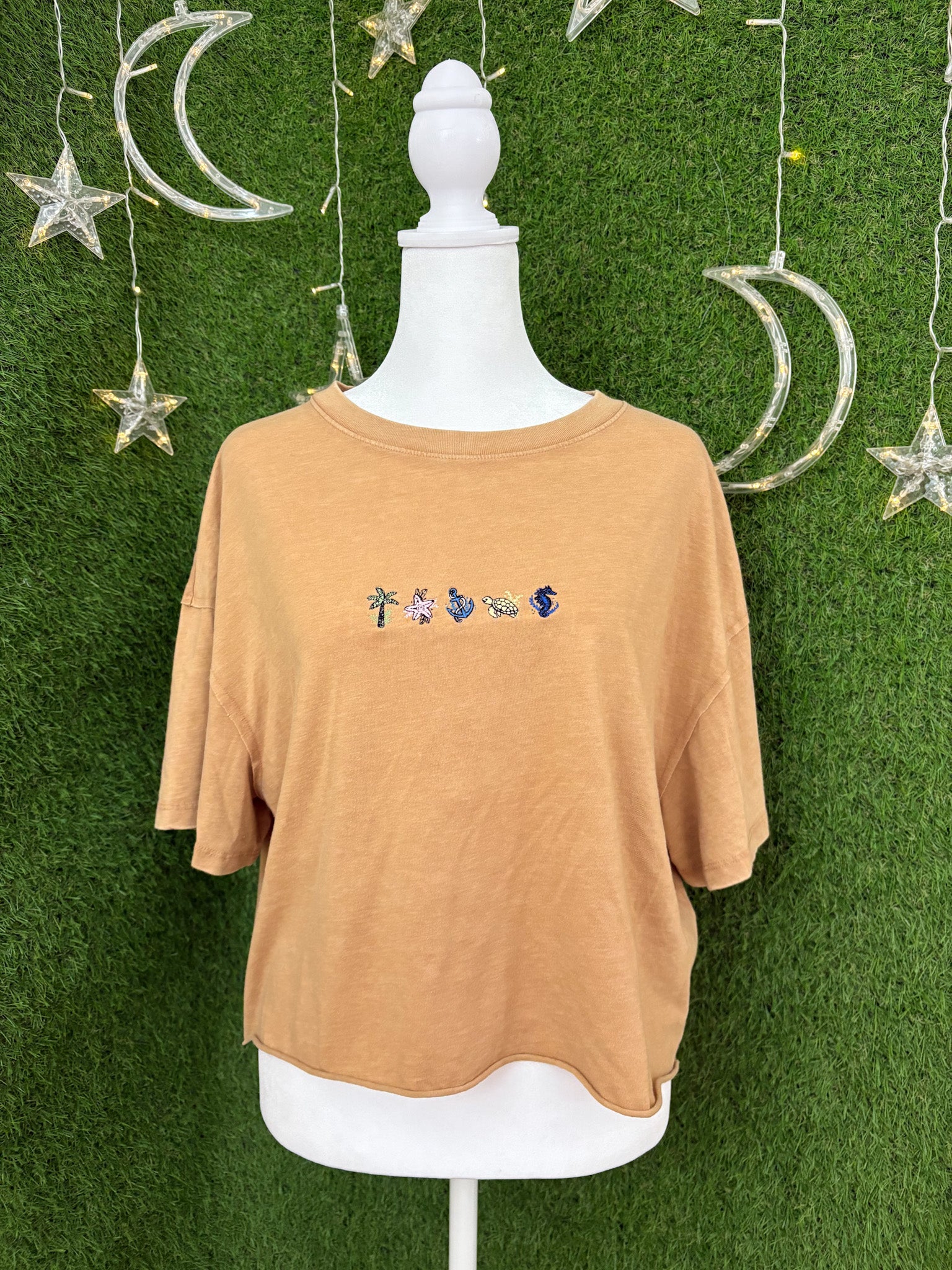 This embroidered tee is crafted by a small business using upcycled, secondhand materials. Embracing slow fashion, it offers a sustainable choice that supports mindful consumption<3