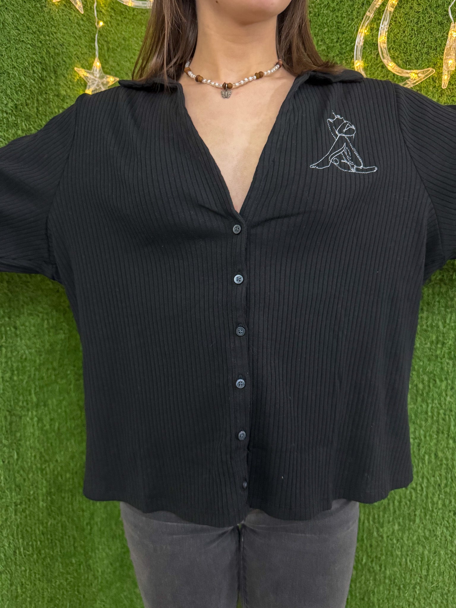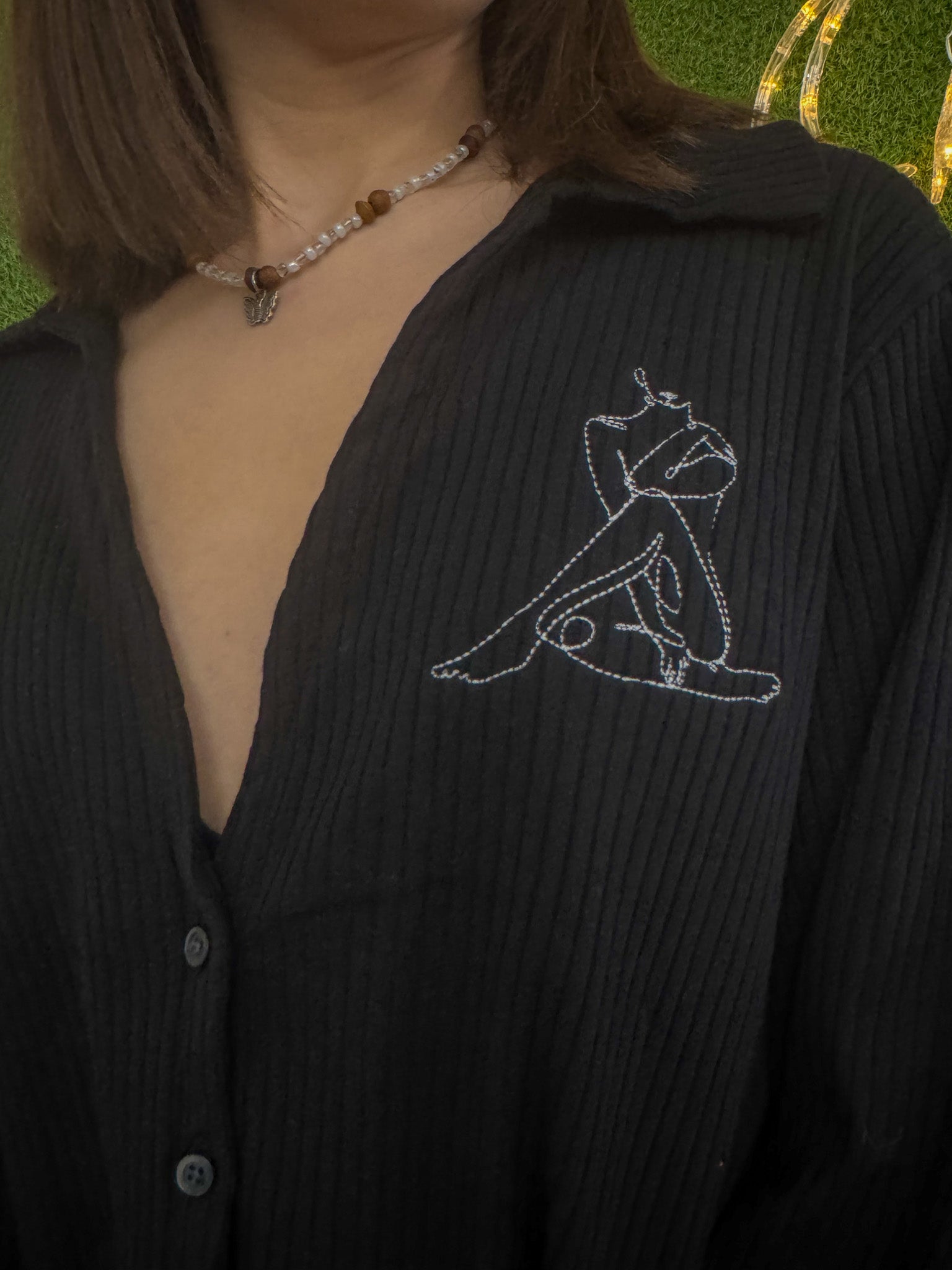 Embrace sustainability with this fashionable embroidered button-up. Support small businesses and feel good knowing you're wearing an upcycled and secondhand garment. The perfect addition to your slow fashion wardrobe!