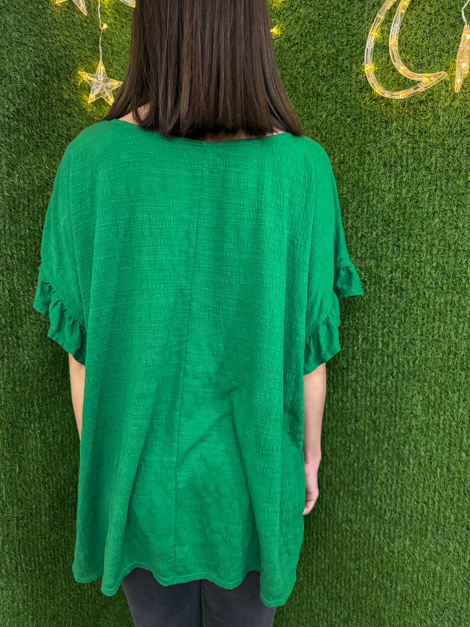 One Line Woman Green Ruffled Sleeve Tee 3XL