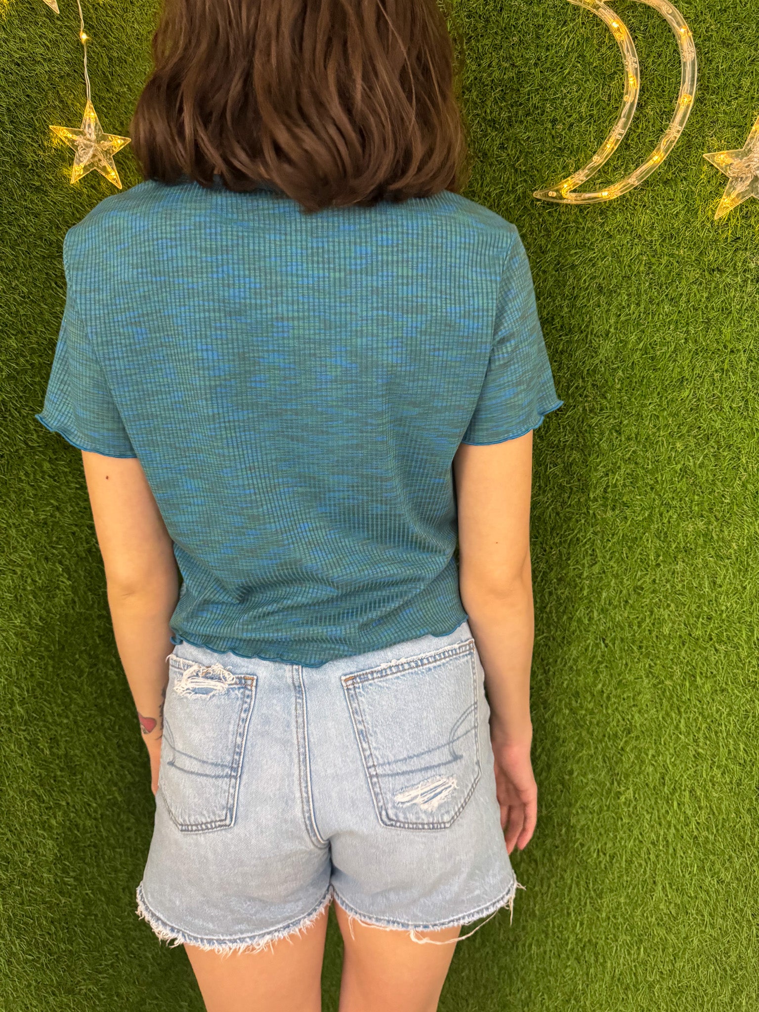 Patchwork Worm Blue Baby Tee L