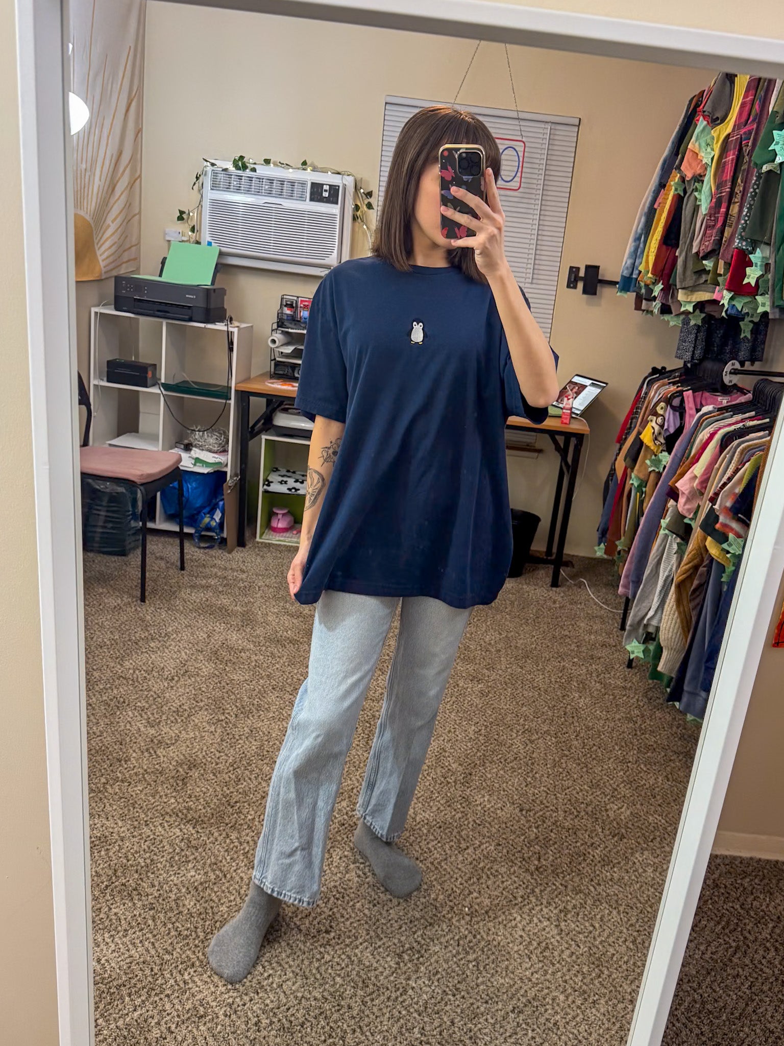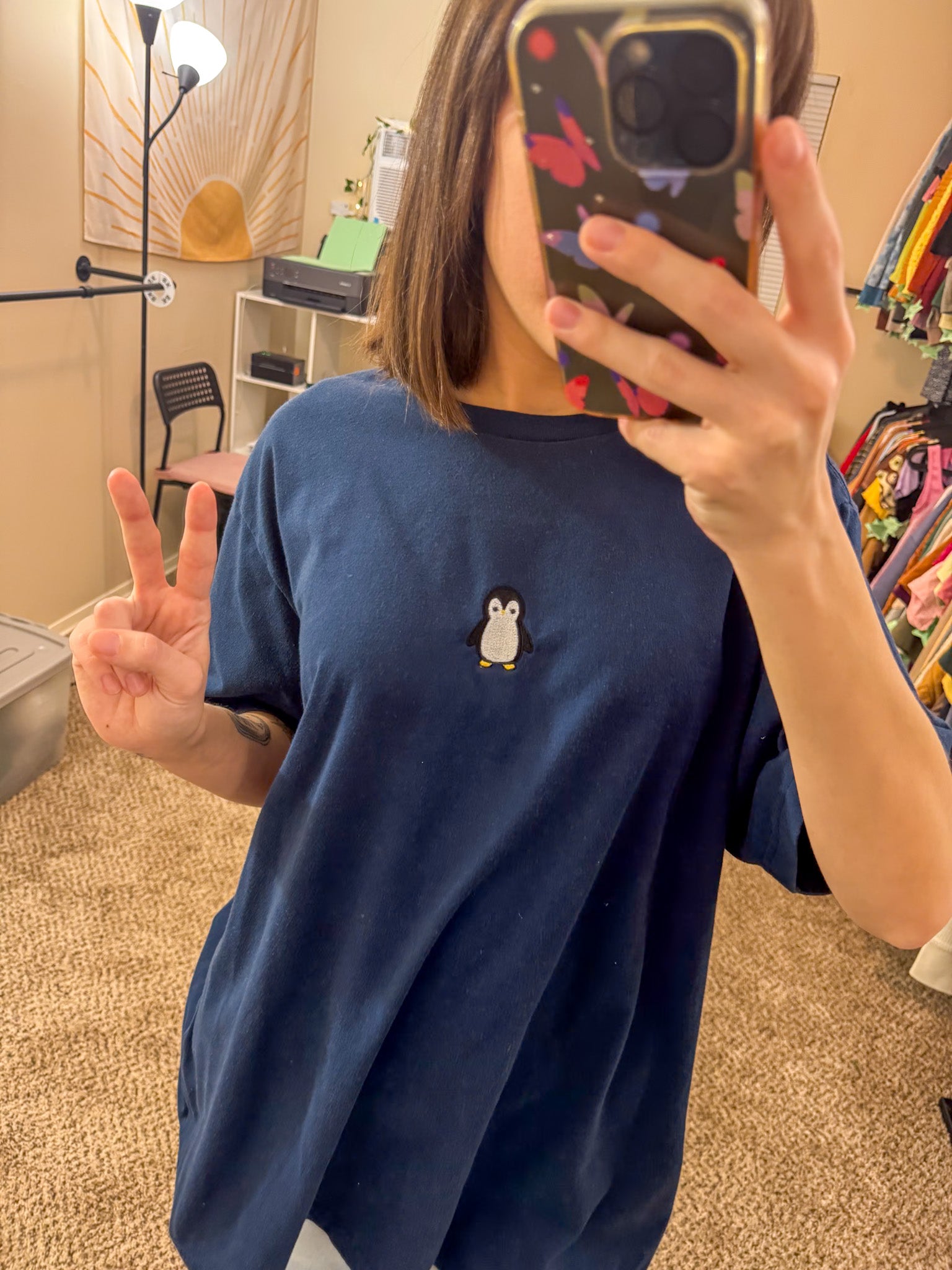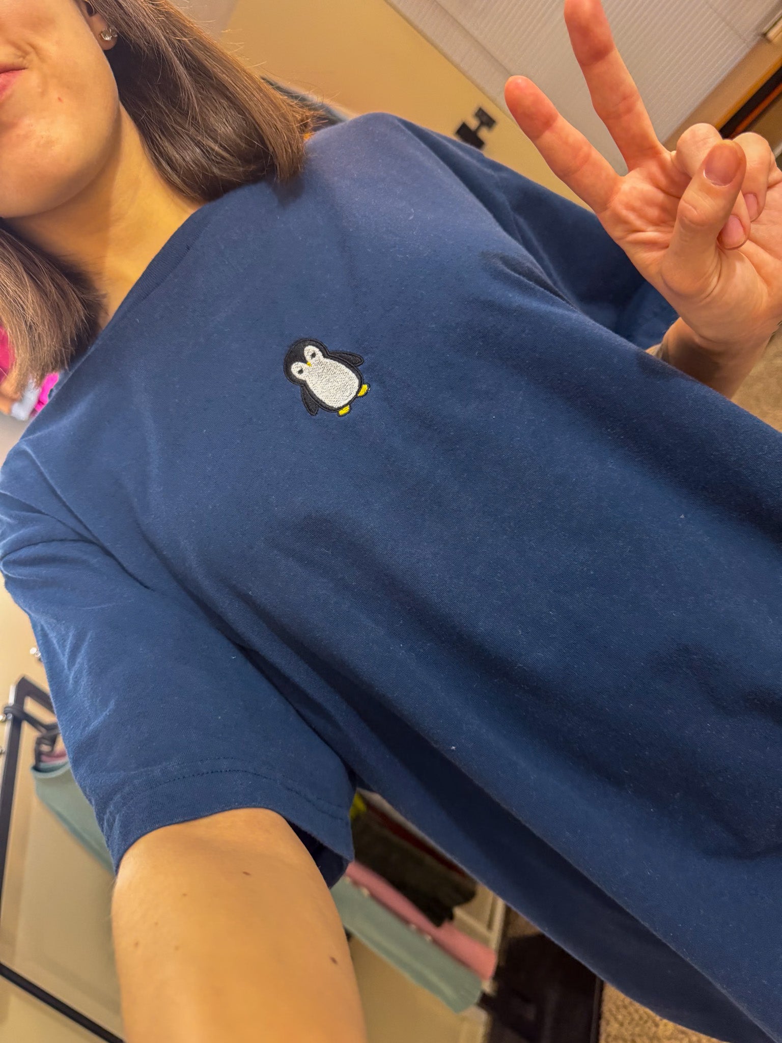 Add some quirk to your wardrobe with our Penguin Navy T-Shirt. Embroidered by us and upcycled from a discarded secondhand garment, this sustainable and slow fashion piece supports our small biz. Who said fashion couldn't be fun and conscious at the same time?!