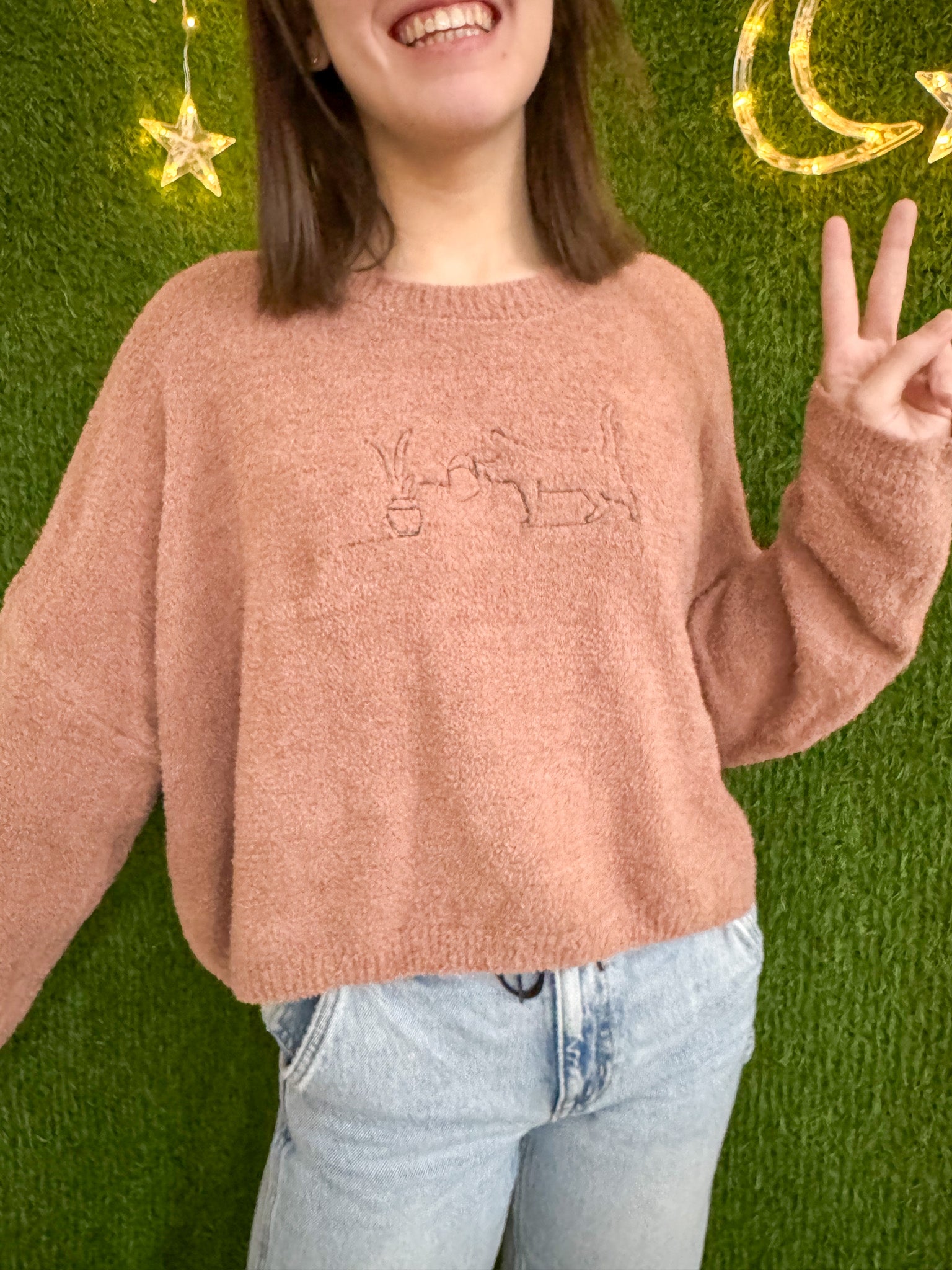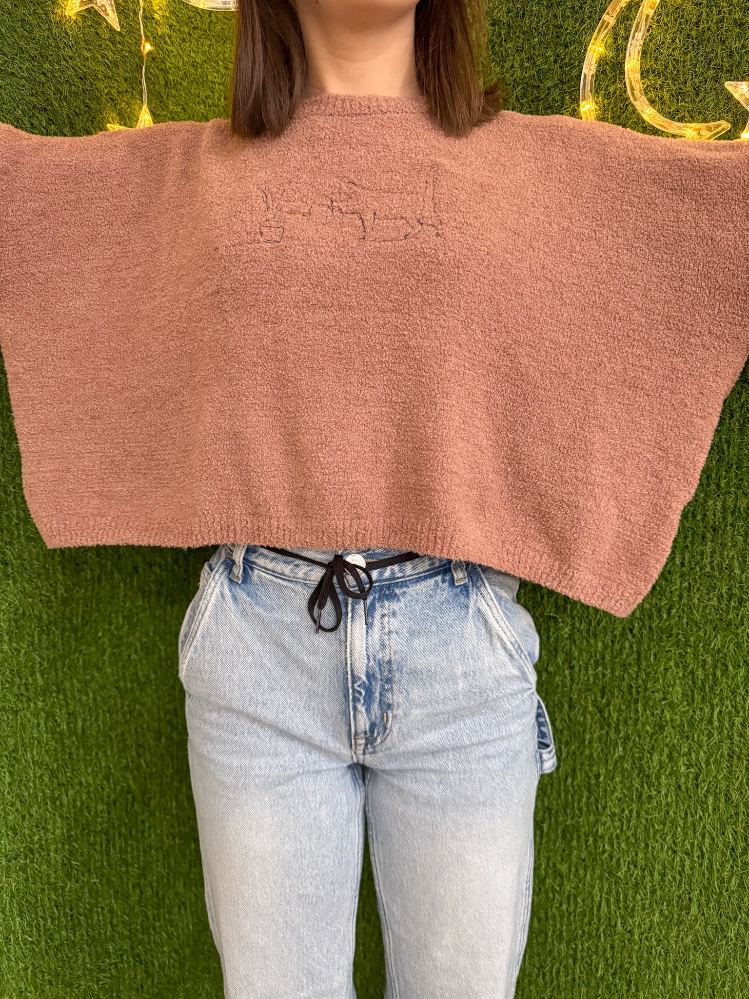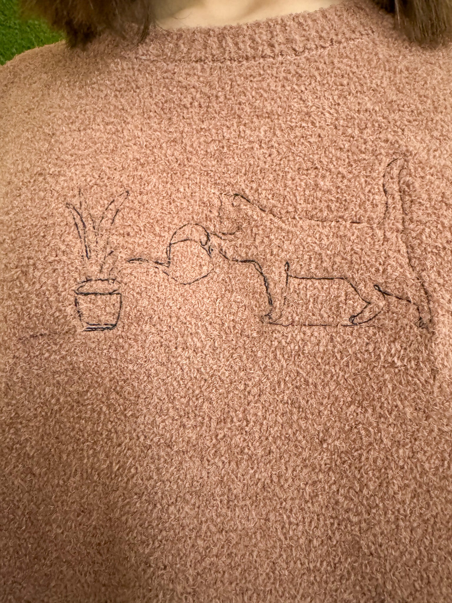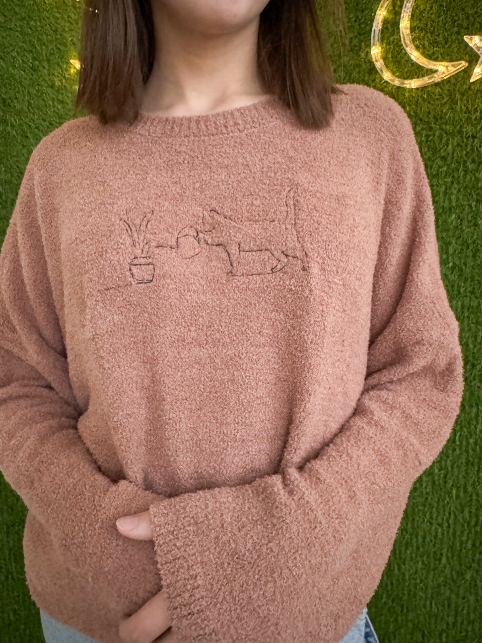 Get cozy and stylish with the Plant Cat Brown Cropped Sweater. Made with an embroidered design, this trendy sweater not only supports our small biz, but is also upcycled from a secondhand garment for a sustainable and slow fashion choice. Meow that's fashion with a purpose!