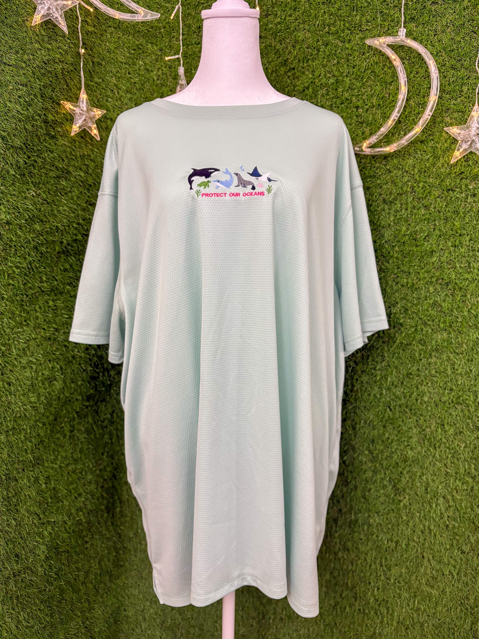 Made from upcycled, secondhand garment, this embroidered shirt supports sustainable, slow fashion. Offers an eco-friendly way to show your commitment to protecting our oceans<3