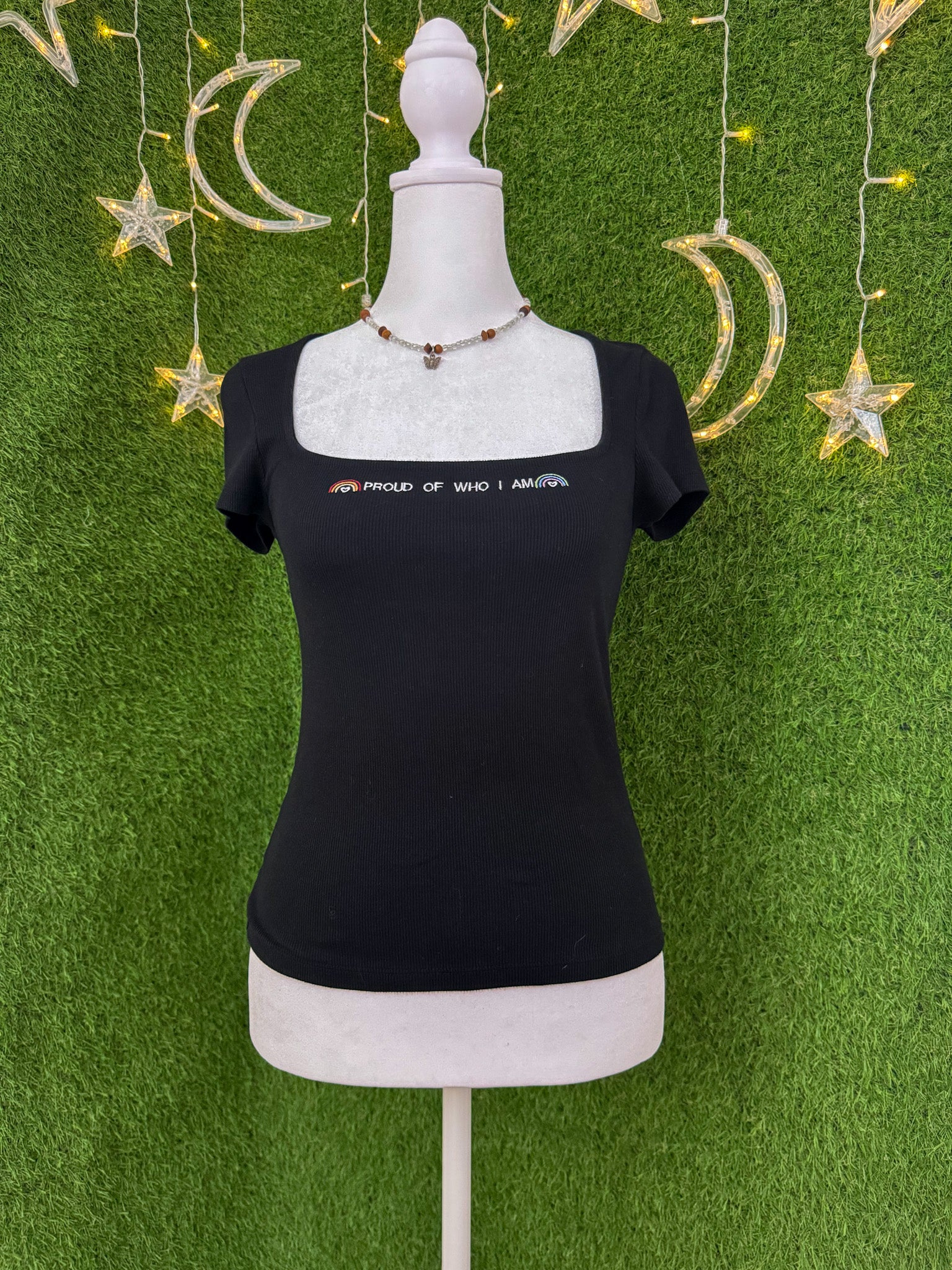 Celebrate your individuality with this navy black tee, thoughtfully embroidered and crafted from upcycled, secondhand fabric. Supporting small businesses and embracing slow fashion, this sustainable piece helps reduce waste<3