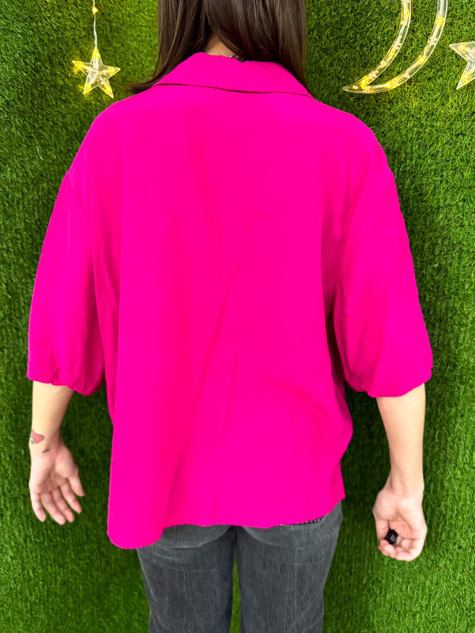 Self Love Juice Pink Cropped Button Up Collard Shirt XL
