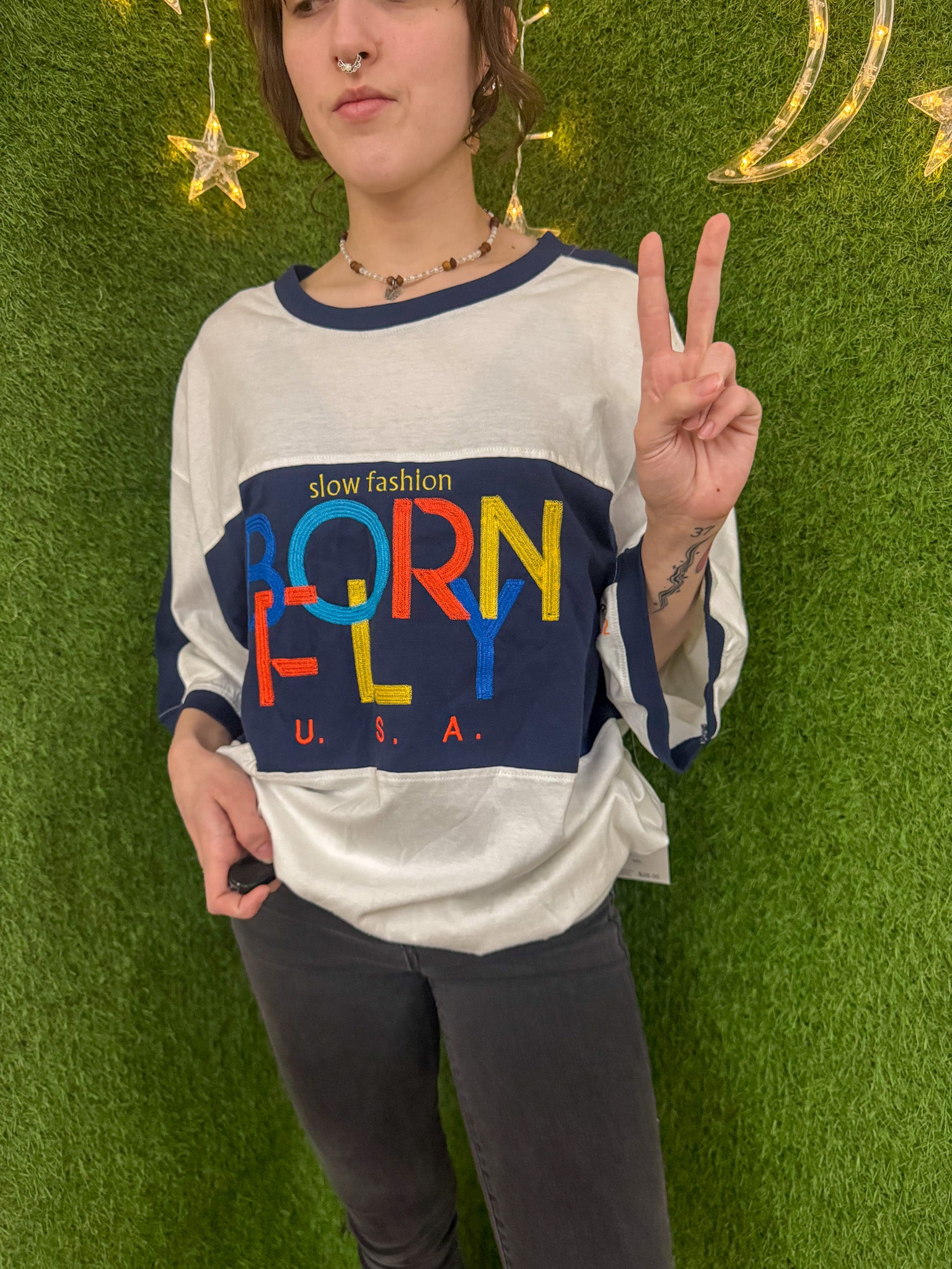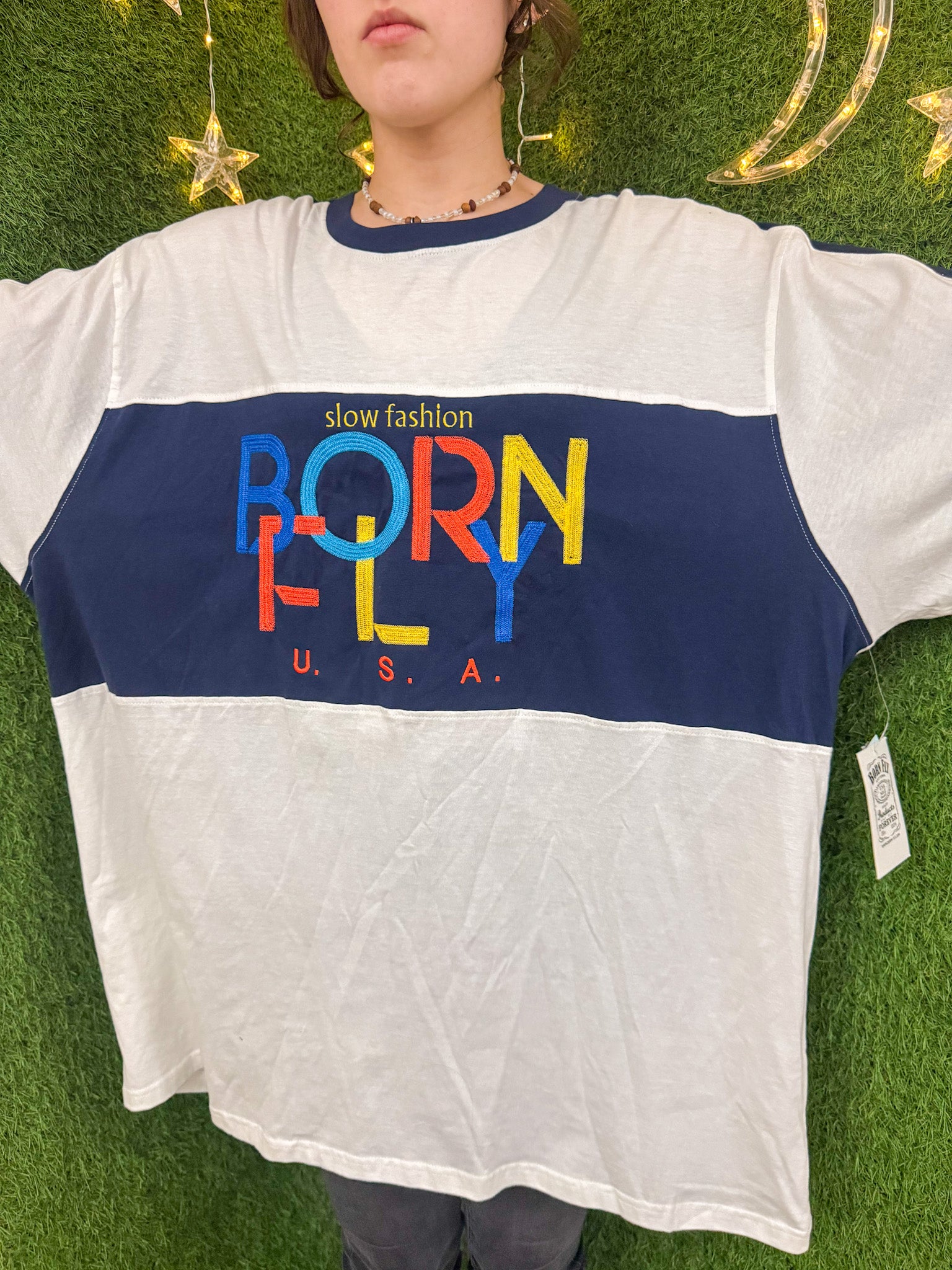 Fly high in style with our Slow Fashion Born Fly T-Shirt. An upcycled, sustainable secondhand garment, this tee supports our small biz and promotes slow fashion. Embroidered with care to make a statement wherever you go!