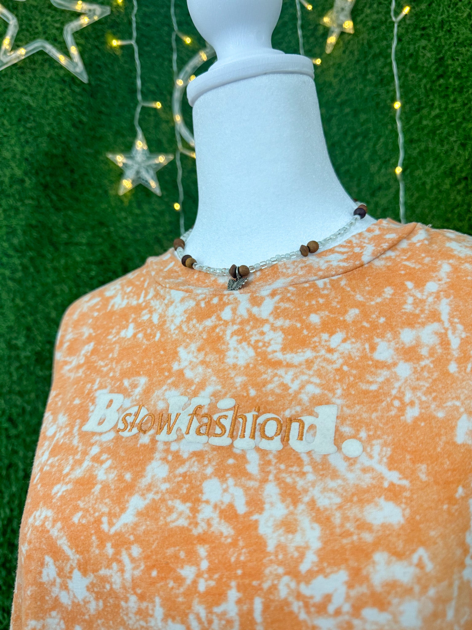 This orange cropped t-shirt is a sustainable choice upcycled from a secondhand garment. Featuring delicate embroidery, it supports slow fashion and small businesses committed to eco-friendly practices. Embrace style with a conscience!