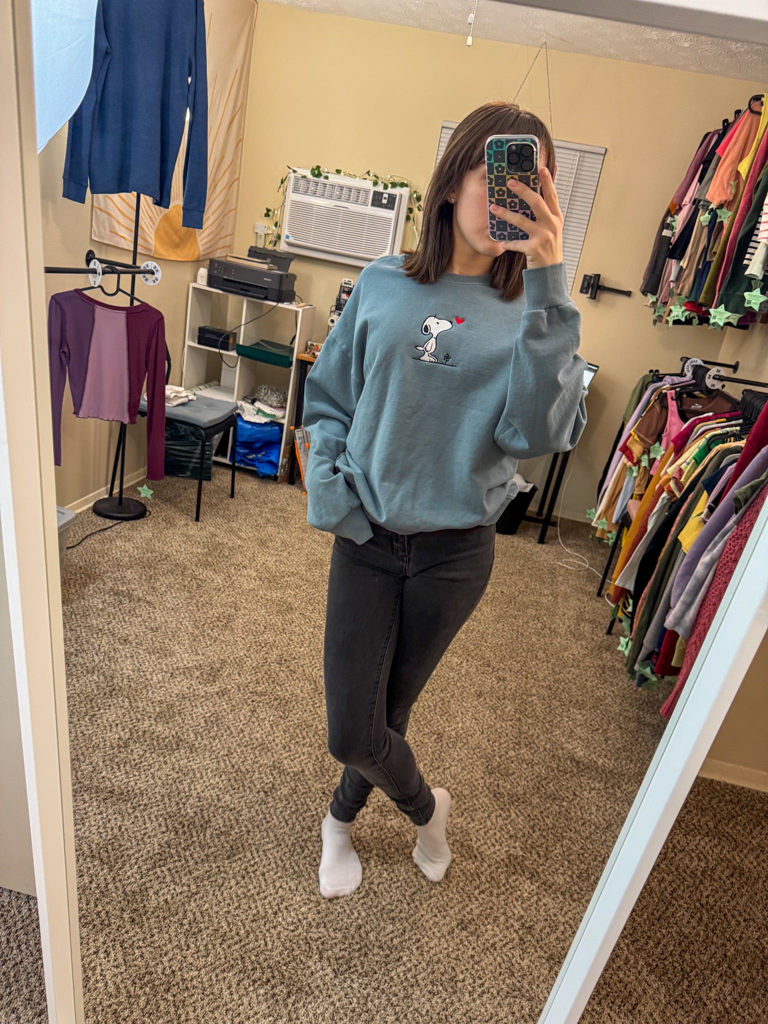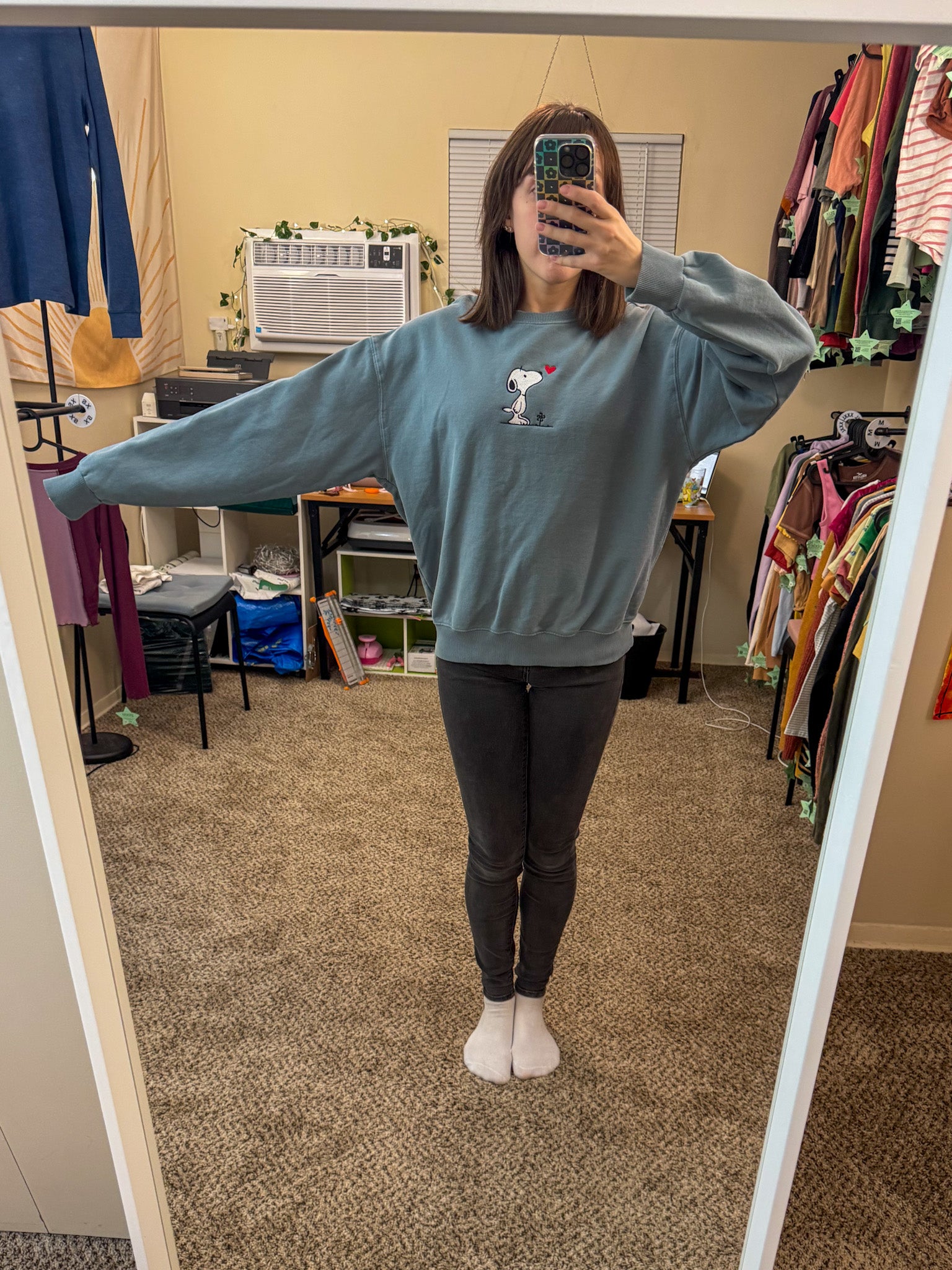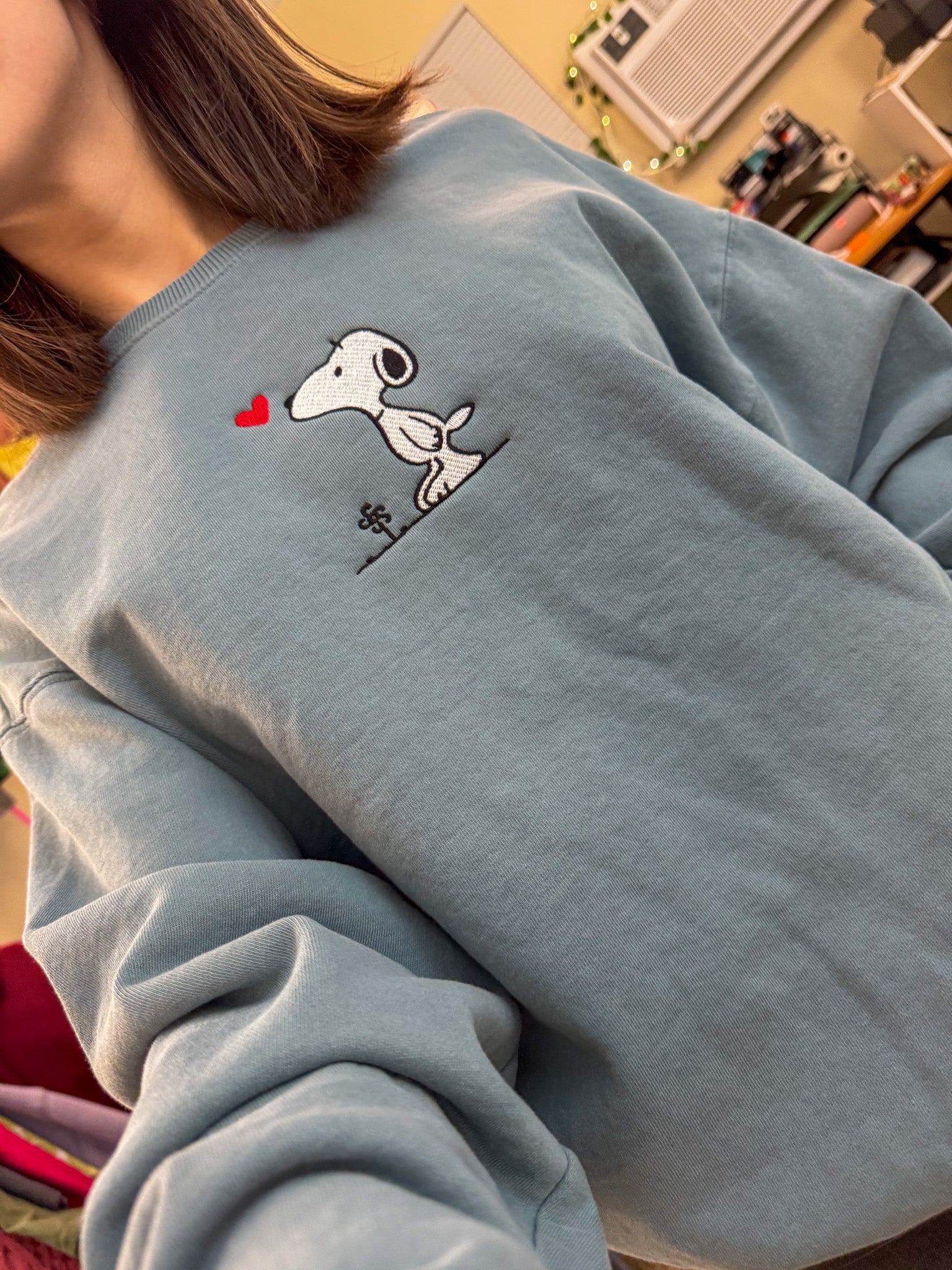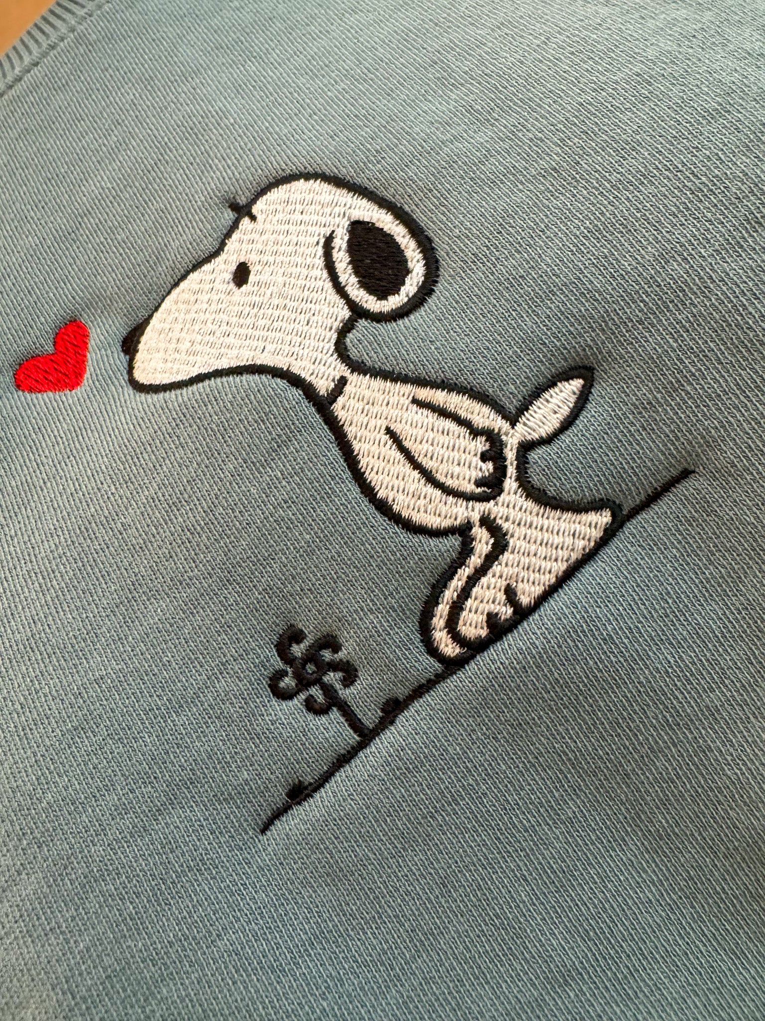 Stay stylish and support a small business with our Snoopy Crewneck Sweatshirt! This unique sweatshirt has been embroidered by us and upcycled from a discarded secondhand garment, making it a sustainable and slow fashion choice. Show off your playful and quirky side while helping the environment!