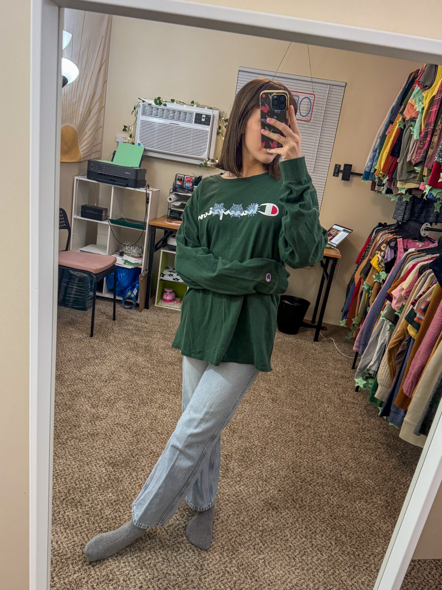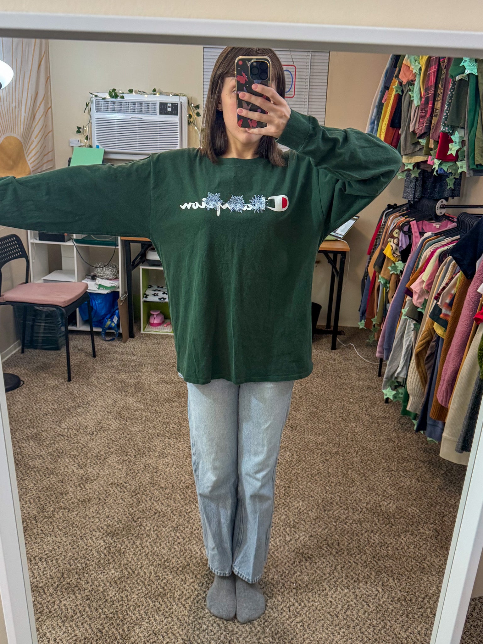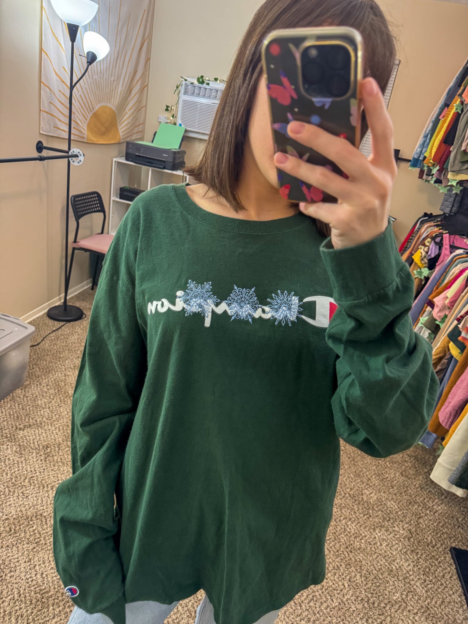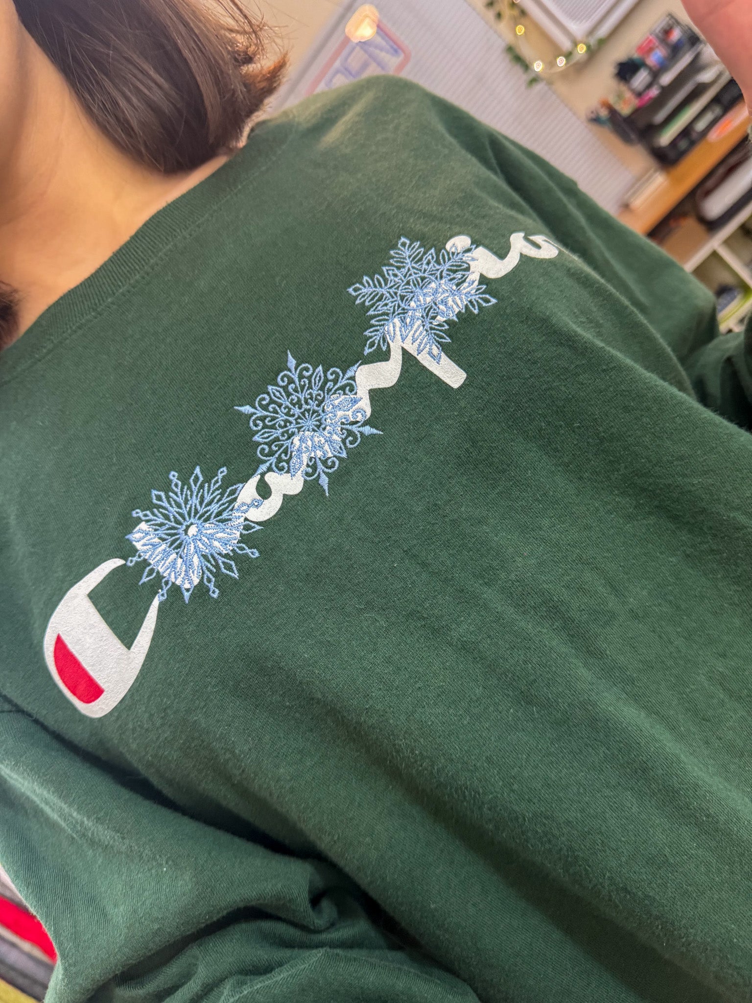 Introducing the Snowflake Champion Long Sleeve, embroidered and upcycled by us to support our small biz. This sustainable piece is crafted from a discarded secondhand garment, making it a slow fashion must-have. Join the movement and champion the snowflake!