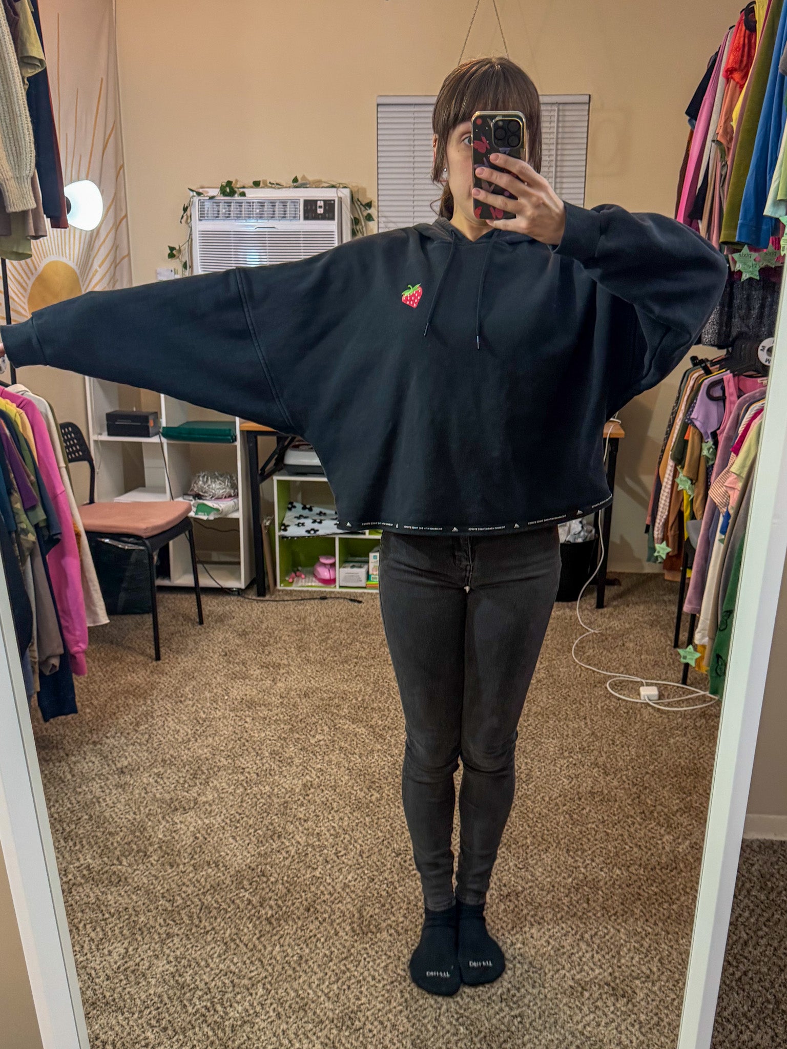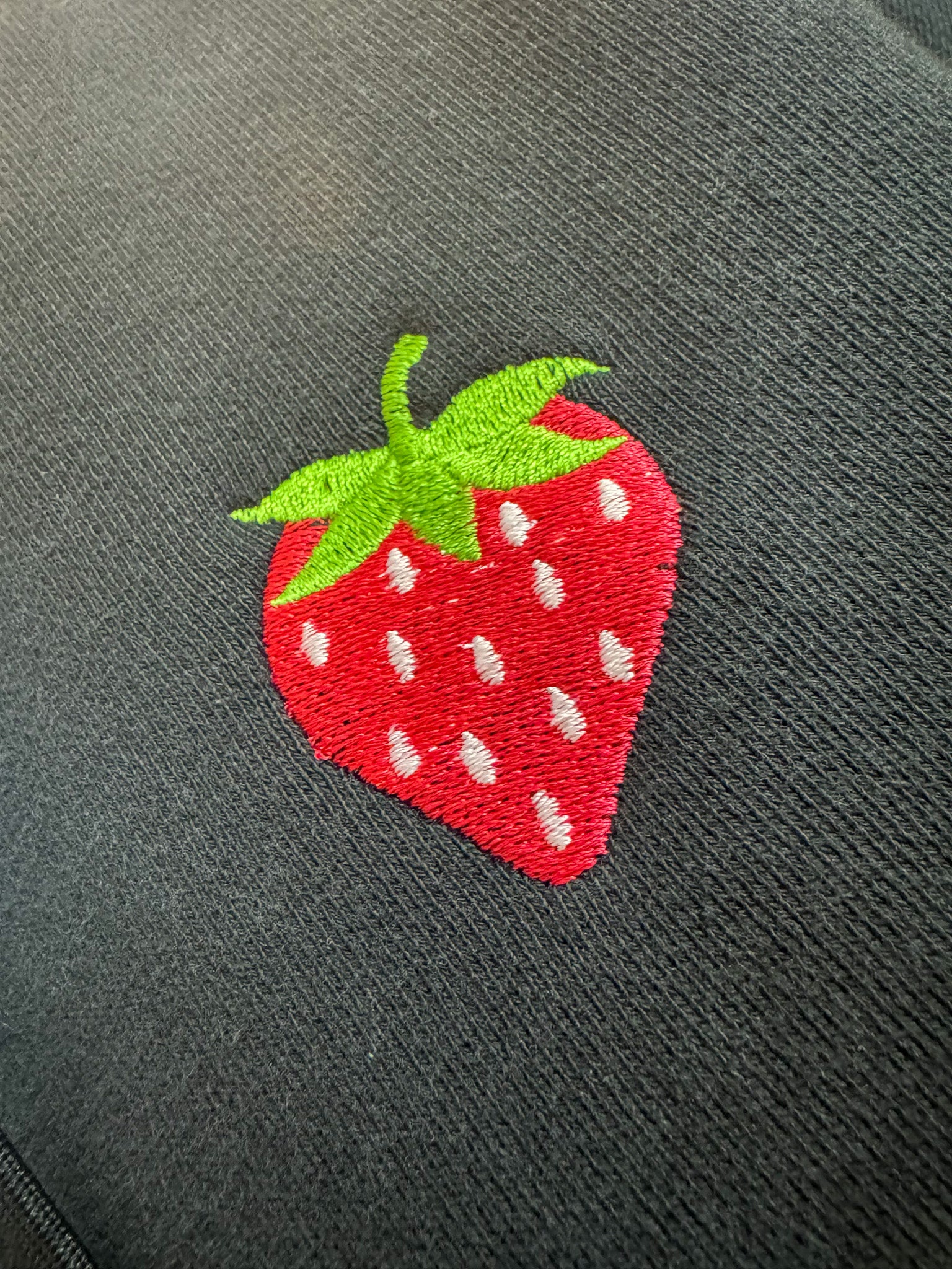 Upgrade your hoodie game with our Strawberry Adidas Cover Up Cropped Hoodie. This adorable hoodie is not only trendy with its embroidered design, but it also supports our small business and promotes sustainability by being upcycled from a discarded secondhand garment. Join the slow fashion movement with this unique and environmentally friendly piece!