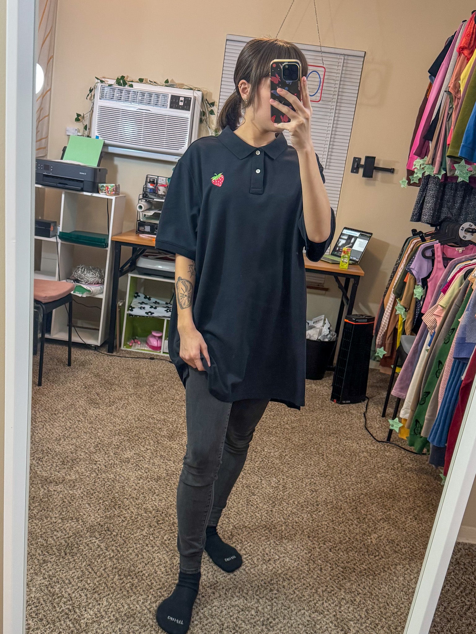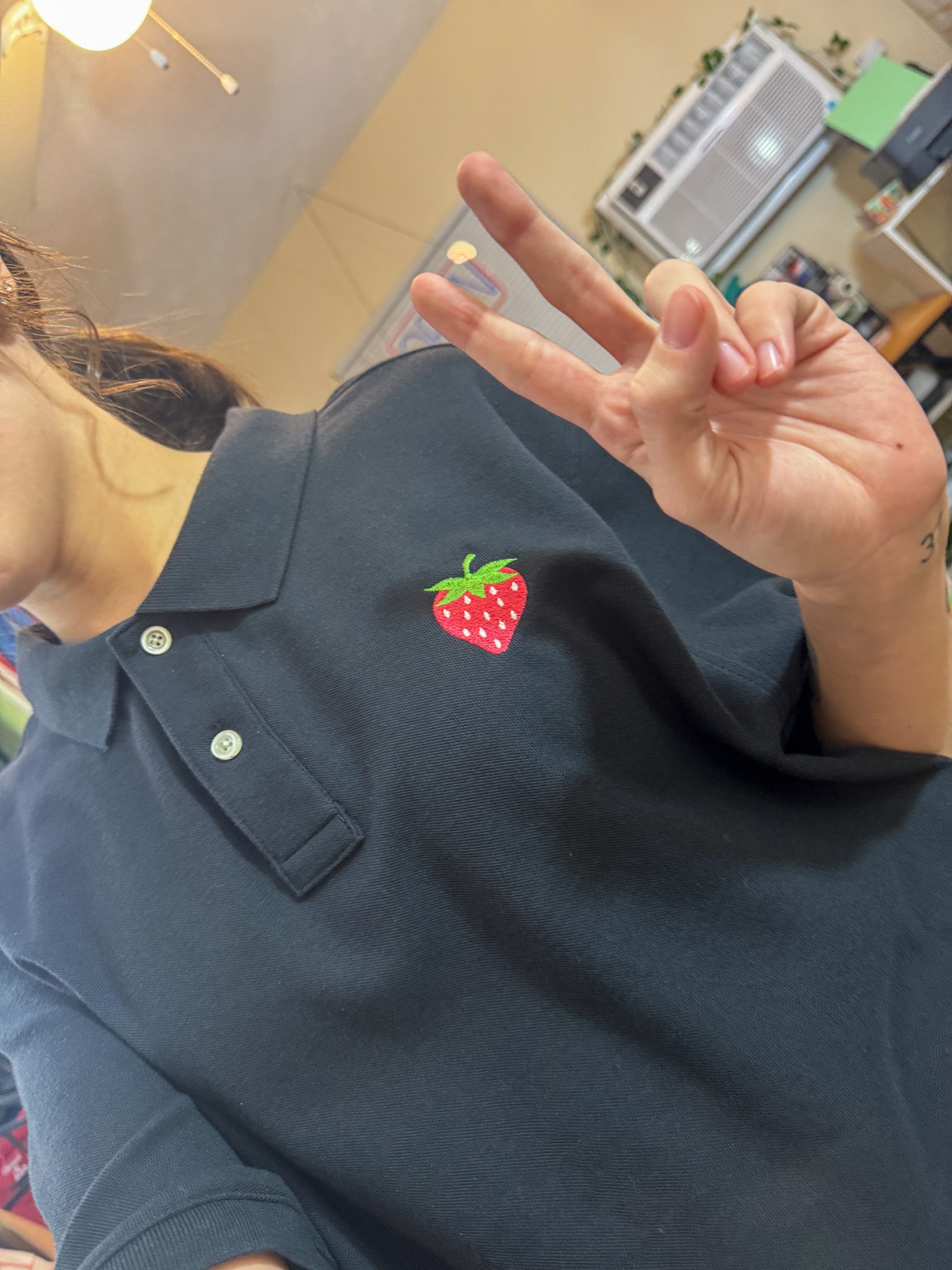 This polo is truly one of a kind. Embroidered by us, it supports our small biz and is sustainably upcycled from a discarded secondhand garment. Slow fashion never looked so good!