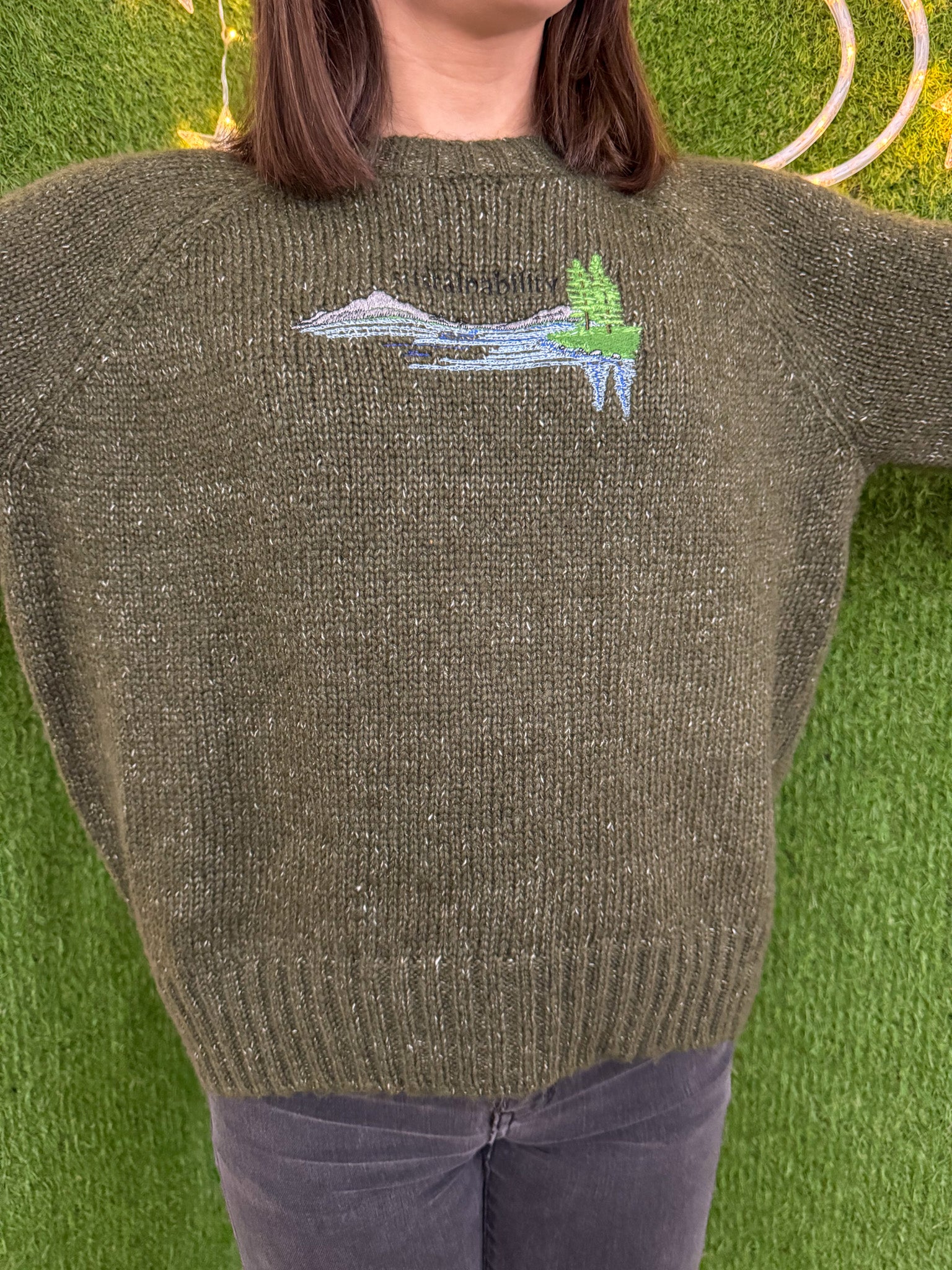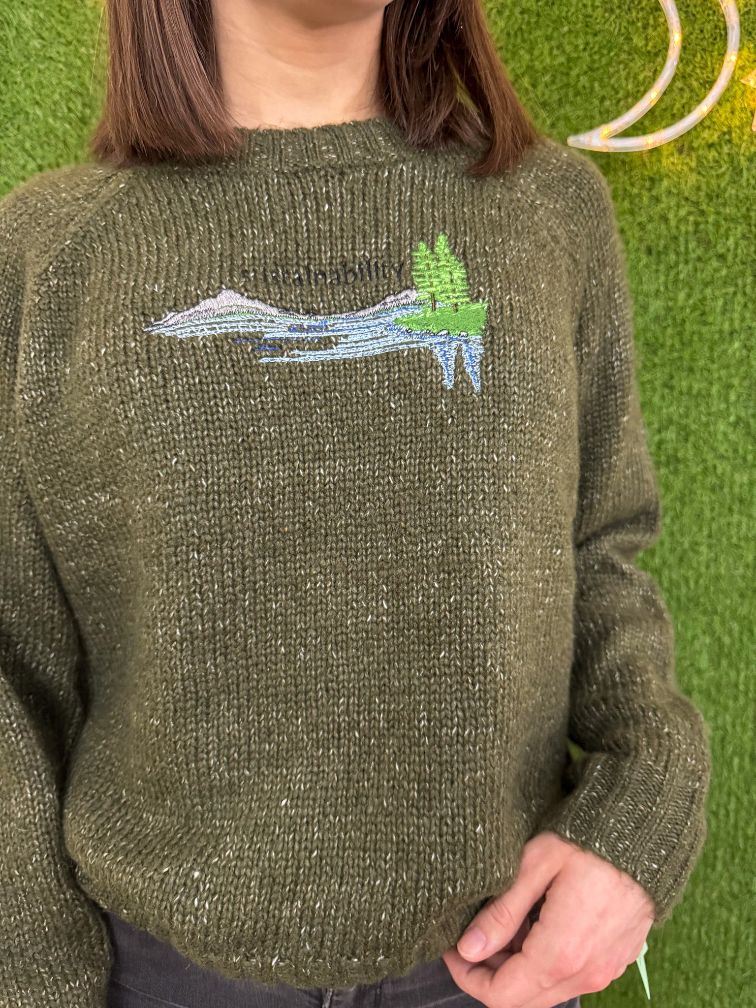Rock sustainable style with our Sustainability Sweater. Made from discarded secondhand garments, each one is unique and embroidered with care. You'll support a small biz and feel good about your eco-friendly choice. This slow fashion staple proves sustainable can be stylish!