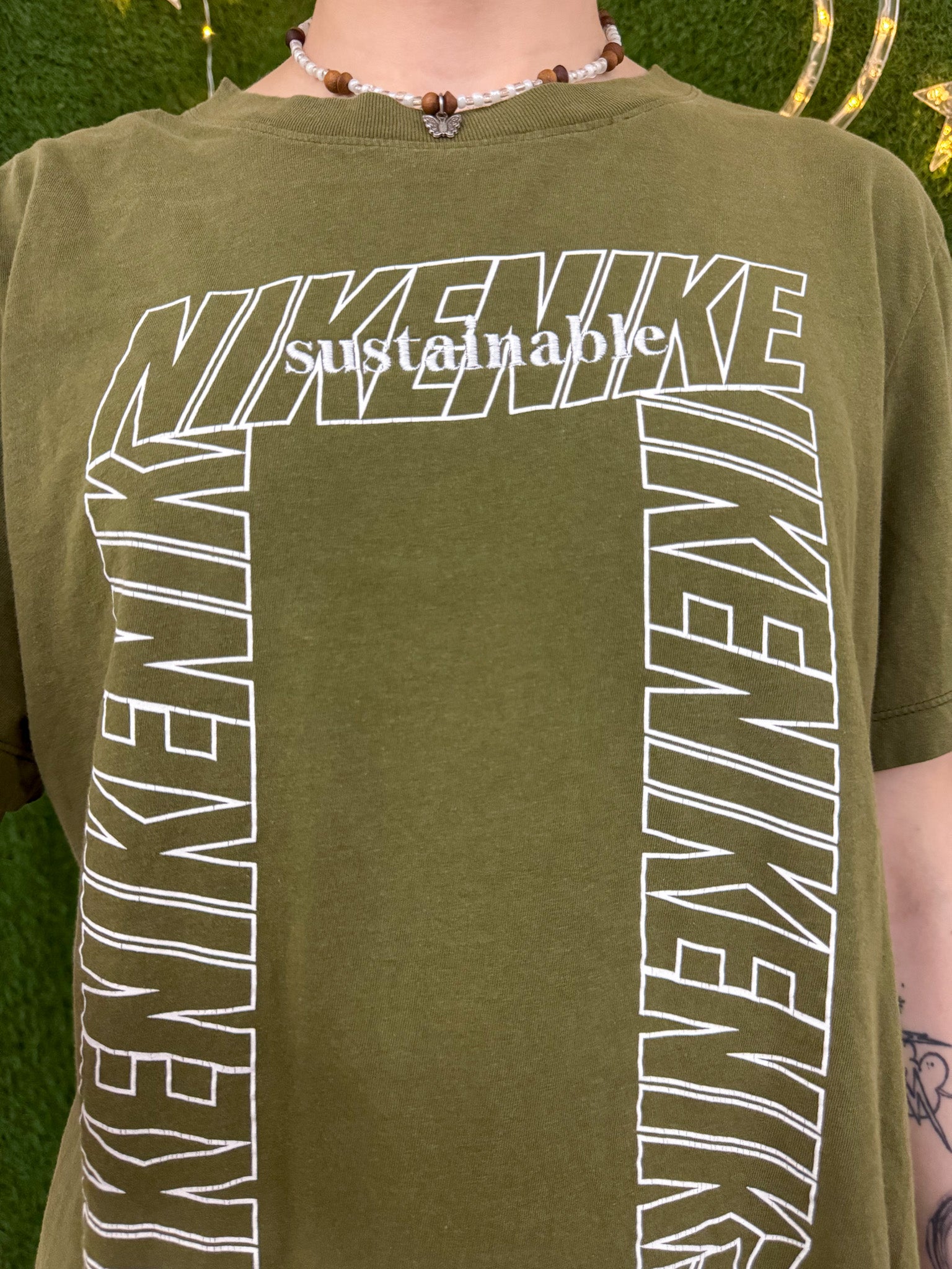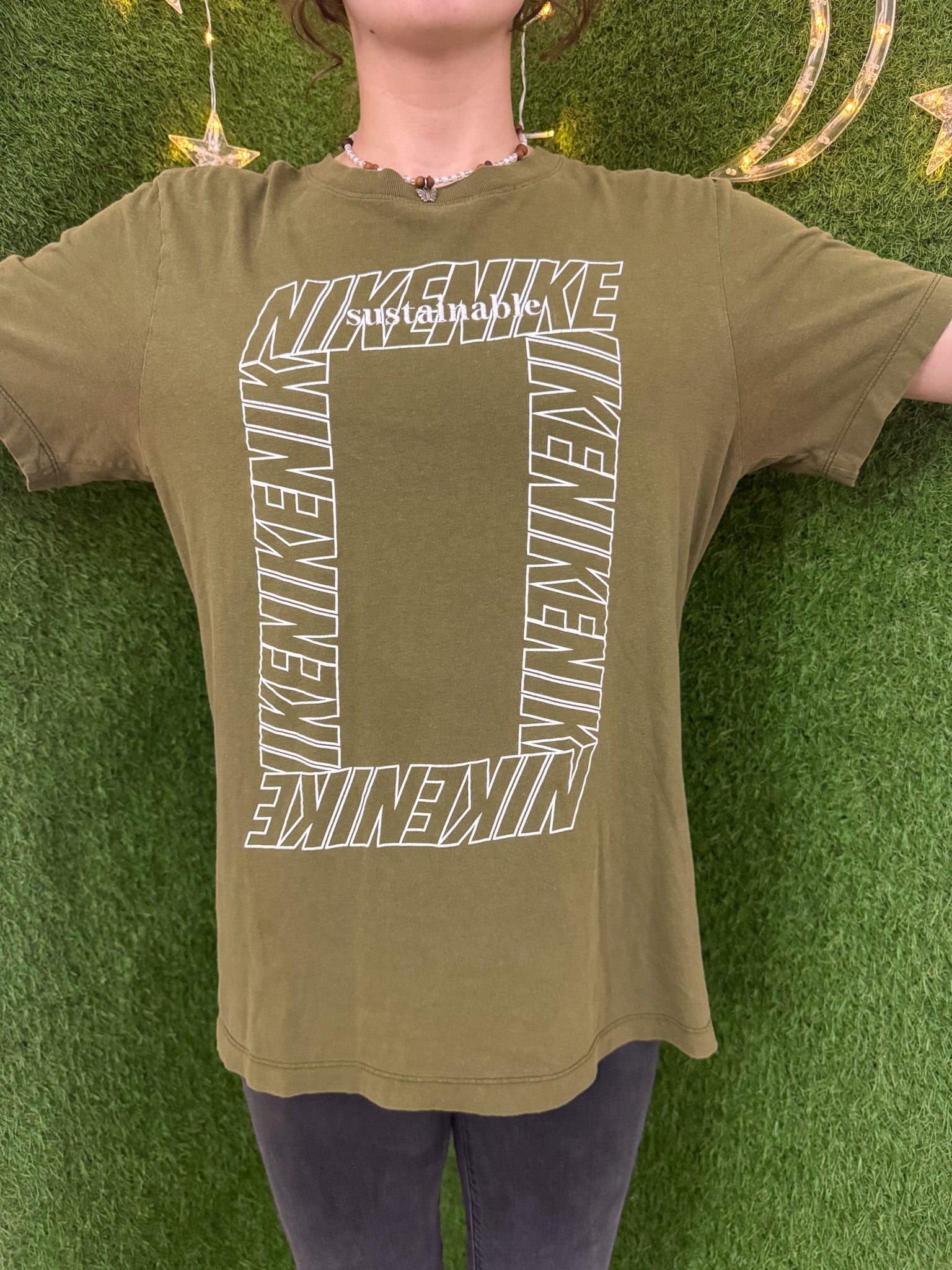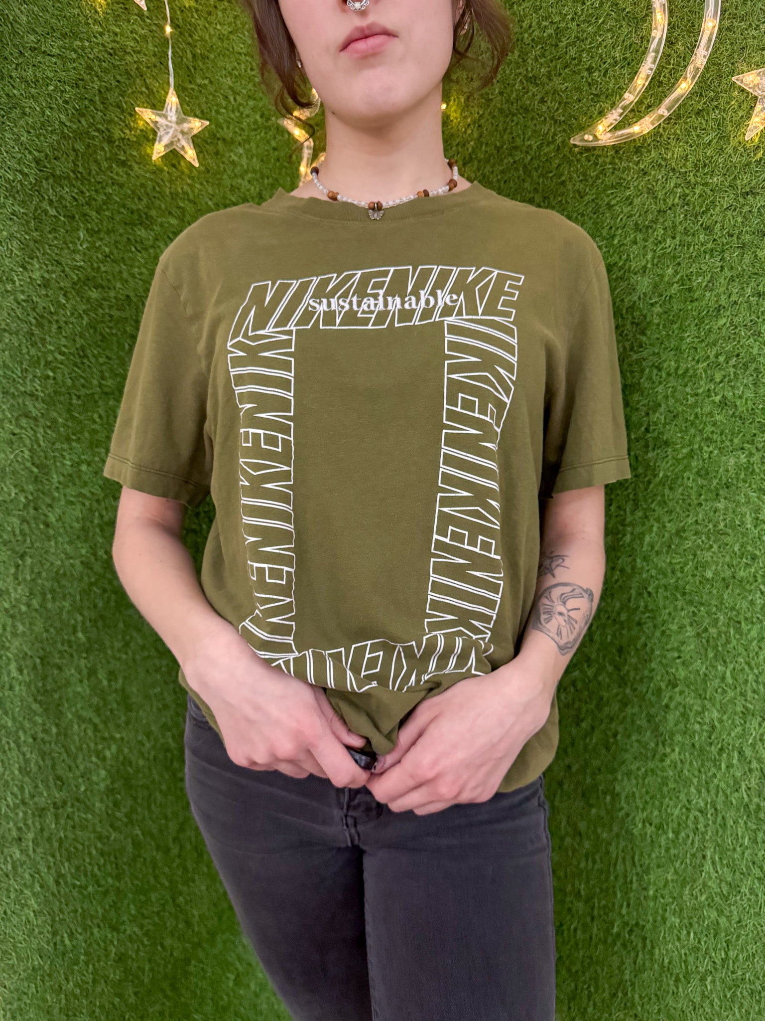 Elevate your wardrobe with our embroidered Sustainable Green Nike T-Shirt. This upcycled secondhand garment not only supports our small biz, but also promotes sustainable slow fashion. Be stylish and eco-conscious with this must-have shirt!