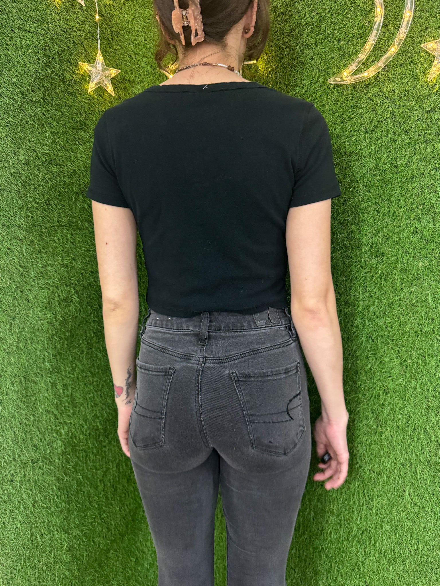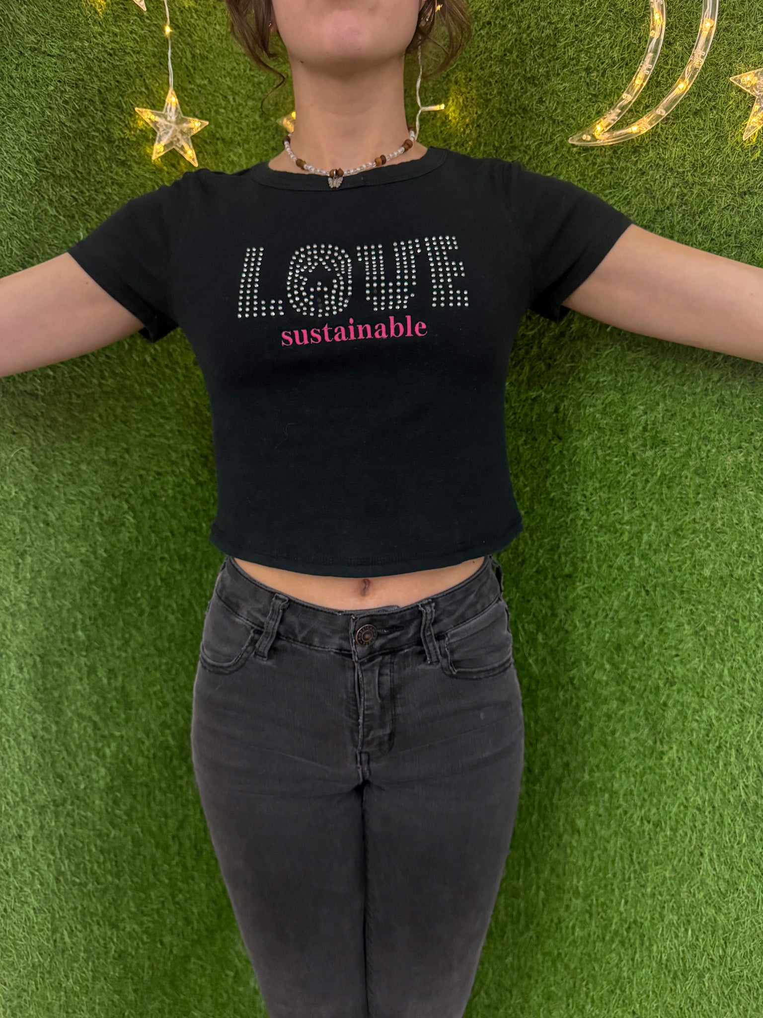 Spread love and sustainability with our Sustainable Love Black Baby Tee! This unique tee features a beautiful embroidered design and is made from an upcycled, secondhand garment. By supporting our small business, you are also supporting slow fashion and sustainable practices. Join the movement and rock this tee with pride!