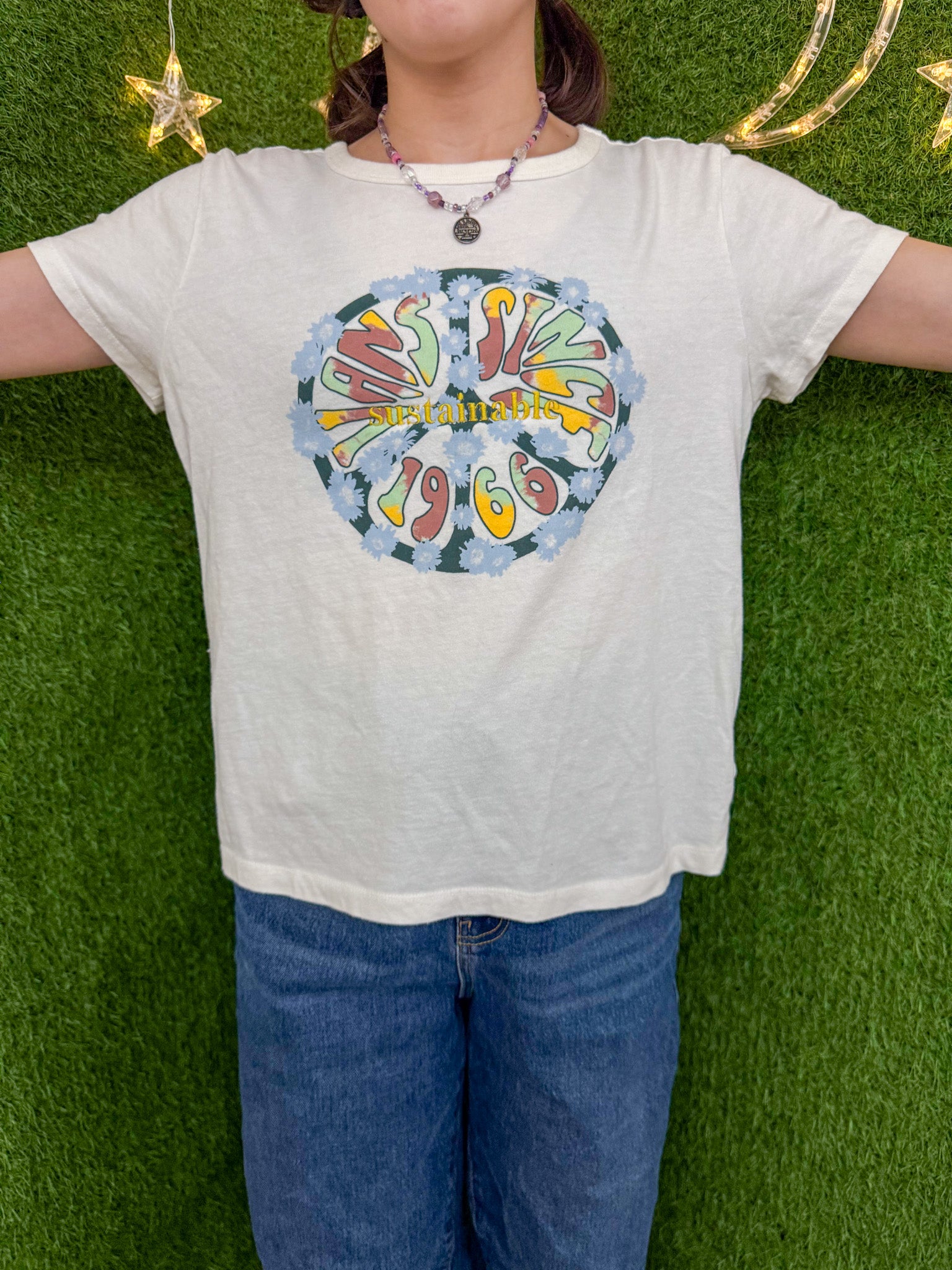 Upgrade your wardrobe with our Sustainable Vans T-Shirt. This embroidered, upcycled, and secondhand garment supports our small business and promotes sustainable and slow fashion. Look good, feel good, and do good for the environment<3