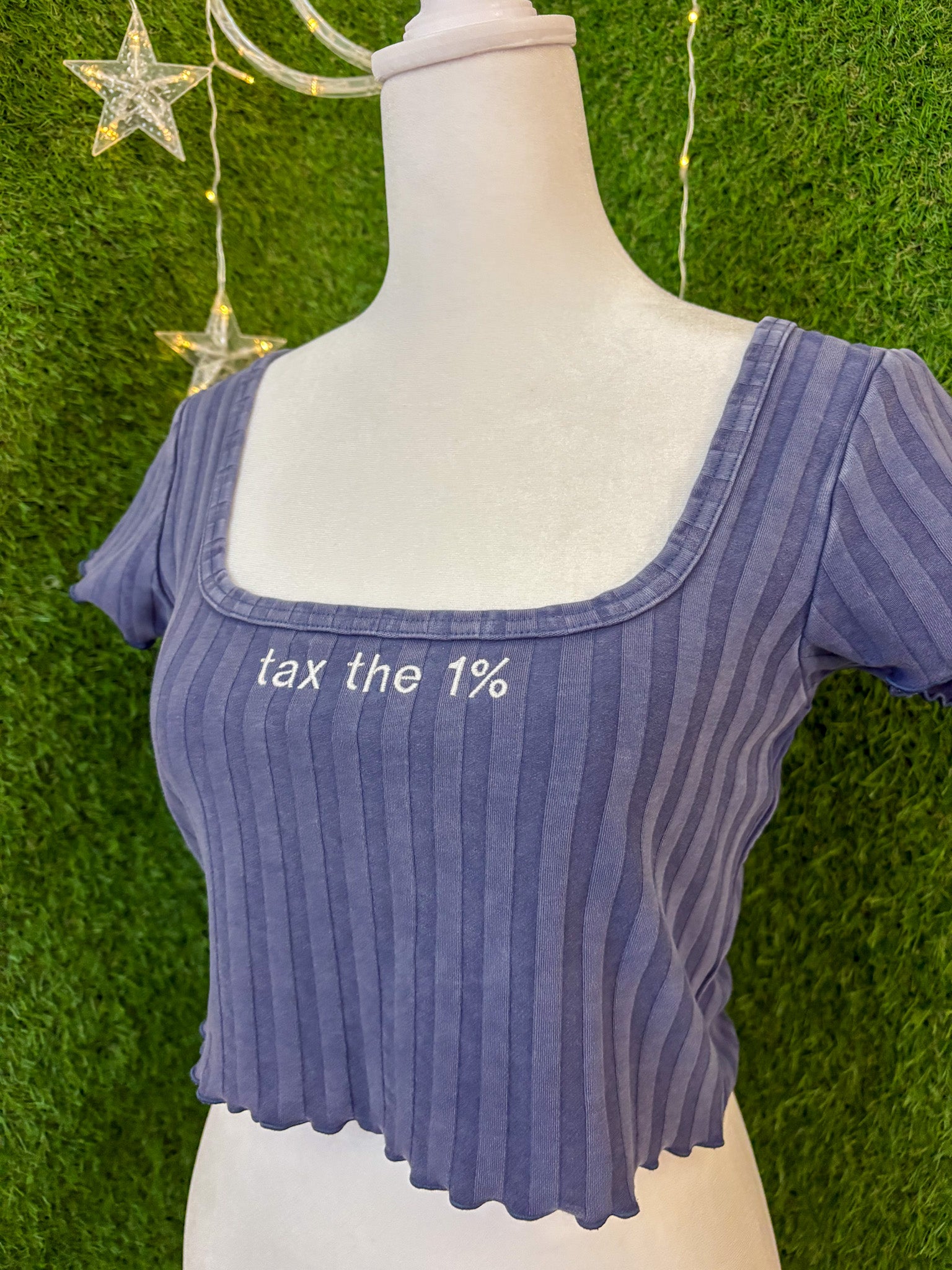 This upcycled, embroidered blue cropped t-shirt transforms a secondhand garment into a unique piece that supports sustainable, slow fashion. Perfect for eco-conscious wardrobes seeking style with a purpose!