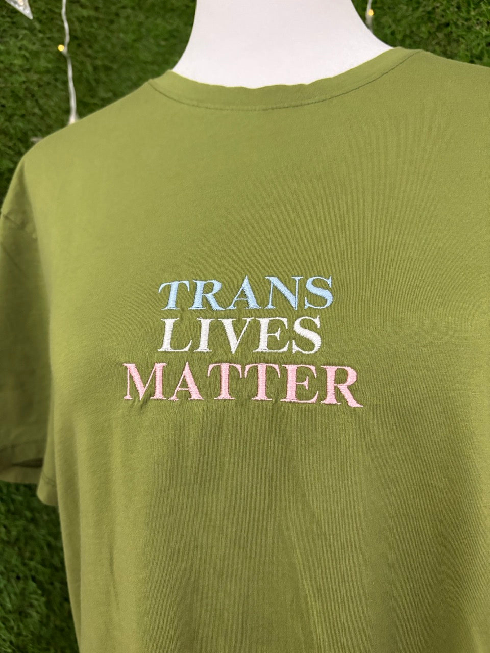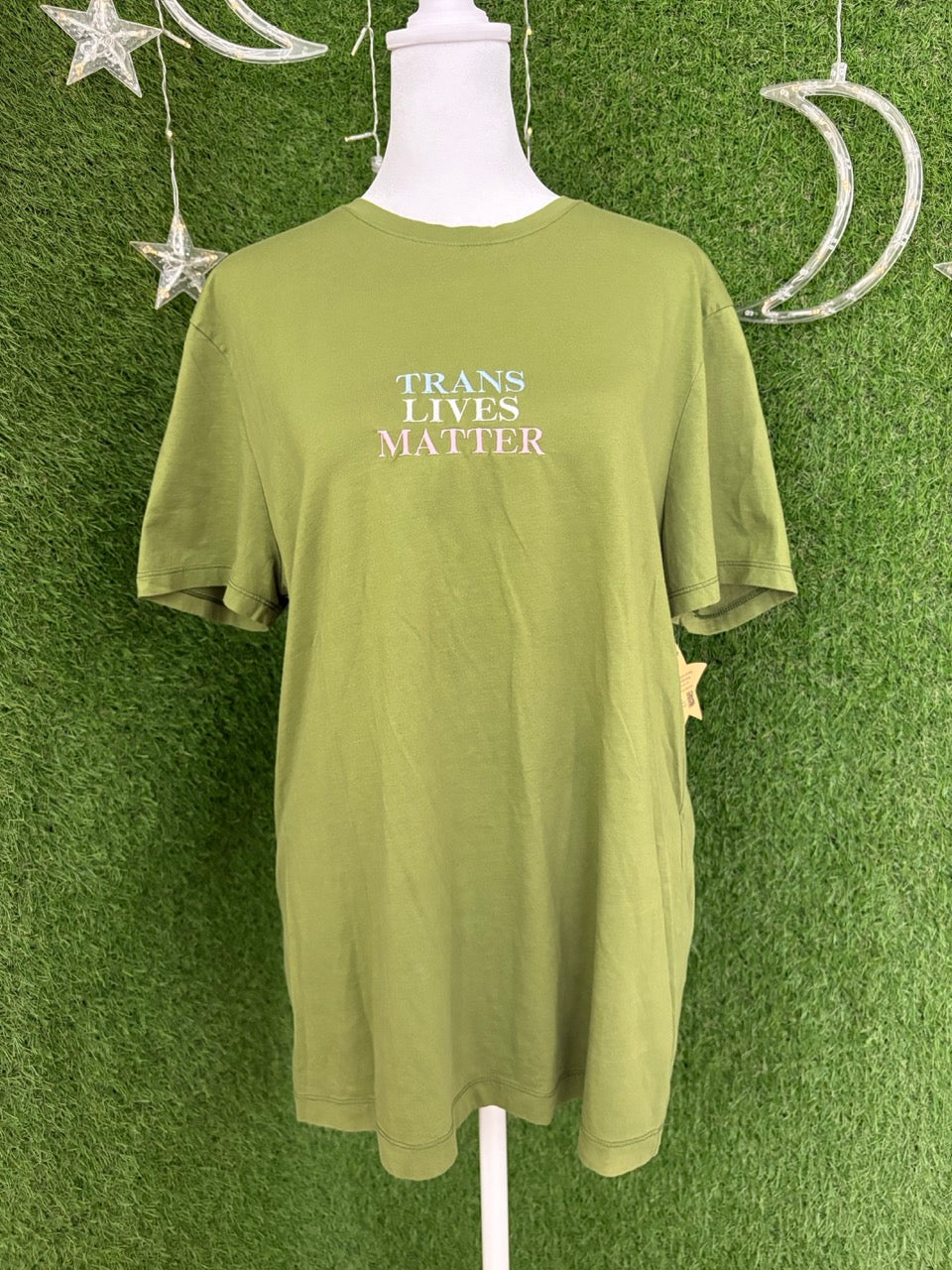 Made with care for the planet, this green tee supports trans pride and slow fashion. Feel good, look great, and make a statement that’s both bold and eco-friendly!