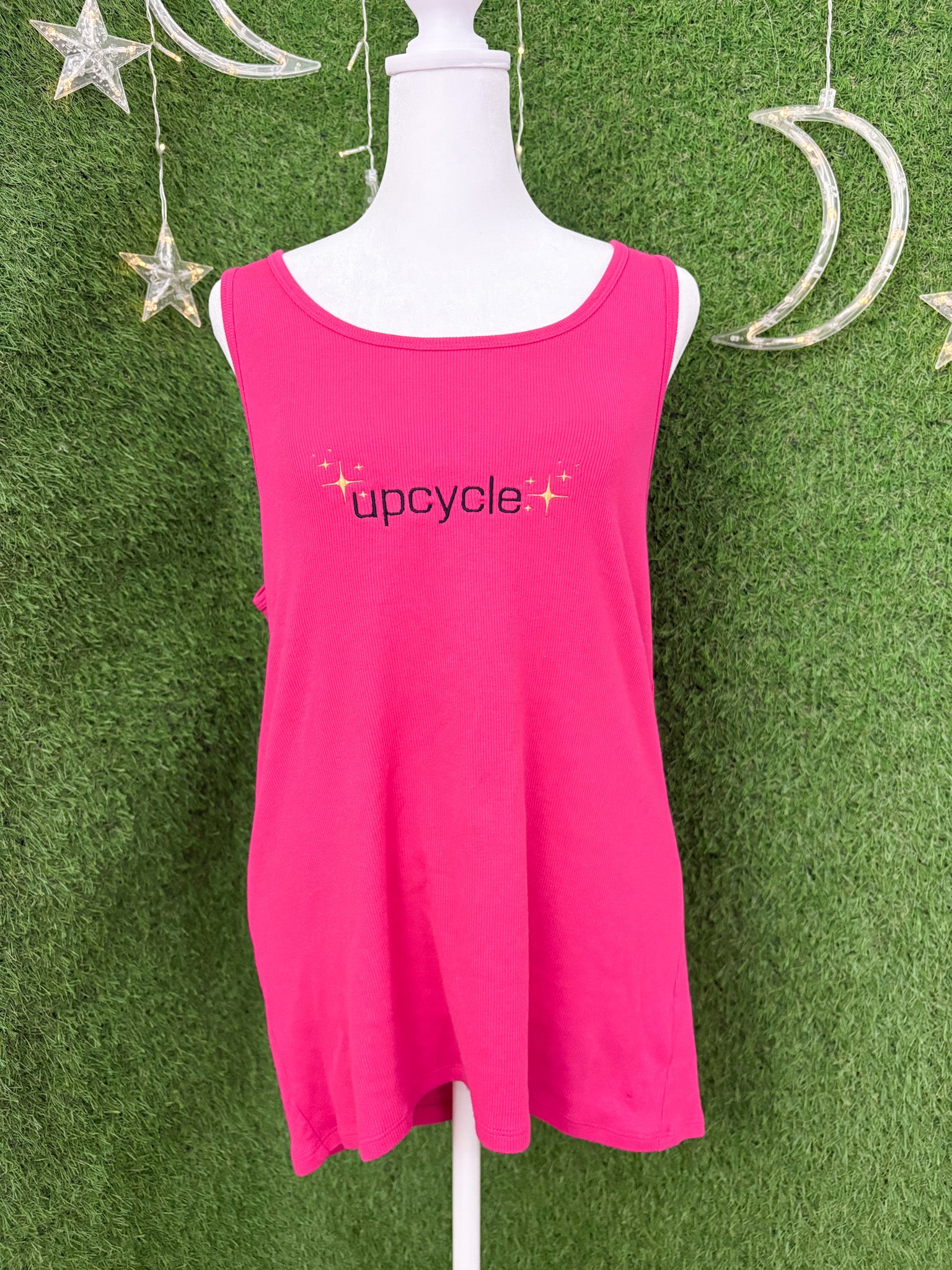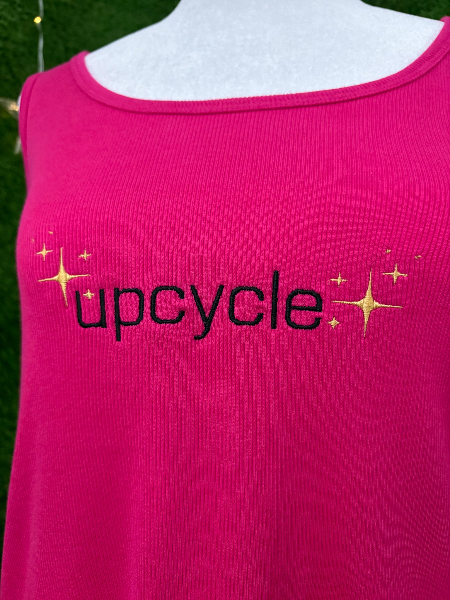 Embroidered with care, this sustainable tank top supports slow fashion by using upcycled materials for a greener wardrobe choice!