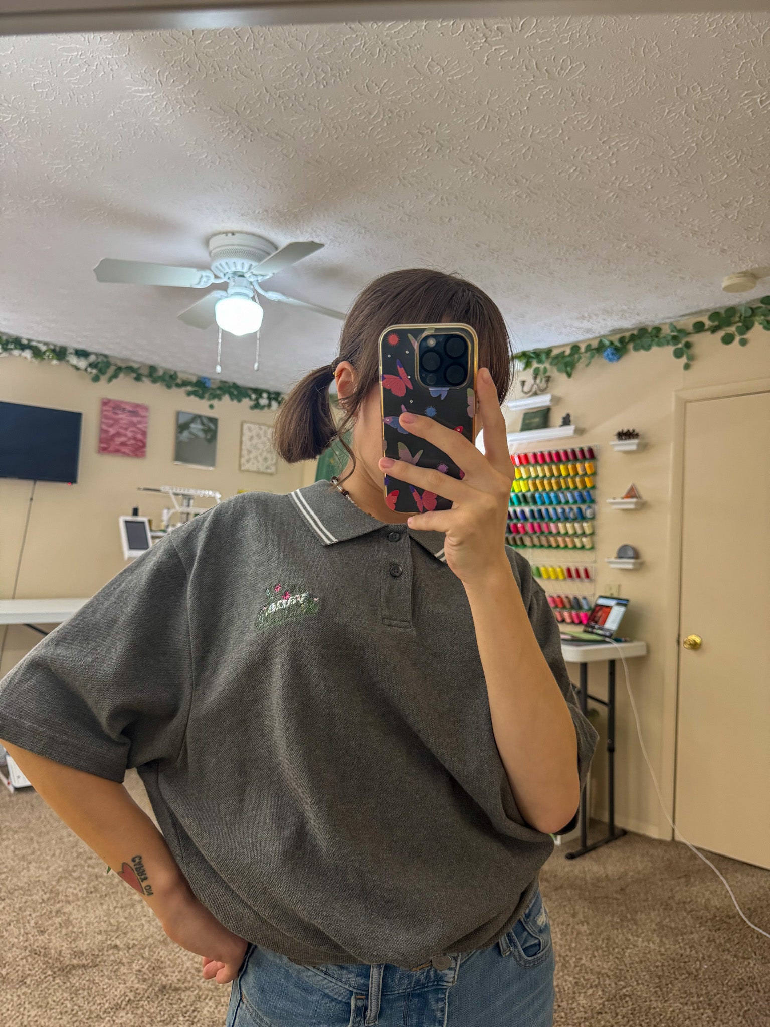 Upgrade your wardrobe with our Vans Floral Cover Up Collard Shirt - embroidered and upcycled by us. Support our small biz and the environment while looking stylish. A sustainable, slow fashion choice that's secondhand but first in fashion. It's a win-win!