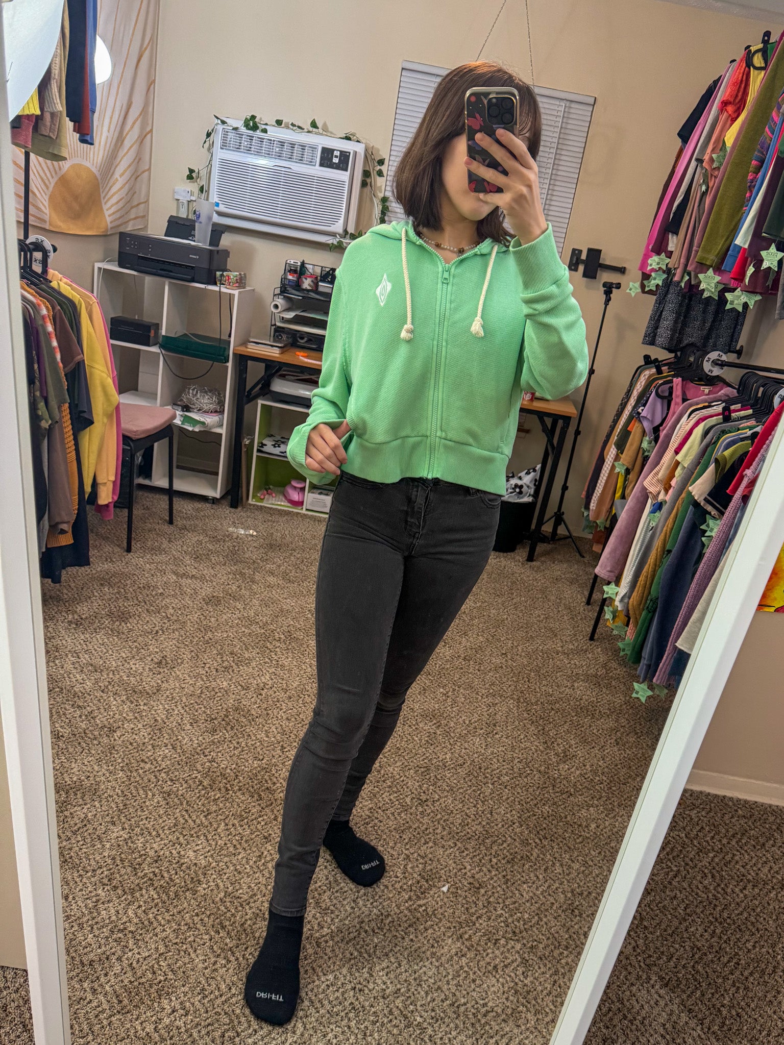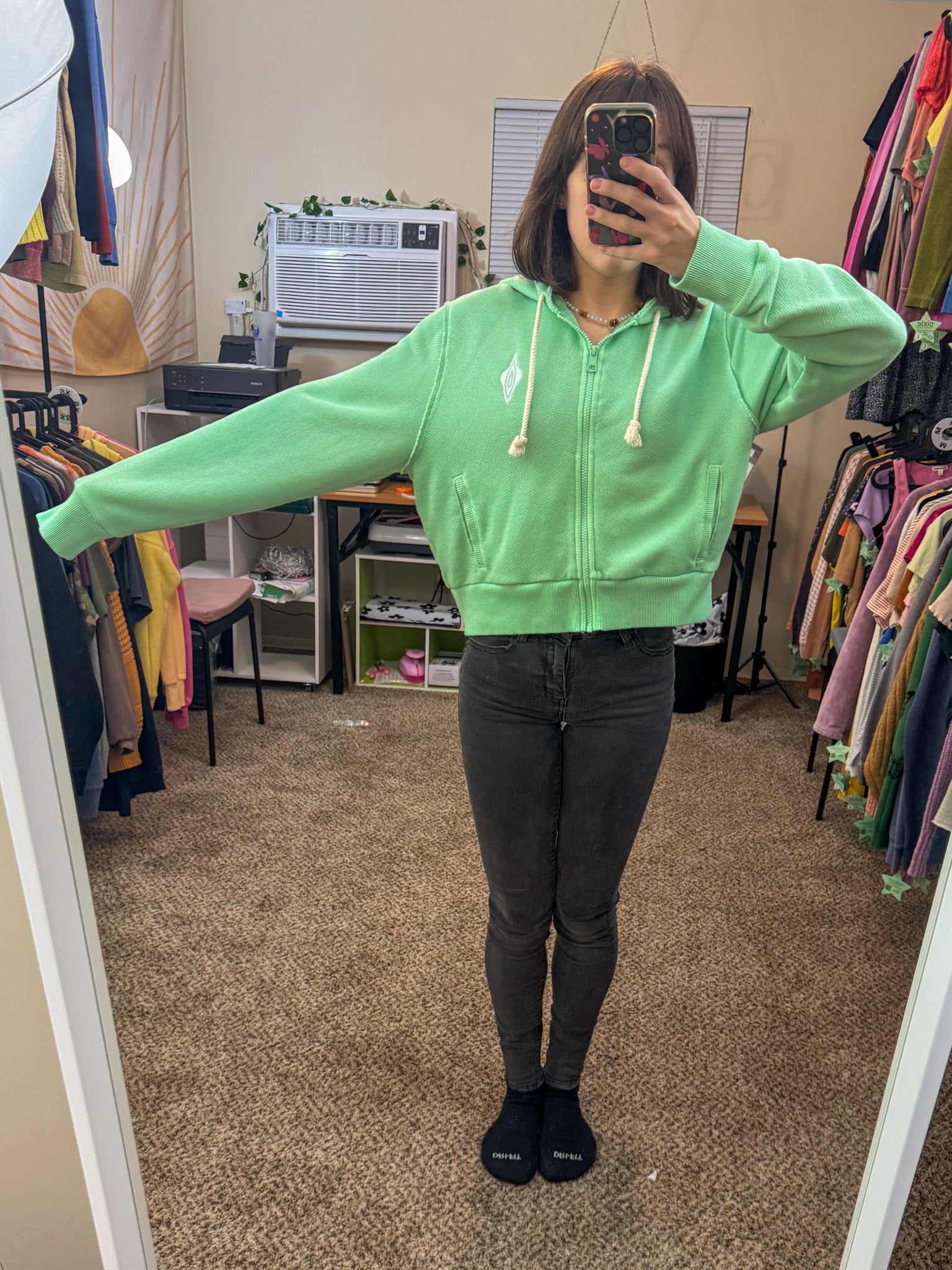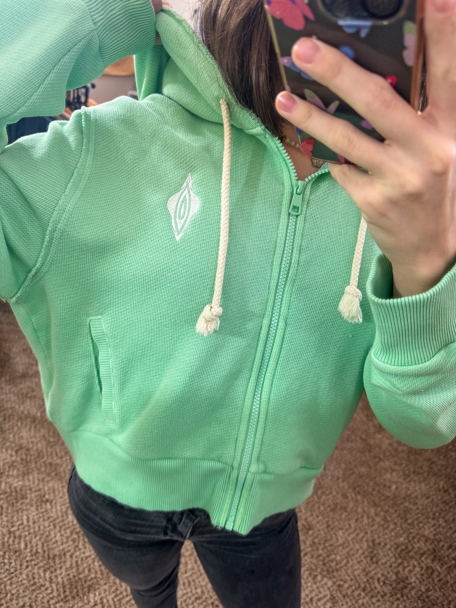 Elevate your wardrobe with the Vulva Zip Up Hoodie! This unique piece is sustainably made by embroidering discarded secondhand garments, supporting our small biz and sustainable slow fashion<3