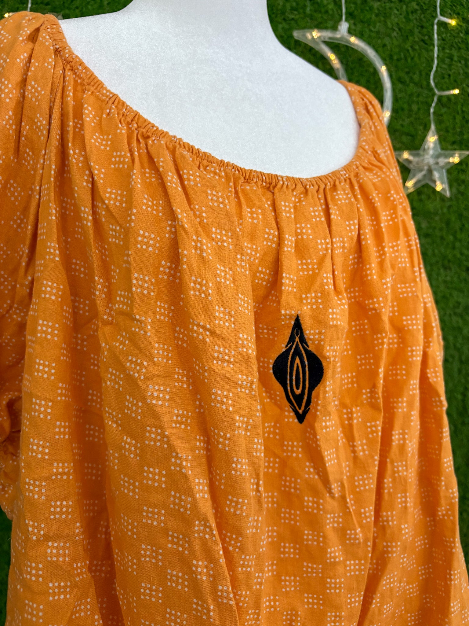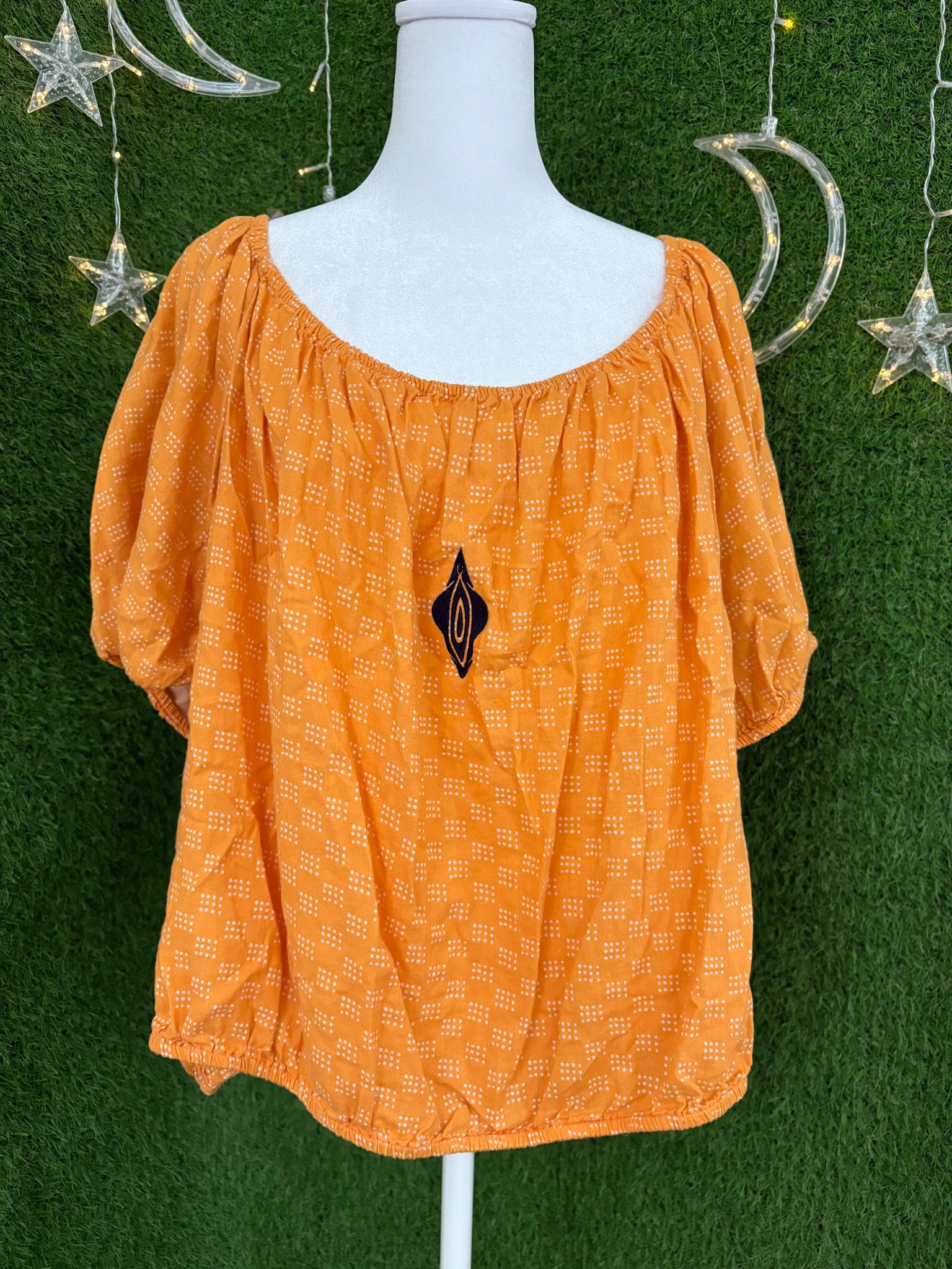 Made from upcycled secondhand garment with embroidered details, this top supports small businesses and embraces sustainable, slow fashion principles<3