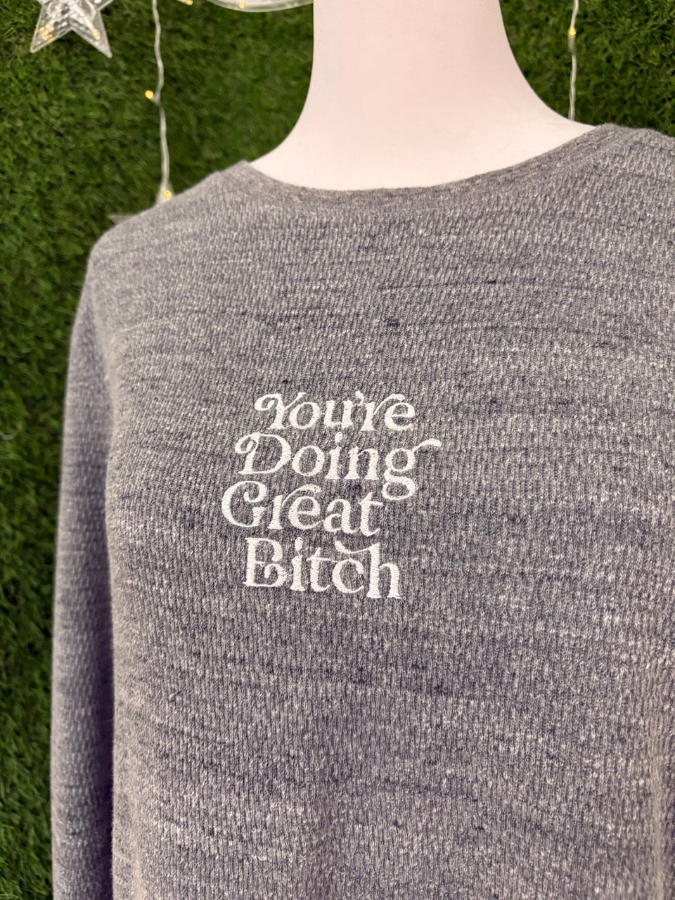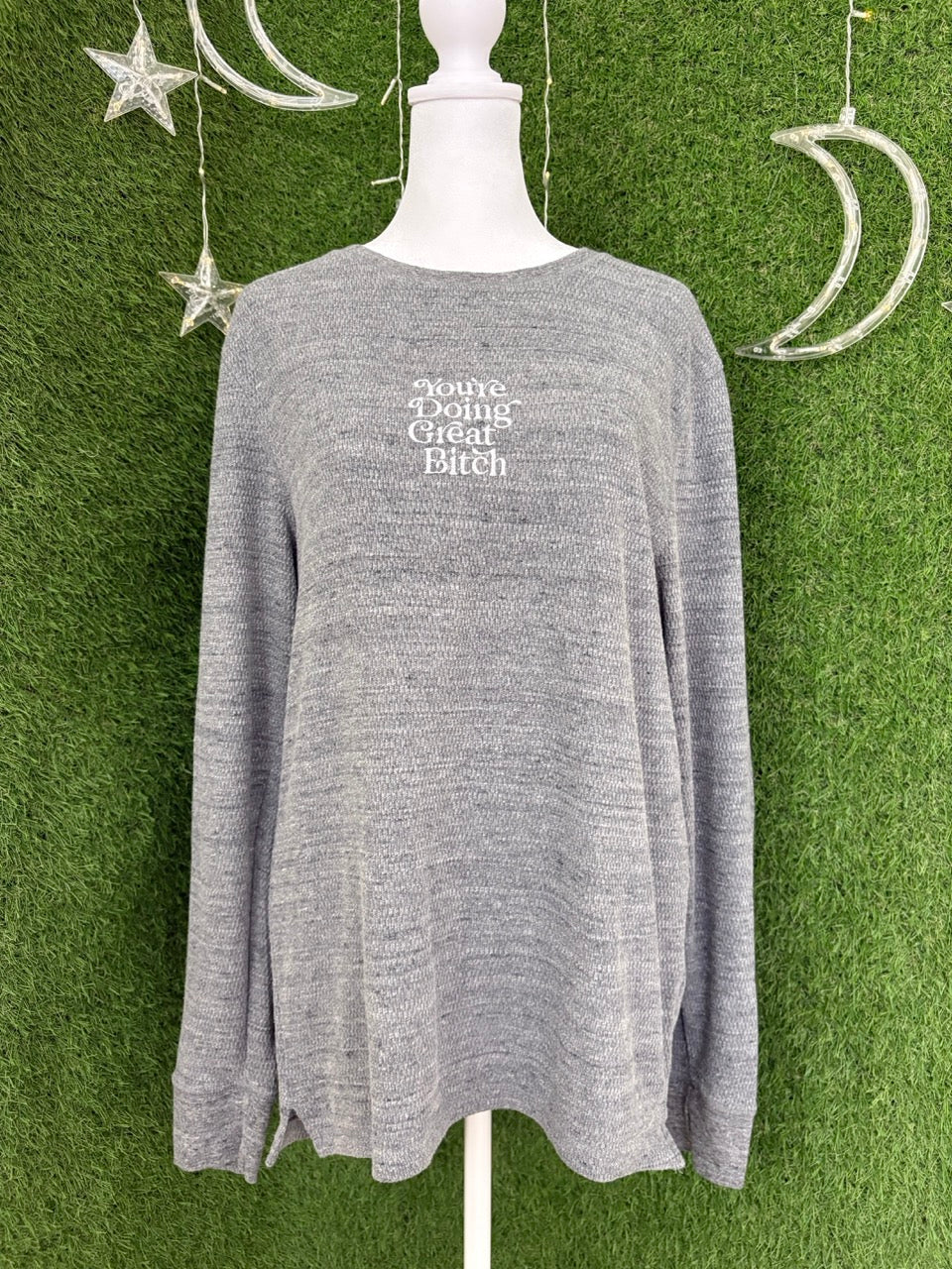 Slip into cozy, eco-friendly comfort with this grey long sleeve designed for slow fashion fans. Its soft fabric and relaxed fit make every day a little brighter<3