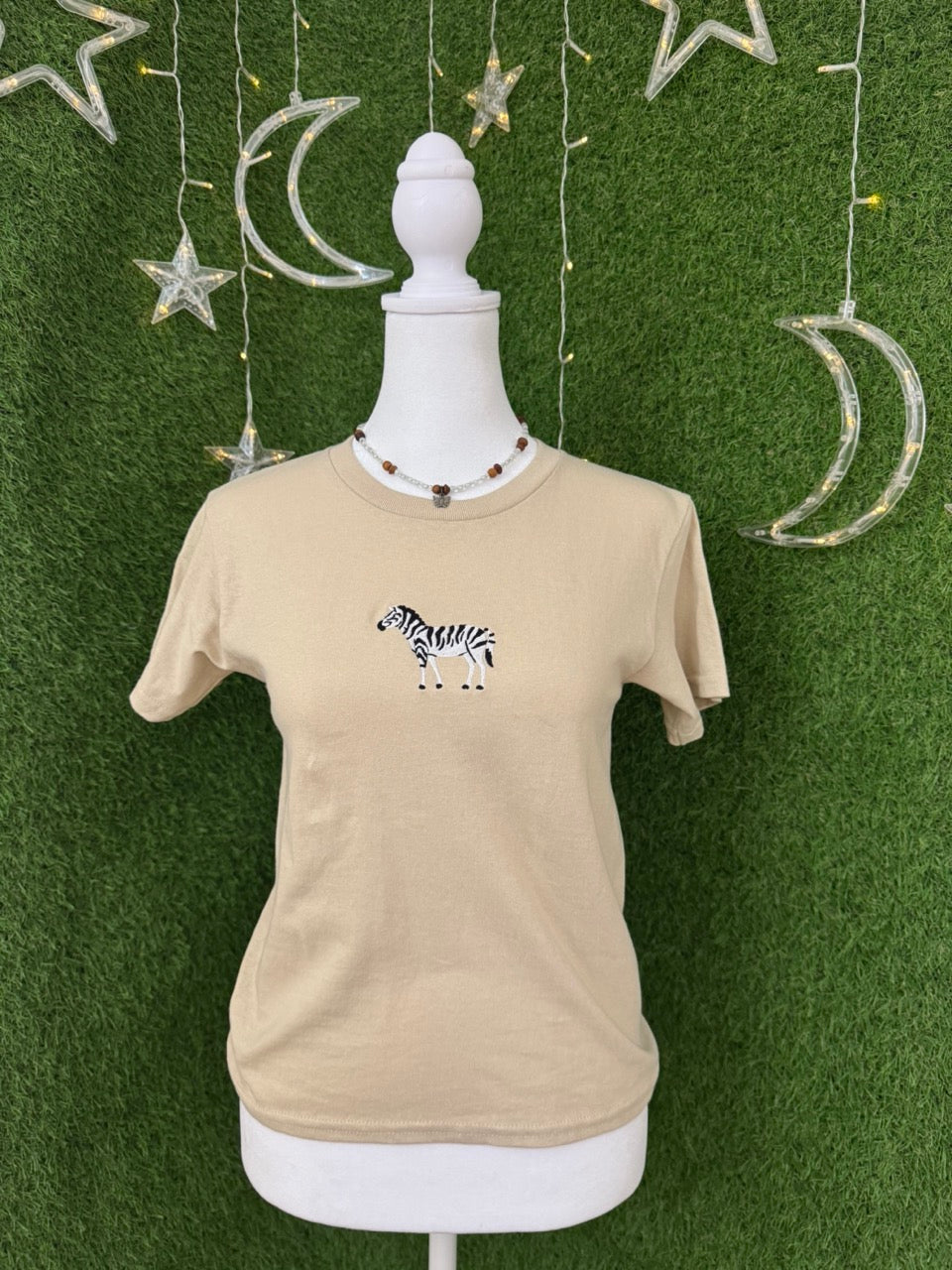 Step into style with the Zebra Khaki T-Shirt — where playful embroidery meets upcycled charm. Crafted with care and slow fashion values, this tee brings a fresh twist to your wardrobe while respecting the planet. Its unique zebra embroidery adds a fun, eye-catching detail, making every outfit a little more adventurous. Perfect for those who love to stand out sustainably!